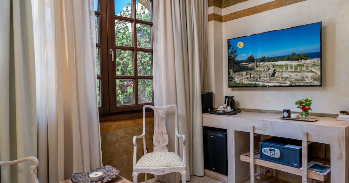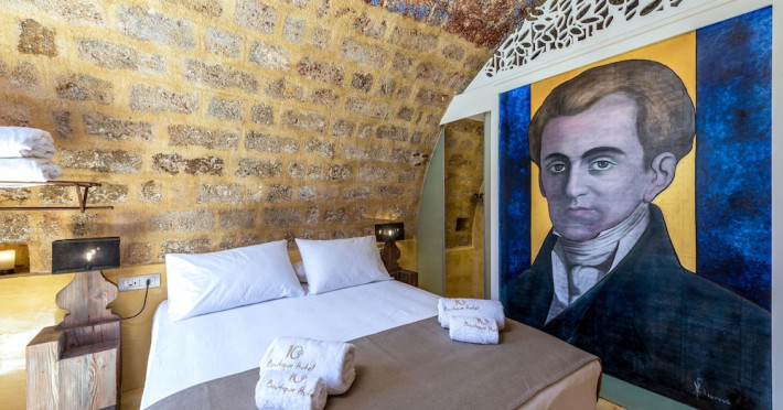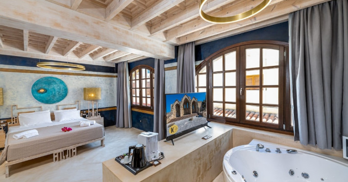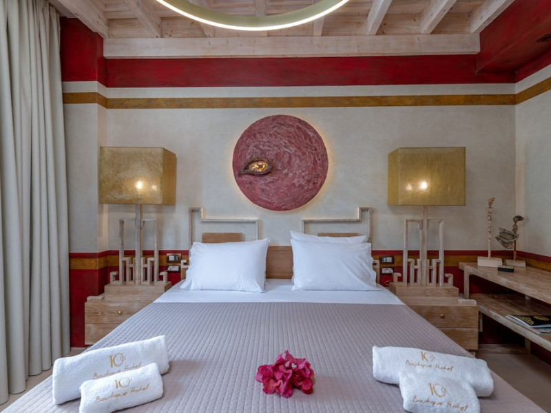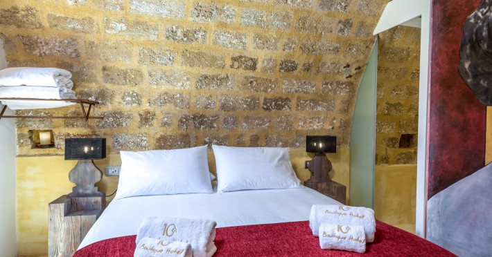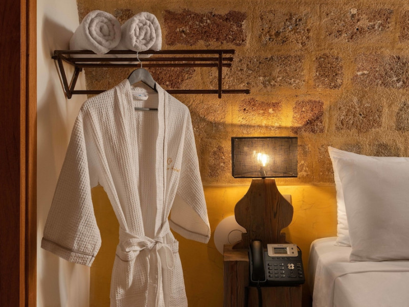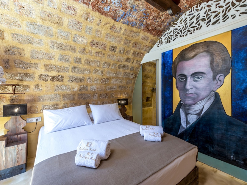 Located in the heart of Rhodes Town, 10GR Boutique Hotel & Wine Bar offers a comfortable stay with free WiFi throughout the property. The hotel features a restaurant serving Greek and Mediterranean cuisine, with vegetarian, dairy-free, and gluten-free options available. Guests can enjoy a bar/lounge, a complimentary reception, and room service. The hotel provides a 24-hour front desk, concierge services, express check-out, and dry cleaning/laundry services. Guests can also enjoy massages, body treatments, and facials. The air-conditioned rooms are equipped with a desk, coffee machine, minibar, safe, flat-screen TV with satellite programming, and a private bathroom with complimentary toiletries and a hair dryer. An airport shuttle is available for a surcharge. Popular points of interest are easily accessible, including The Street of Knights, which is 300 meters away. The 10GR Boutique Hotel & Wine Bar - Adults Only is a hotel.