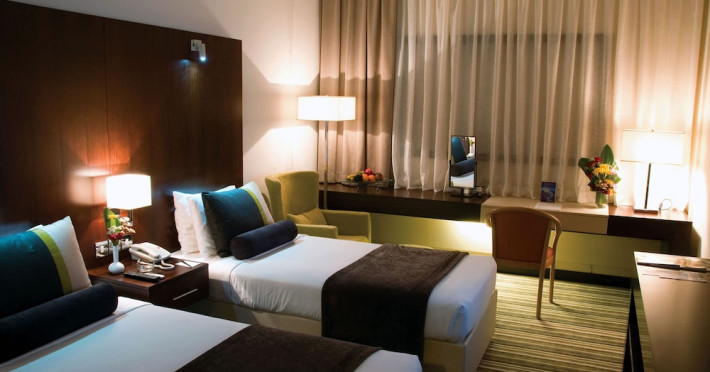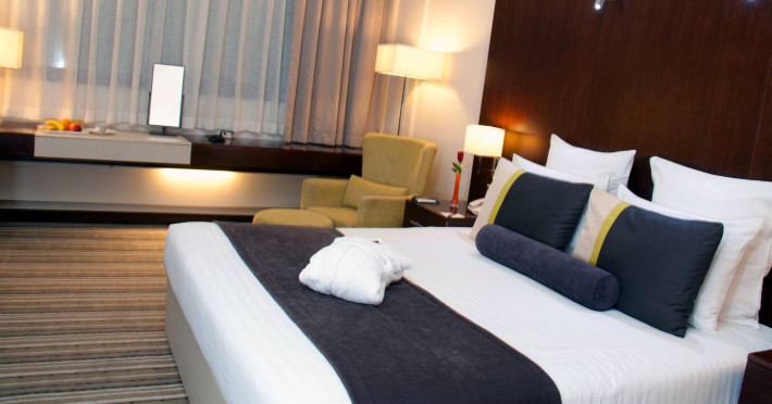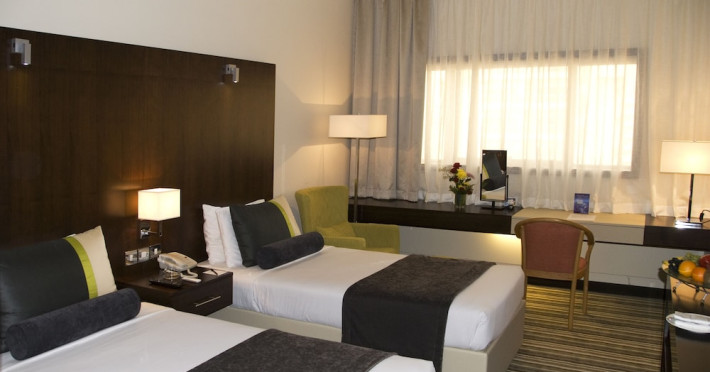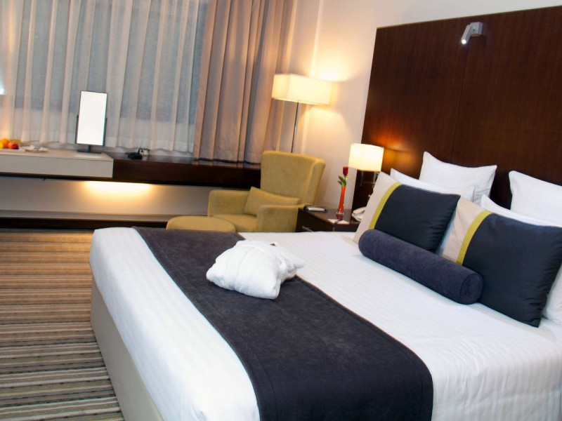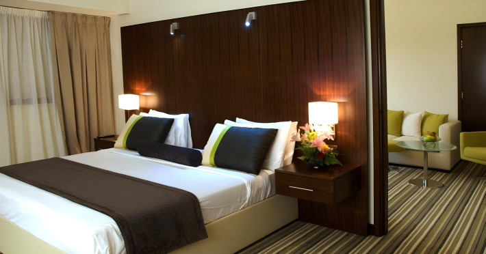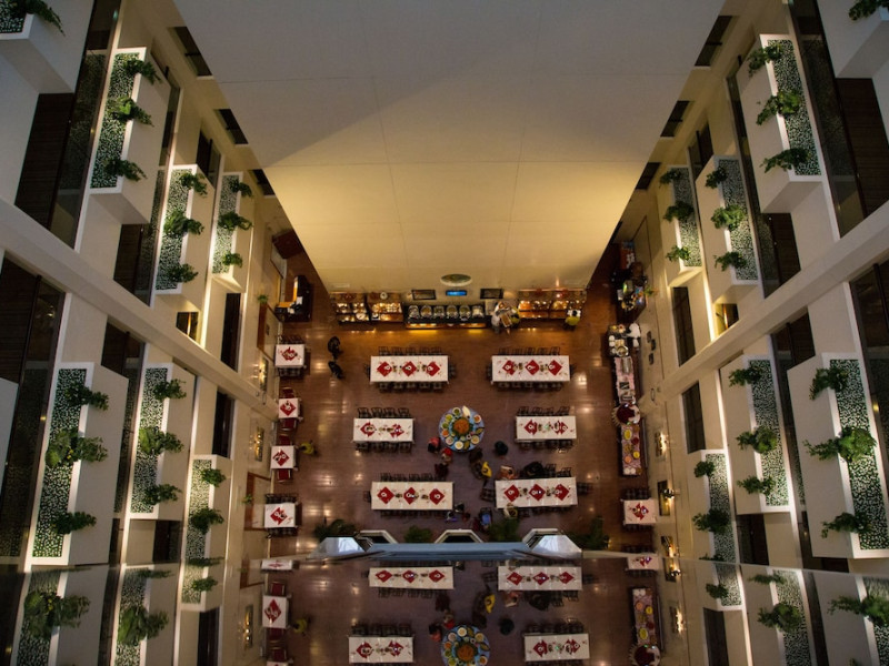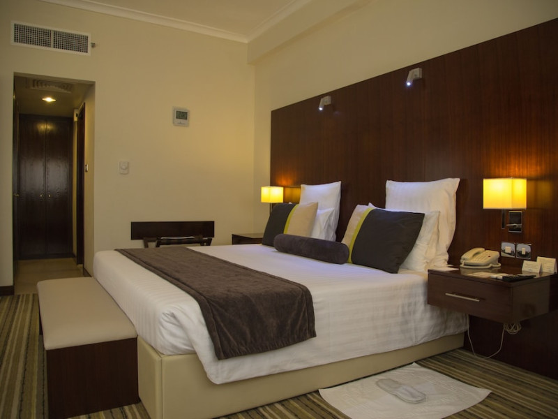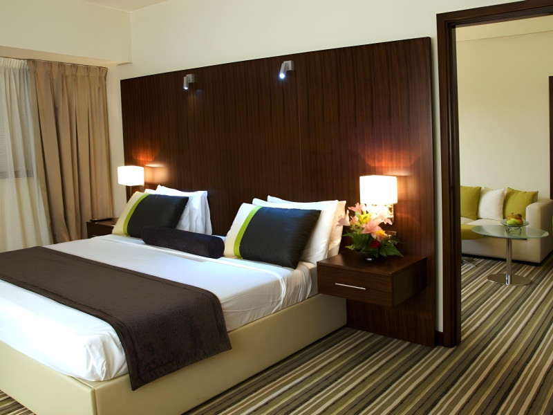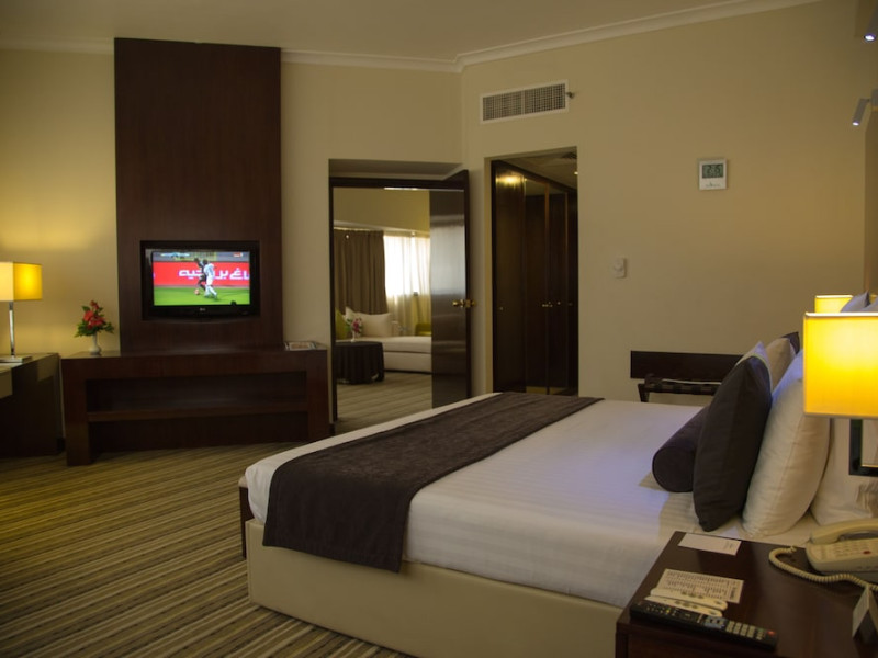 Aavri Hotel Deira offers comfortable accommodations in Downtown Deira, Dubai, within a short drive of Al Ghurair Centre and City Centre Deira. The hotel is less than 5 kilometers from Dubai International Airport and walking distance to Al Rigga Metro station and Dubai Creek. Features include air-conditioned rooms with minibars and LCD TVs, complimentary Wi-Fi, and cable programming. The hotel boasts three food and beverage outlets, including a restaurant, coffee shop/cafe, and 24-hour room service. Guests can enjoy a rooftop outdoor swimming pool, a fitness center, sauna, and massage services. Additional amenities include concierge services, a hair salon, dry cleaning/laundry services, a 24-hour front desk, multilingual staff, and parking. Buffet breakfasts are available daily for a fee. All-inclusive rates are available, with some charges applying to specific dining options and beverages. The hotel also offers an area shuttle (surcharge) within 3 kilometers. The Aavri Hotel is a Airport Hotel, Business, City hotel, Eco Friendly, Family Style, Full Service, Leisure, Tourist hotel. The nightlife/restaurants are located in the hotel.