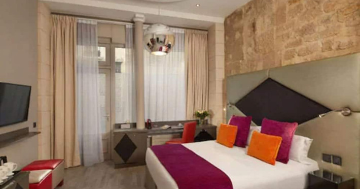Centrally located in Paris's Latin Quarter, Hotel Abbatial Saint Germain is within a 10-minute walk of Île Saint-Louis and Notre-Dame. It offers complimentary Wi-Fi, concierge services, a 24-hour front desk, and luggage storage. Guests can enjoy a daily buffet breakfast for a fee, and room service is available during limited hours. The hotel features a fitness center and a bar. Individually decorated, air-conditioned guest rooms include minibars, LCD TVs with satellite programming, phones, safes, desks, and private bathrooms with complimentary toiletries and hair dryers. Laundry service and safety deposit boxes are available. The Maubert Mutualite metro station is 200 metres from the hotel. The Abbatial Saint Germain is a hotel. Located in 5th Arr. area.