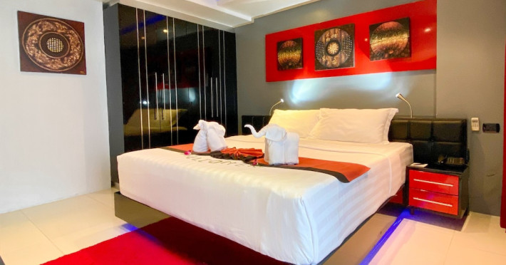 Located in the heart of Patong's entertainment district on Bangla Road, Absolute Bangla Suites is an adult-only hotel offering value-for-money accommodation. It is situated minutes from Patong Beach and close to shopping and dining options. The hotel features an outdoor pool, a restaurant, and a bar/lounge. The air-conditioned rooms offer kitchenettes with full-sized refrigerators/freezers and stovetops. Each room includes complimentary Wi-Fi, a flat-screen TV with cable channels, a safe, and a desk. Daily housekeeping is provided. Cooked-to-order breakfasts are available daily for a fee. The hotel offers a 24-hour front desk, multilingual staff, tour/ticket assistance, and a safe deposit box at the front desk. A roundtrip airport shuttle is available for a surcharge.