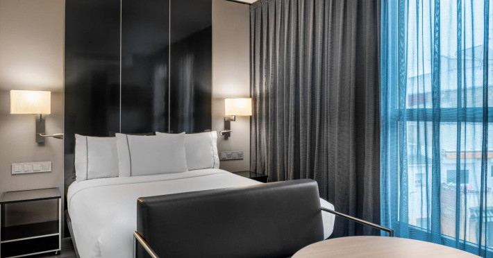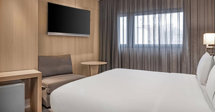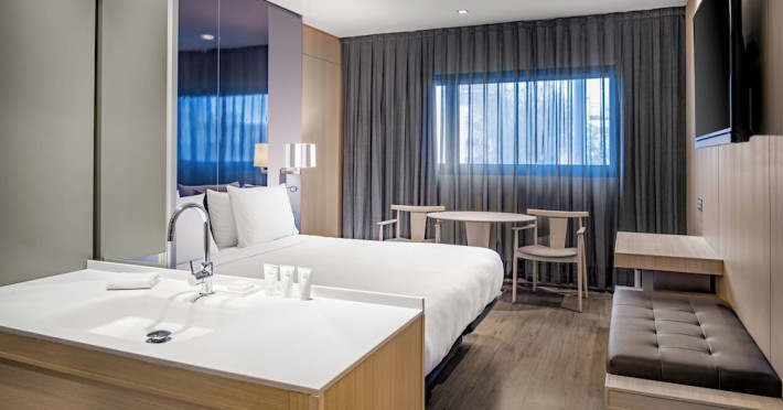 Enjoy recreational amenities including a 24-hour fitness center and a garden. The hotel features complimentary wireless internet access and concierge services, with babysitting available (surcharge). Guests can dine at AC Lounge, a bar/lounge specializing in Spanish cuisine, or enjoy 24-hour room service. A buffet breakfast is served on weekdays from 7:00 AM to 10:30 AM for a fee. Featured amenities include complimentary newspapers in the lobby, a 24-hour front desk, and multilingual staff. The hotel offers conference space and a meeting room. Self-parking is available onsite (subject to charges). The hotel is located near Plaça d'Espanya and Sants Train Station, offering direct access to the airport and other attractions. The air-conditioned rooms include a satellite TV, a safe, a desk, and a minibar. Private bathrooms have shower/tub combinations, complimentary toiletries, and hair dryers. The AC HOTEL SANTS is a Airport Hotel, Business, City hotel, Tourist hotel. The nightlife/restaurants are within walking distance from the hotel.