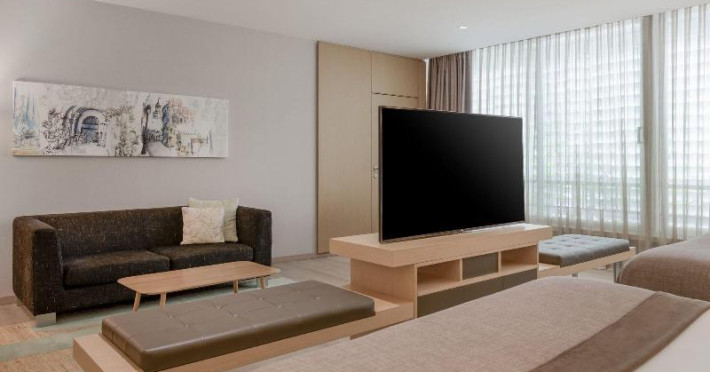 The hotel has 3 lifts and features 50 suites. The friendly staff at the reception desk are happy to answer any questions. Amenities include a baggage storage service, a safe and a currency exchange service. Wireless internet access in public areas allows guests to stay connected. The tour desk offers assistance with booking excursions. The hotel has a range of facilities for guests with disabilities. Wheelchair-accessible facilities are available. A number of shops, including a supermarket, are great for shopping or just browsing. A garden provides extra space for rest and relaxation in the open air. Additional amenities include a TV room and a library. Guests arriving by car can park their vehicles in the garage or in the car park. Further services and facilities include medical assistance, room service and a laundry service. A bicycle hire service provides all the necessary equipment for exploring the surrounding area. The business centre is on hand for guests business requirements and provides a fax machine.