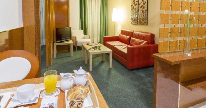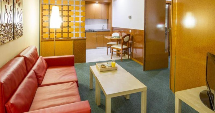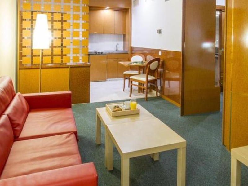 The apartment hotel has 26 suites and 26 apartments, which are located on 7 storeys and are reachable by lift. Multilingual staff (English, German, French) at the reception are happy to assist guests at the reception desk round the clock. Check-in and check-out are available 24 hours a day. Amenities include a cloakroom, a baggage storage service and a safe. Wireless internet access allows guests to stay connected while on holiday. The tour desk offers assistance with booking excursions. The hotel offers various facilities for guests with disabilities. Wheelchair-accessible facilities are available. Additional amenities include a newspaper stand, a TV room and a playroom. Guests arriving by car can park their vehicles in the garage or in the car park. Further services and facilities include a car hire service, a transfer service, room service, a laundry service, a coin-operated laundry and a hotel shuttle bus. A fax machine is available for guests business needs.
