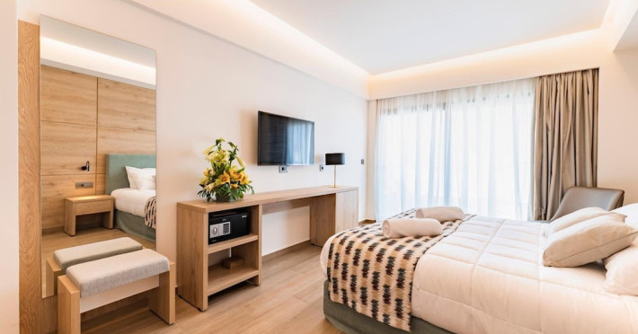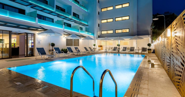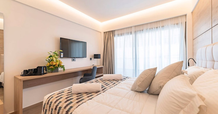 Located in Rhodes Town, Acandia Hotel offers accommodation with a seasonal outdoor swimming pool, a restaurant, a bar, a shared lounge, and a terrace. Complimentary wireless internet access is available. The hotel features a 24-hour front desk, room service, dry cleaning/laundry services, and luggage storage. Guests can enjoy a complimentary cooked-to-order breakfast daily. The hotel offers conference space and meeting rooms. Self-parking is available (subject to charges). The air-conditioned guestrooms feature a desk, a kettle, a refrigerator, a minibar, a safety deposit box, a flat-screen TV, and a private bathroom with a shower, complimentary toiletries, and a hair dryer. Rooms also have a balcony. The hotel is near Elli Beach, Mandraki Port, and other points of interest. The Diagoras Airport (RHO) is the preferred airport. The Acandia Hotel is a hotel.