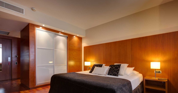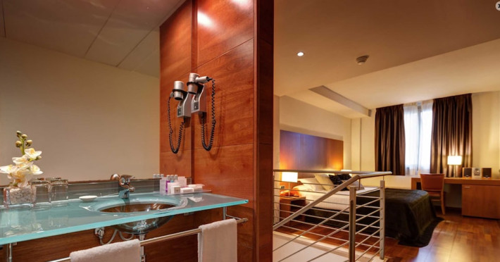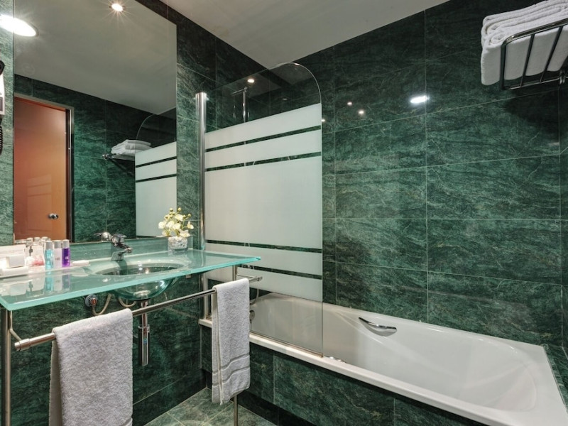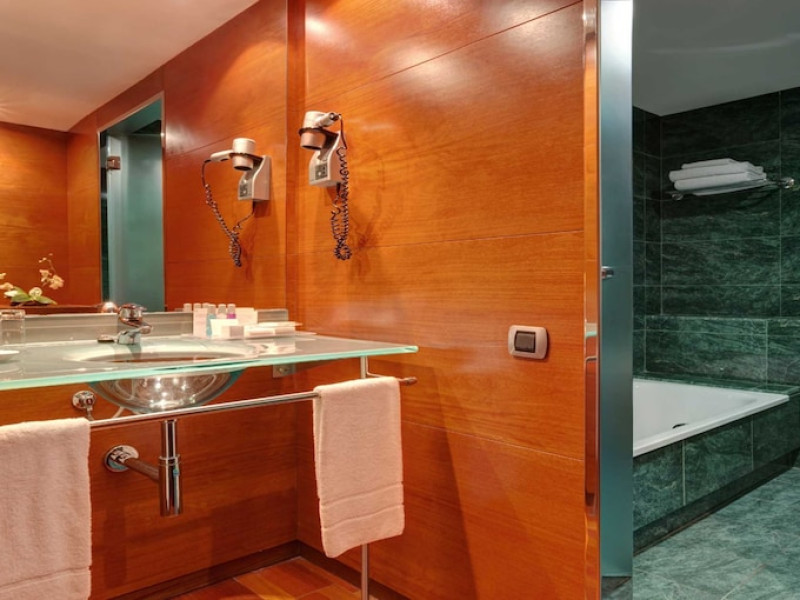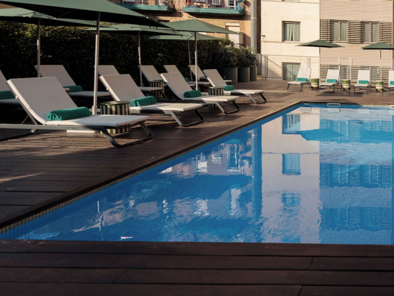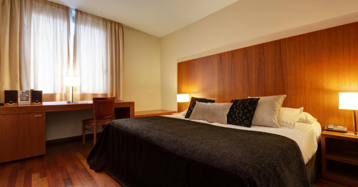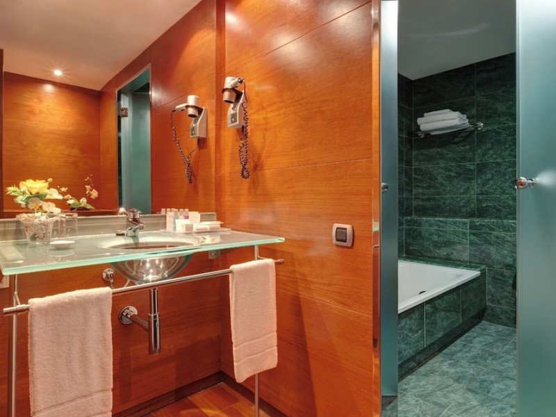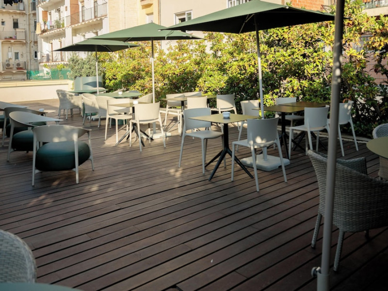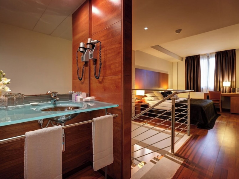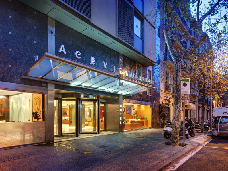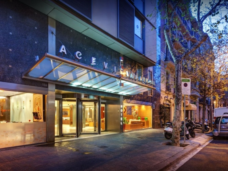 Located in downtown Barcelona, Acevi Villarroel is within a 15-minute walk of Passeig de Gràcia and Rambla de Catalunya, and near the Barcelona Fair, Plaza España, Barcelona University, and the Raval district. Urgell Metro Station is 400 metres away, with easy access to the Sagrada Familia and Camp Nou Stadium. The hotel offers guest rooms with modern minimalist decor, parquet floors, and marble bathrooms. Each room features air conditioning, a phone, minibar, satellite TV, safe, hairdryer, and complimentary wired and wireless internet access. Bathrooms include complimentary toiletries and bidets. The hotel features a spa, a rooftop pool (open in summer), a hot tub, a sauna, a 24-hour fitness center, a business center, and offers concierge, laundry, and wedding services. Guests can enjoy room service (during limited hours). Buffet breakfasts are served on weekdays from 7:00 AM to 10:00 AM and on weekends from 7:30 AM to 10:30 AM for a fee. Self-parking is available (subject to charges). Barcelona El Prat Airport is approximately a 20-minute drive away. The ACEVI VILLARROEL HOTEL is a Tourist hotel. Located in Barcelona area. The nightlife/restaurants are located in the hotel.