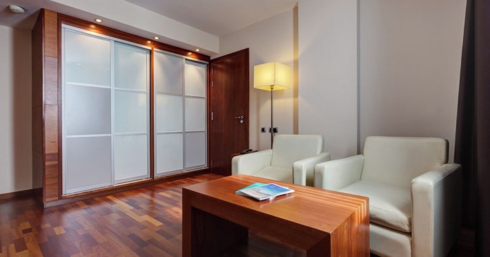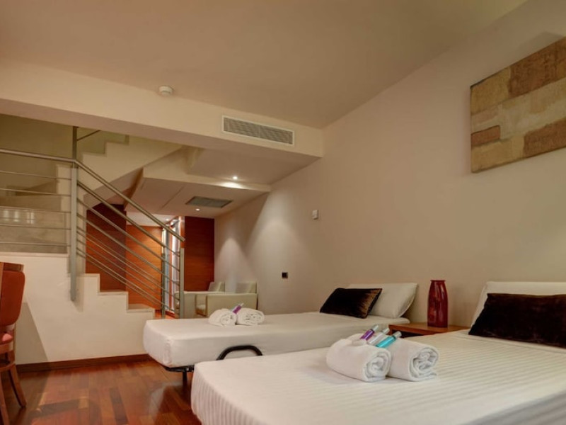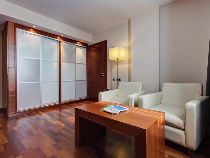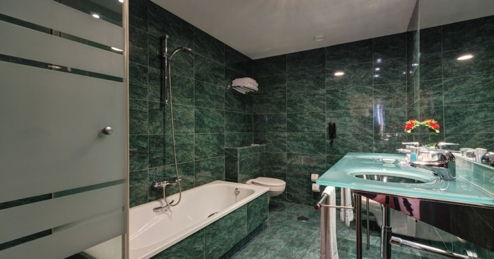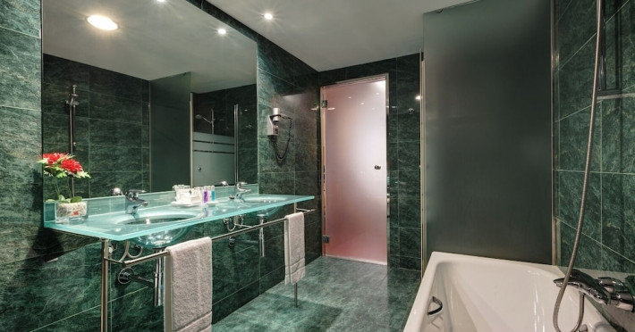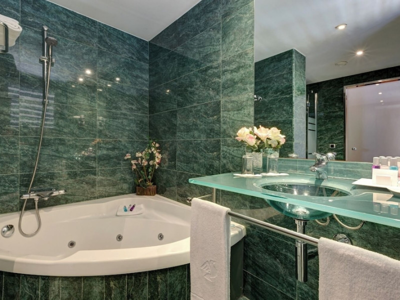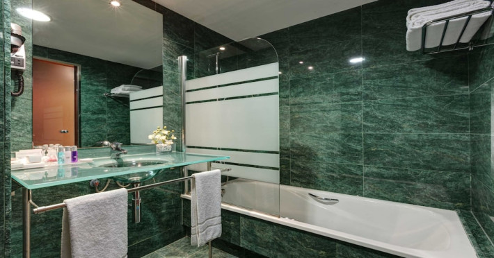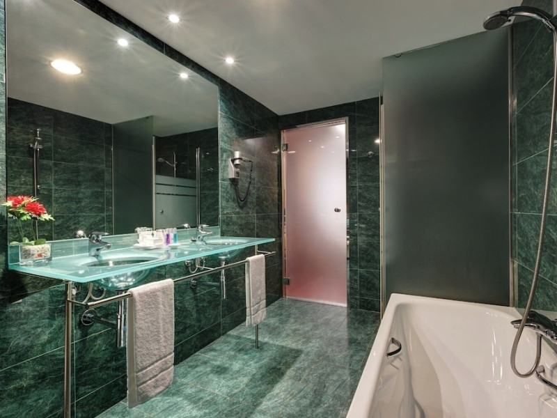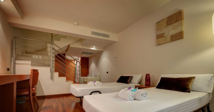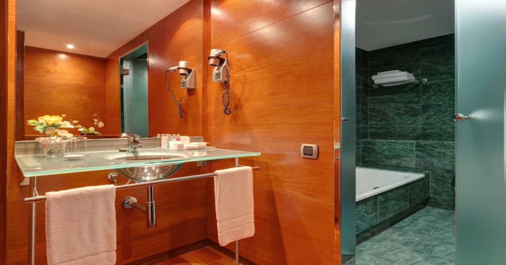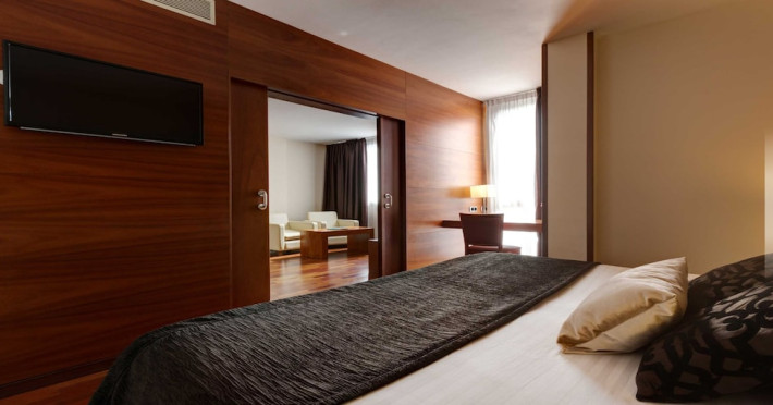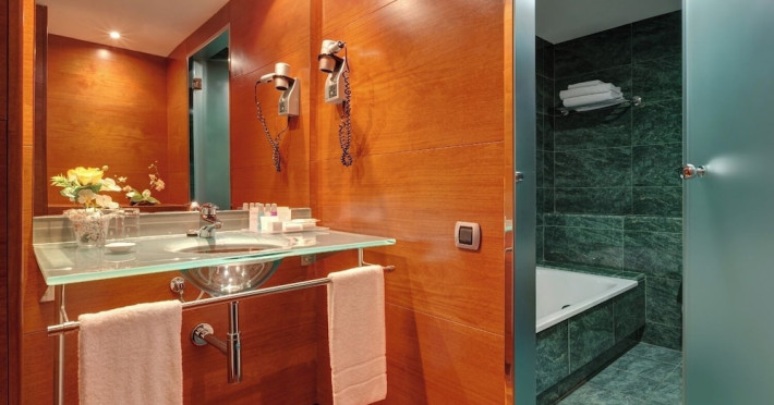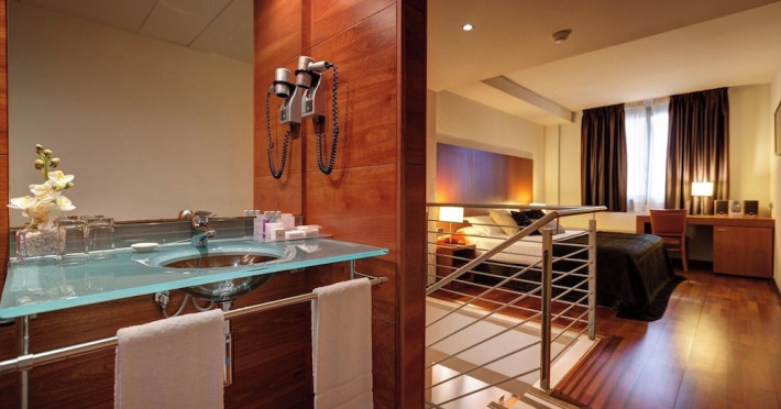 Located in downtown Barcelona, Acevi Villarroel is within a 15-minute walk of Passeig de Gràcia and Rambla de Catalunya, and near the Barcelona Fair, Plaza España, Barcelona University, and the Raval district. Urgell Metro Station is 400 metres away, with easy access to the Sagrada Familia and Camp Nou Stadium. The hotel offers guest rooms with modern minimalist decor, parquet floors, and marble bathrooms. Each room features air conditioning, a phone, minibar, satellite TV, safe, hairdryer, and complimentary wired and wireless internet access. Bathrooms include complimentary toiletries and bidets. The hotel features a spa, a rooftop pool (open in summer), a hot tub, a sauna, a 24-hour fitness center, a business center, and offers concierge, laundry, and wedding services. Guests can enjoy room service (during limited hours). Buffet breakfasts are served on weekdays from 7:00 AM to 10:00 AM and on weekends from 7:30 AM to 10:30 AM for a fee. Self-parking is available (subject to charges). Barcelona El Prat Airport is approximately a 20-minute drive away. The ACEVI VILLARROEL HOTEL is a Tourist hotel. Located in Barcelona area. The nightlife/restaurants are located in the hotel.