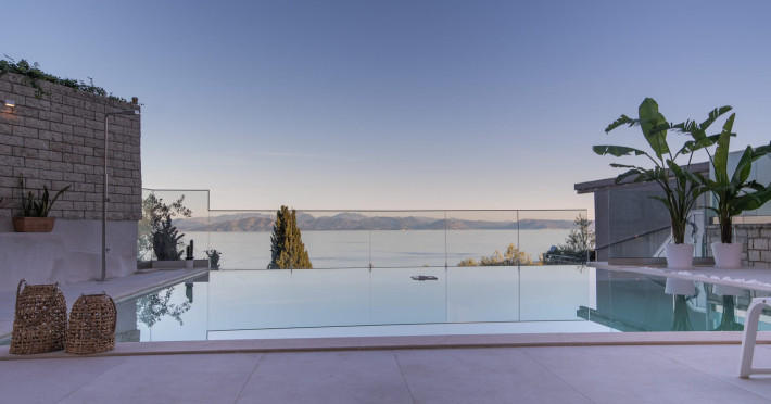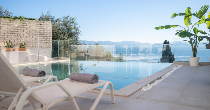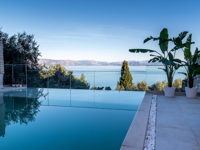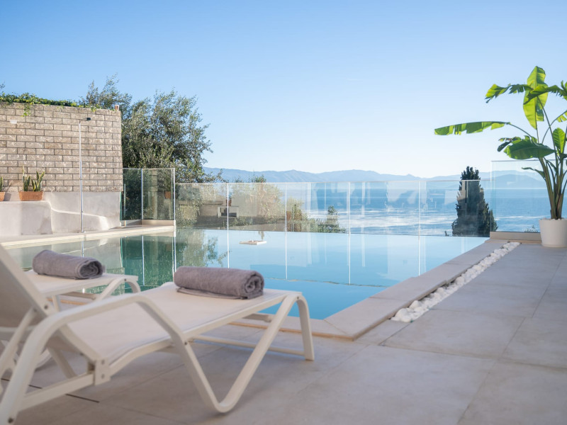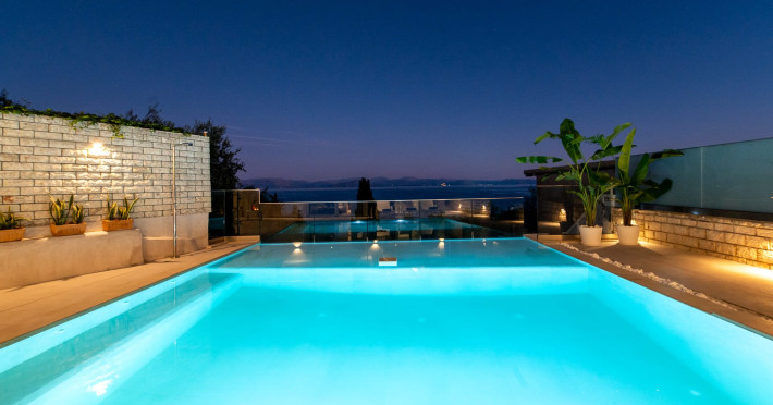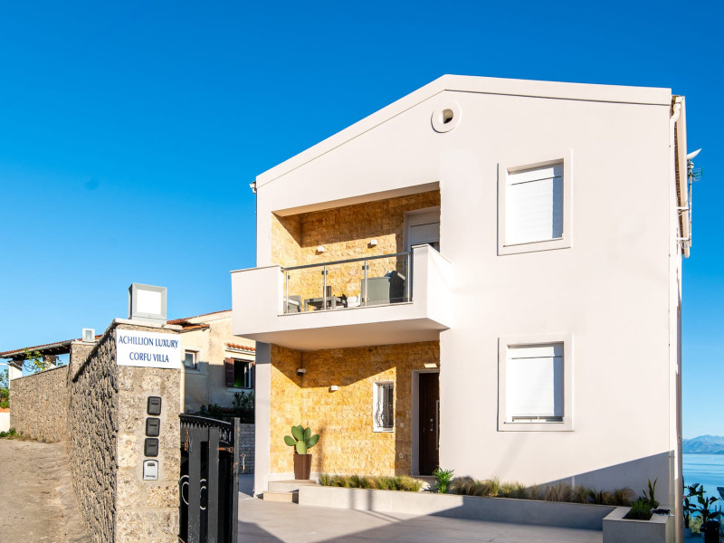 ACHILLION LUXURY CORFU VILLA is located in the region of Perama, Corfu in a peaceful area with a breathtaking view of the Ionian Sea, 3 km from Ioannis Kapodistrias (Corfu) airport, 5 km from the town centre and very near to the beautiful and unique Pontikonisi. Within a 5 minute drive, we find the famous Achillion, one of the most well-known royal villas in Europe and, perhaps, the most important architectural site in Corfu.The Achillion Luxury Corfu Villa includes three independent renovated luxury suits with private parking for 3 cars and is fully furnished and equipped with all necessary facilities and free indoor and outdoor Wi-Fi.The “Senior Suite with Pool View” is located on the ground floor and it has a marvelous pool and sea view. It includes a big bedroom with a large bed with a flat-screen TV, A/C – heating and a spacious kitchen equipped with all electrical appliances (large 2-door refrigerator, microwave oven, dishwasher, washing machine, iron and iron board). It also has a sitting room, an internal fire place for cold and winter nights and a spacious bathroom with 2 showers, 2 sinks and a hair dryer.The “Majestic Loft Suite with indoor hot tub” is an open-planed suite located on the first floor of the villa with individual front door. It includes a large bed with a flat-screen TV, A/C – heating and a kitchen equipped with all electrical appliances (refrigerator, microwave oven, washing machine, iron and iron board). It also has a sitting room with sea view and a bathroom with steam/jacuzzi, 2 showers, 2 sinks and a hair dryer.The “Panoramic Loft Suite with indoor hot tub” is an open-planed suite located on the second floor of the villa with individual front door. It includes a large bed with a flat-screen TV, A/C – heating and a kitchen equipped with all electrical appliances (refrigerator, microwave oven, washing machine, iron and iron board). It also has a sitting room with sea view and a bathroom with steam/jacuzzi, 2 showers, 2 sinks and a hair dryer.Public transport is also available and there is a bus stop within a 5-minute walk from the villa. The beautiful beaches are also very close by (about 800 m) together with fish taverns, supermarkets, fruit markets, kiosks, clubs, cafeterias, etc. One shouldn’t forget the historical and archeological sites for which one can obtain information on the spot.Interaction with GuestsGuests wishing to be informed of Corfu sightseeing can do so through brochures and maps that can be found at the suites.Getting AroundGuests can use public transport but we recommend car rental so that they can explore the island at their own pace. For your information, you can rent your preferred car from all the major car rental companies online. Finally, we would like to inform you that there is a 24-hour taxi service.We would like to inform you that smoking is forbidden. Pets are not allowed in the suites. We expect you to respect the house and keep it clean as if it were your own.Check-in time is 14:30 - 23:00Check-out time is 8:30- 11:00