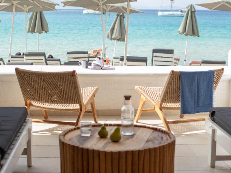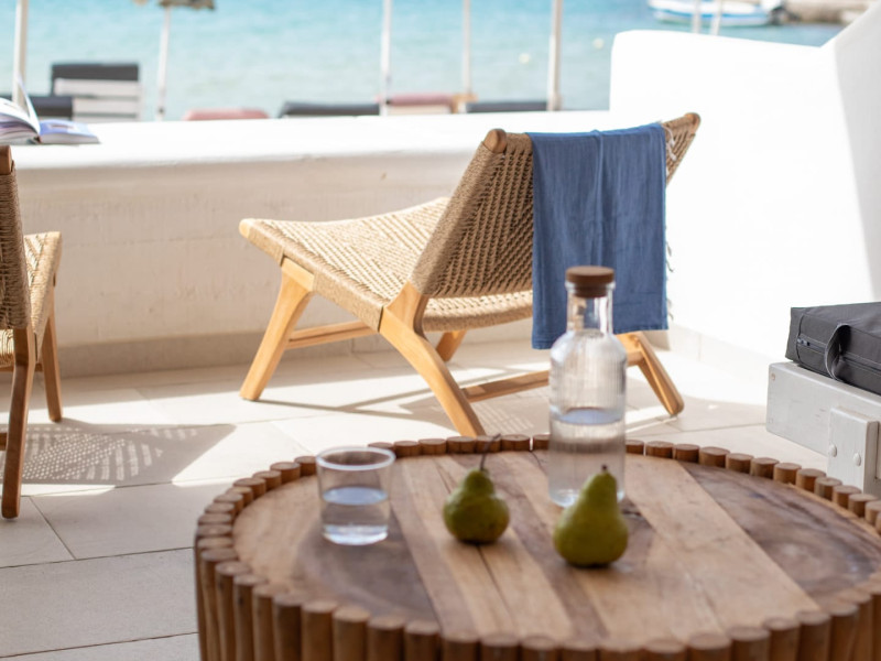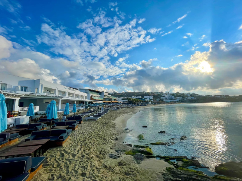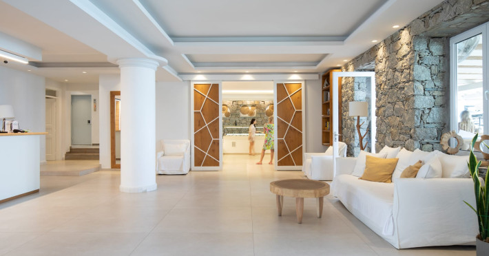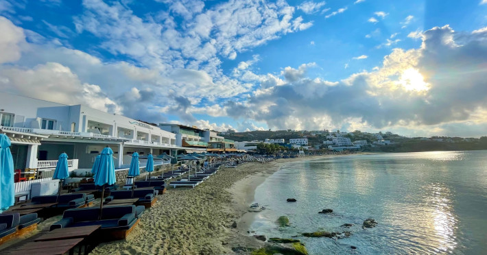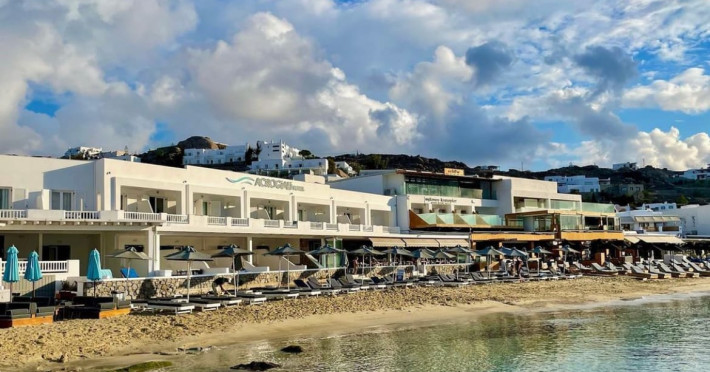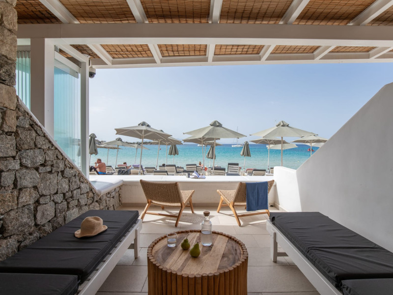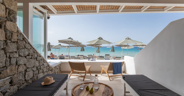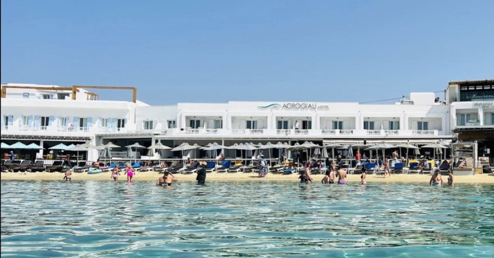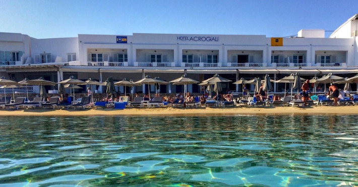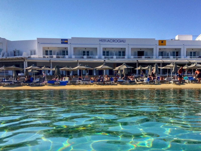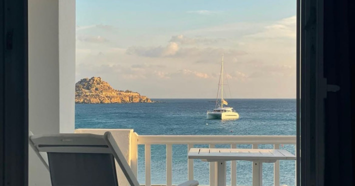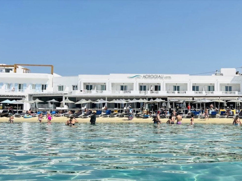 Set directly on the golden sands of Platis Gialos Beach, Acrogiali Beach Hotel invites you to experience Mykonos at its most intimate and authentic.Wake up to the gentle sound of the Aegean waves and step straight from your room onto the beach, where crystal-clear waters and sun-drenched horizons create the perfect setting for unforgettable moments.Blending traditional Cycladic architecture with contemporary comfort, the hotel offers a warm and relaxed atmosphere ideal for couples seeking a romantic seaside escape.Start your day with breakfast served on the beachfront terrace overlooking the sea, and spend your afternoons unwinding on complimentary sunbeds just steps from the water.Guests may also enjoy access to the swimming pool and fitness facilities at our sister property, The George Mykonos, located within easy walking distance.As the sun sets, the vibrant yet charming atmosphere of Platis Gialos invites you to explore its seaside restaurants, while nearby water taxis connect you to some of Mykonos’ most iconic beaches.A scheduled transfer service is available for arrivals and departures upon prior notice.