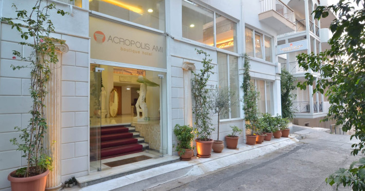 The Acropolis Ami Boutique Hotel is ideally situated in a peaceful setting and only 15’ walking distance from the Acropolis and the New Acropolis Museum. Combining stylish and classic decor, our hotel is near all major Athens’ attractions such as Plaka, Monastiraki, Panathinaikon Stadium and the Temple of the Olympian Zeus.The nearest metro station (3’ walk), Syggrou Fix, makes all of Athens’ attractions even more accessible and it’s the most fast way for you to find us from the airport.The roof garden offers you a beautiful panoramic view of Athens and the Acropolis itself. All the rooms at the Acropolis Ami Boutique Hotel are air-conditioned, come with a flat screen TV with a substantial number of national and satellite channels and free Wi-Fi access.The 24h reception is here to offer you a warm welcome, ideas and advices regarding Athens and excursions to nearby islands that will make your experience in this historic city even more fulfilling!