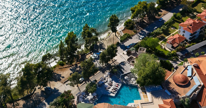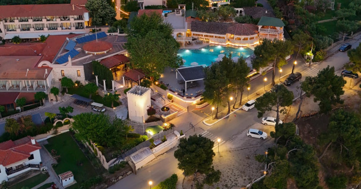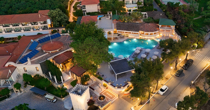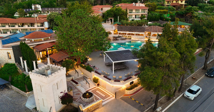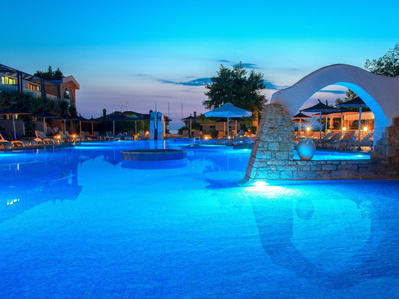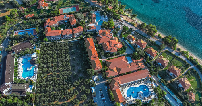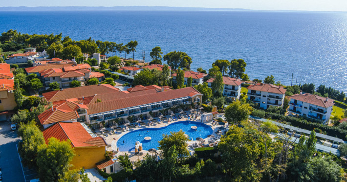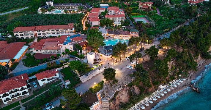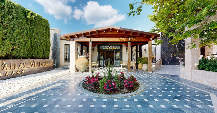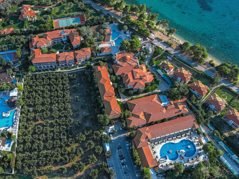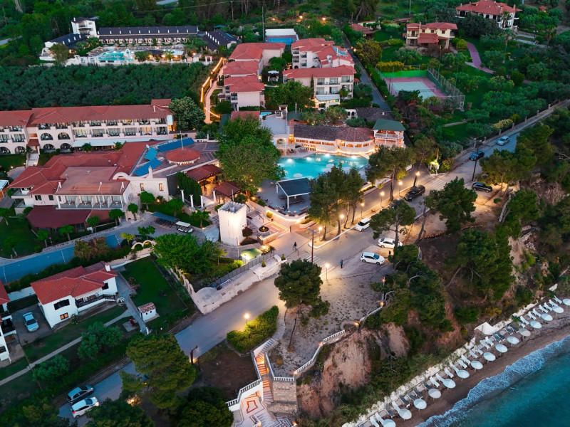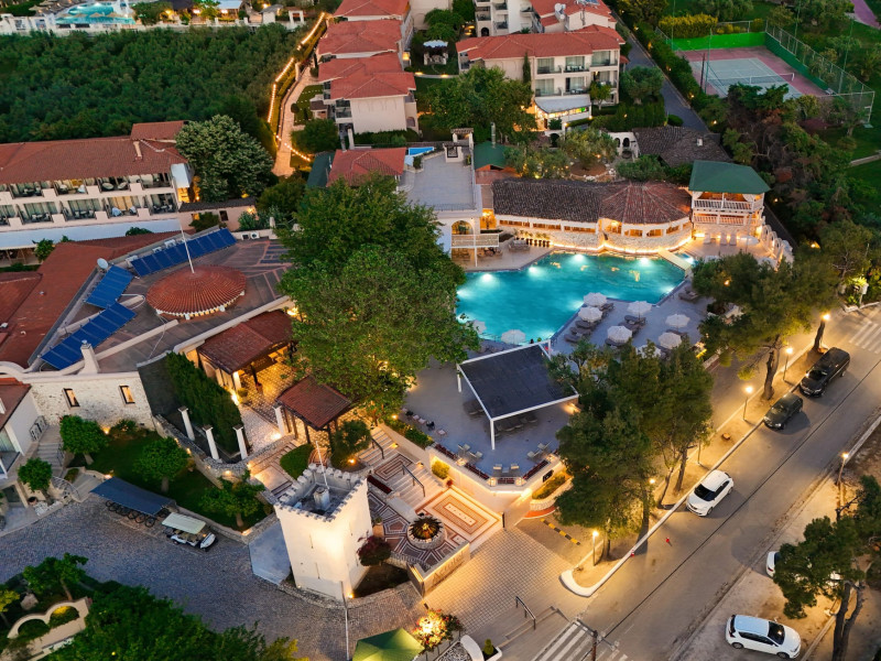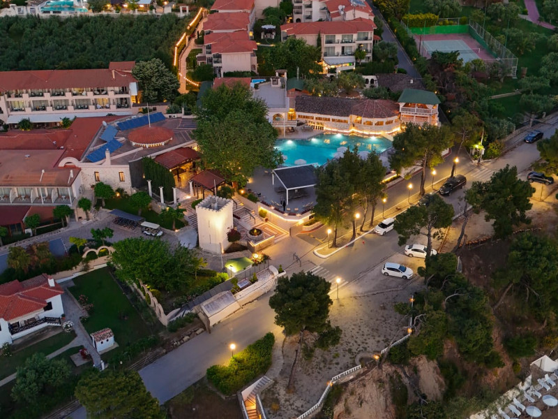 Welcome to Acrotel Athena Pallas,Occupying an expansive 30,000 square meters, our hotel seamlessly integrates within its surroundings through a composition of six distinct categories of buildings, in addition to a central architectural masterpiece. Acrotel Athena Pallas is equipped with a comprehensive infrastructure that ensures a superlative level of service, catering to the diverse desires and expectations of each guest, guaranteeing a comfortable and unparalleled stay.Within this authentic village atmosphere, culinary experiences range from savoring traditional Greek recipes to indulging in Mediterranean cuisine. The renowned main restaurant 'Doxato' and the rustic Greek tavern 'Lemoni' offer exquisite dining encounters. Complementing these dining choices, our selection of six bars remains at your service. Enhanced by a 1200 square meter spa facility, a cutting-edge gym (complimentary access), as well as amenities like a sauna, Turkish bath, Jacuzzi, and professional massage services, we ensure every guest's exhilaration.Our establishment boasts additional leisure amenities, including a tennis court and mini golf course, designed to further elevate your stay.Location-wise, Athena Pallas is gracefully positioned on Elia Beach within Sithonia, Halkidiki, crafting a serene and captivating setting reminiscent of a traditional Greek village. The entirety of Sithonia Peninsula boasts pristine beaches with crystal-clear azure waters, ensuring moments of tranquility and an immersive experience in nature's splendor. Our convenient proximity to Nikiti (9 km) and Neos Marmaras (11 km) opens up a realm of recreational possibilities. Complimentary hotel transportation or the local public bus offer seamless accessibility to these neighboring destinations.