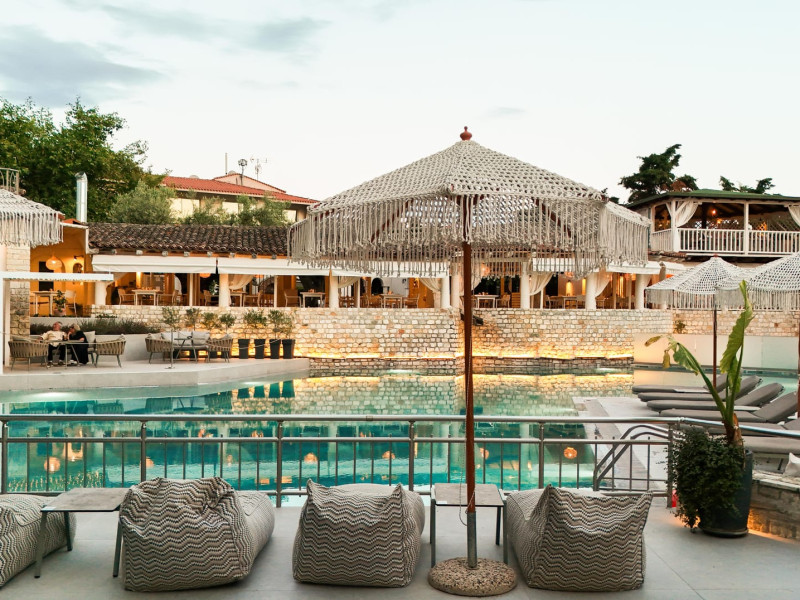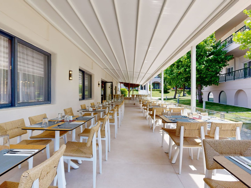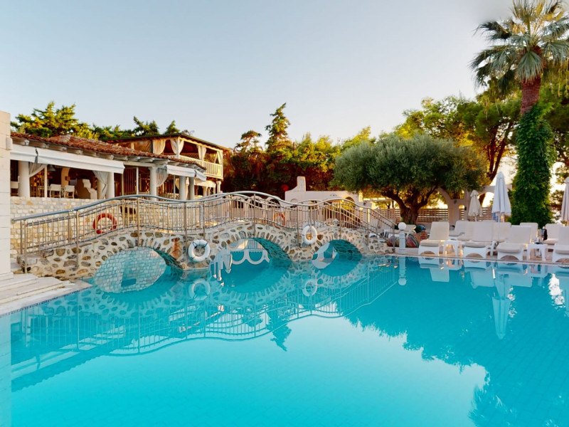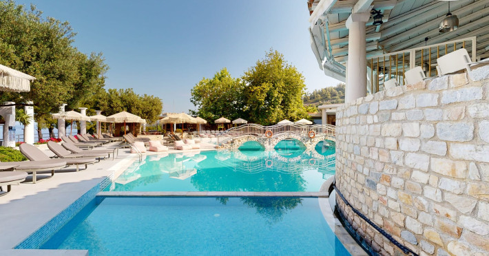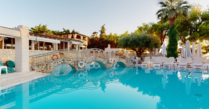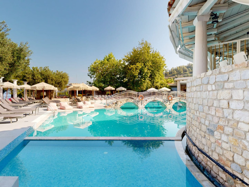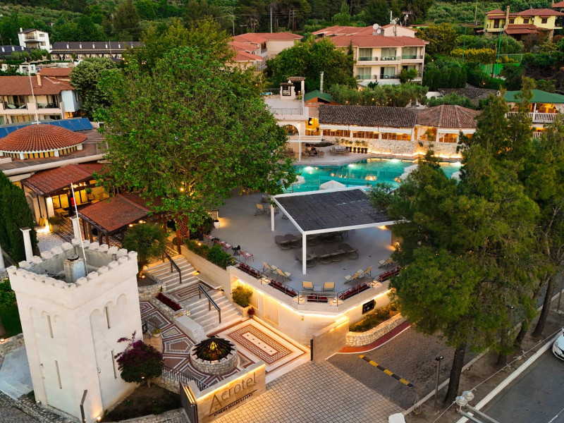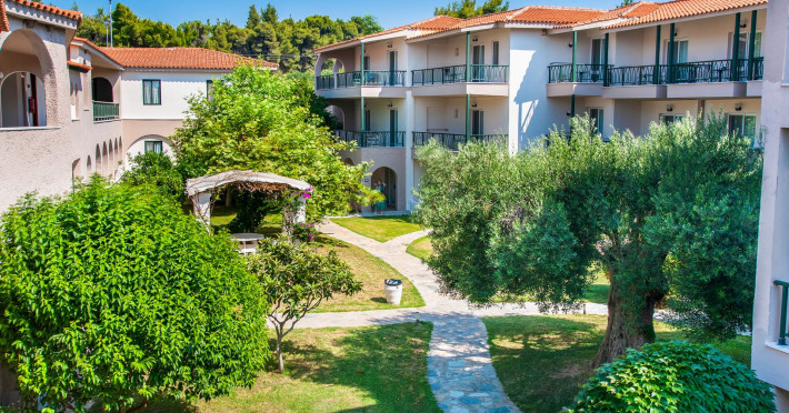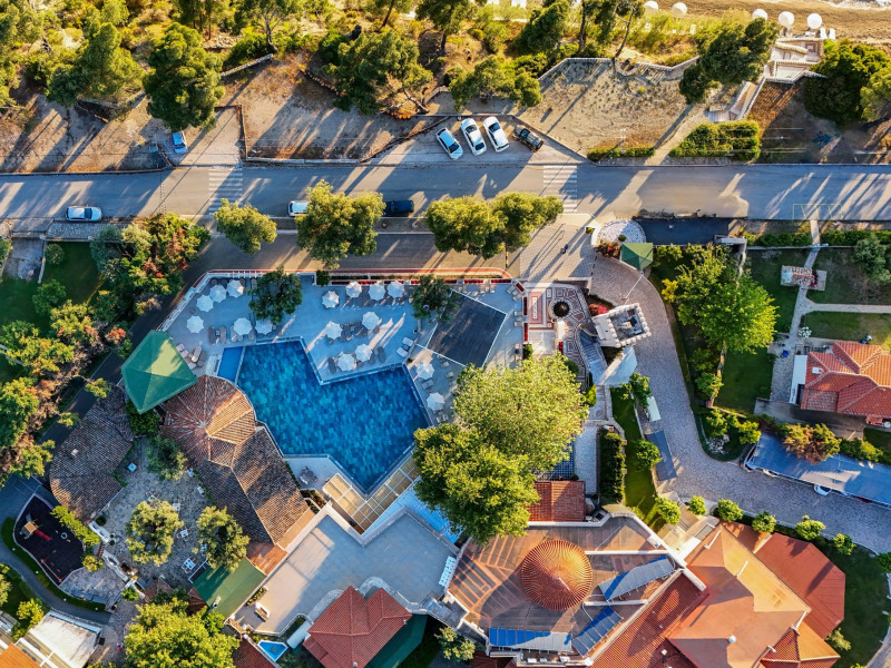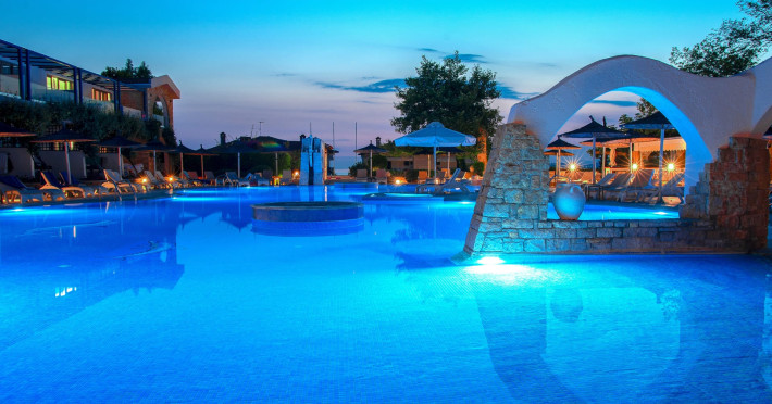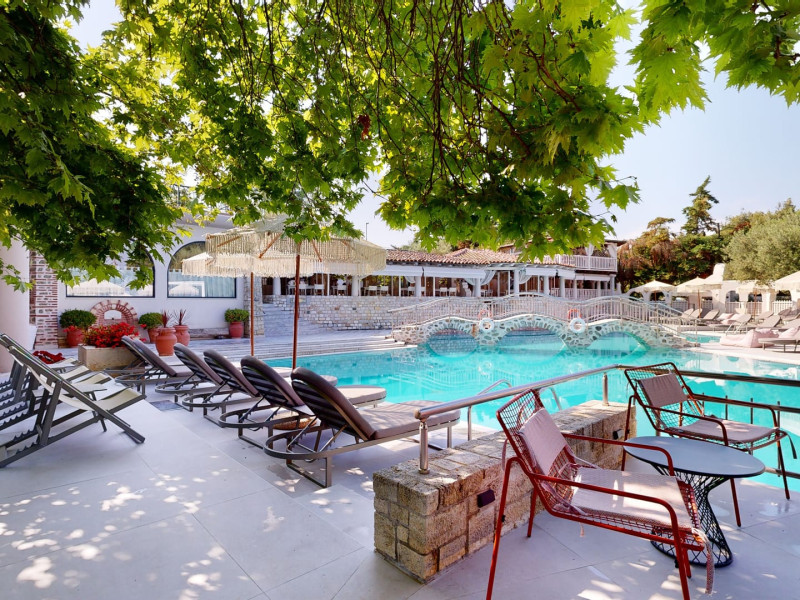 Welcome to Acrotel Athena Pallas,Occupying an expansive 30,000 square meters, our hotel seamlessly integrates within its surroundings through a composition of six distinct categories of buildings, in addition to a central architectural masterpiece. Acrotel Athena Pallas is equipped with a comprehensive infrastructure that ensures a superlative level of service, catering to the diverse desires and expectations of each guest, guaranteeing a comfortable and unparalleled stay.Within this authentic village atmosphere, culinary experiences range from savoring traditional Greek recipes to indulging in Mediterranean cuisine. The renowned main restaurant 'Doxato' and the rustic Greek tavern 'Lemoni' offer exquisite dining encounters. Complementing these dining choices, our selection of six bars remains at your service. Enhanced by a 1200 square meter spa facility, a cutting-edge gym (complimentary access), as well as amenities like a sauna, Turkish bath, Jacuzzi, and professional massage services, we ensure every guest's exhilaration.Our establishment boasts additional leisure amenities, including a tennis court and mini golf course, designed to further elevate your stay.Location-wise, Athena Pallas is gracefully positioned on Elia Beach within Sithonia, Halkidiki, crafting a serene and captivating setting reminiscent of a traditional Greek village. The entirety of Sithonia Peninsula boasts pristine beaches with crystal-clear azure waters, ensuring moments of tranquility and an immersive experience in nature's splendor. Our convenient proximity to Nikiti (9 km) and Neos Marmaras (11 km) opens up a realm of recreational possibilities. Complimentary hotel transportation or the local public bus offer seamless accessibility to these neighboring destinations.