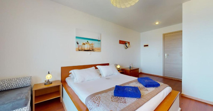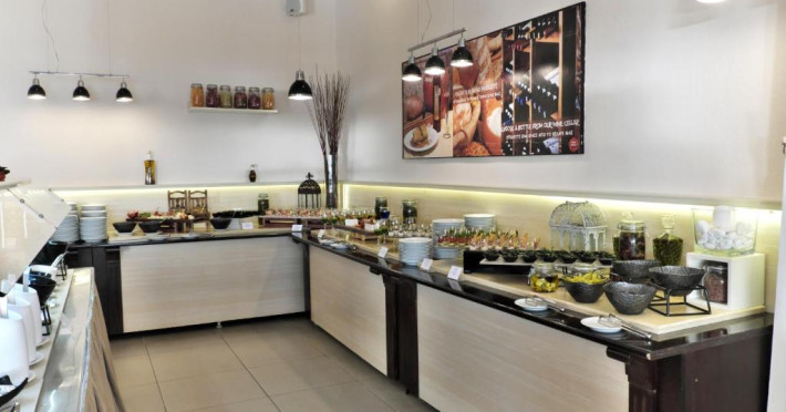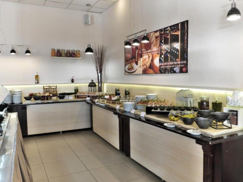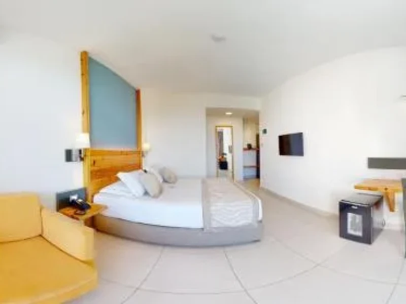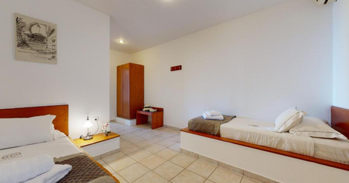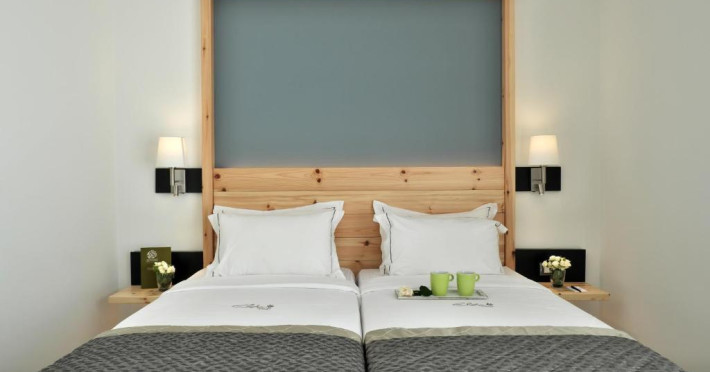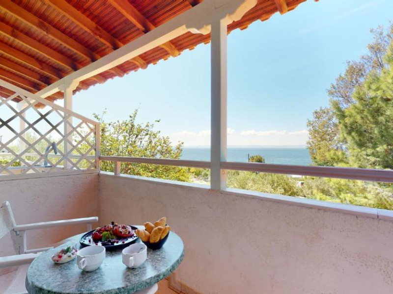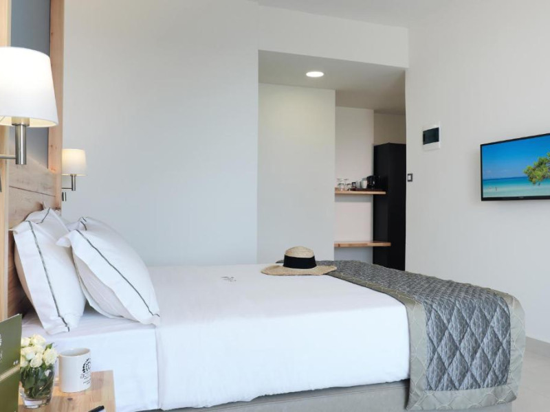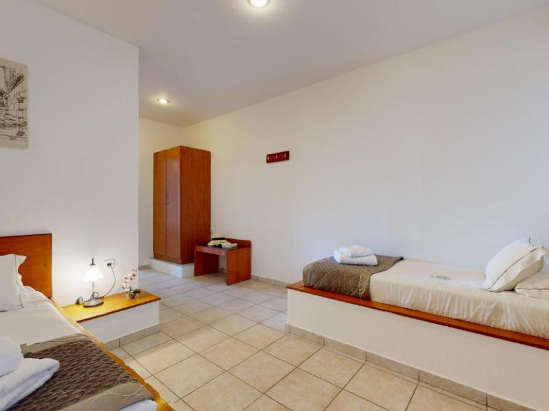 Camerele luminoase și confortabile sunt decorate in nuanțe mediteraneene și dispun de balcoane sau terase cu vedere spre mare sau grădină. Facilitățile principale includ piscină exterioară cu secțiune pentru copii, restaurant principal cu preparate grecești și internaționale, bar la piscină și lobby bar.