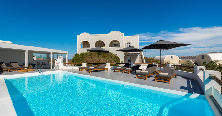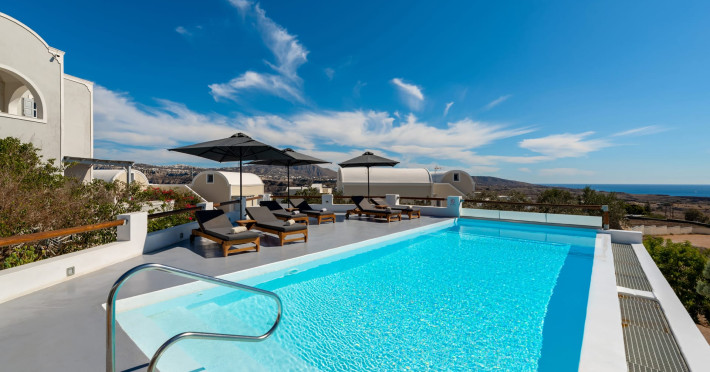 Acrothea suites & villas is located in the traditional village of Akrotiri, close to Santorini’s famous Minoan excavations and the unique Red Beach. Ideally located, Acrothea offers a panoramic view of the island, including the breathtaking cliffs of volcano and full view of the Volcano.Its name derives from Acrotiri village, which means cape and the Greek word Thea which means view. Each spacious suite & Villa includes a fully equipped Kitchen, bath, 1 or 2 bedrooms and balcony with respect to the traditional architecture and styling.Run by a family business, Acrothea offers a tranquil and friendly environment, with ultimate services at reasonable prices.