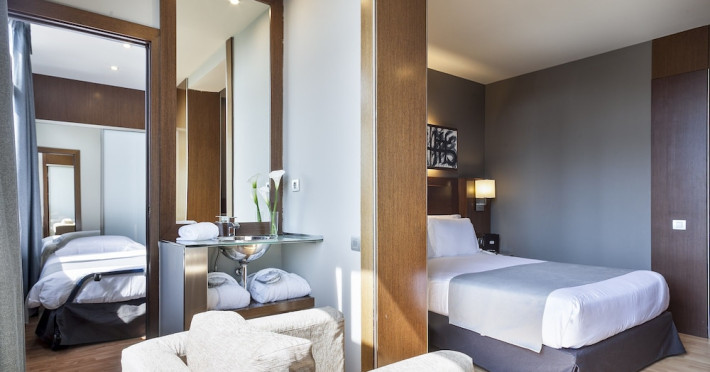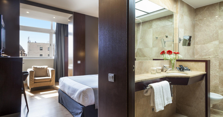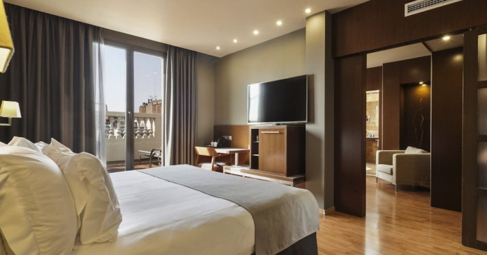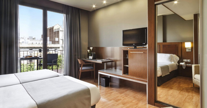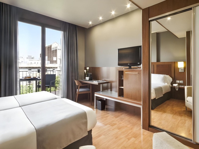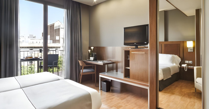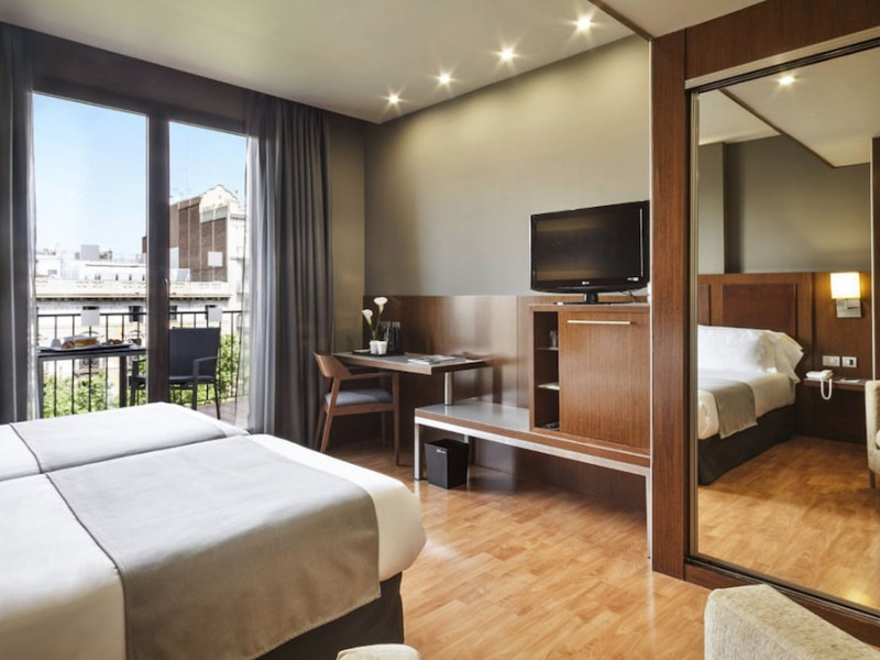 Acta Atrium Palace is a 4-star hotel in the heart of Barcelona, within a 10-minute walk of Plaça de Catalunya and La Rambla, and less than 0.7 km from Passeig de Gràcia and Casa Batlló. The hotel offers 67 guestrooms with minibars, plasma televisions, complimentary wireless internet access, satellite programming, private bathrooms with shower/tub combinations, complimentary toiletries, hair dryers, phones, safes, and desks. Amenities include 24-hour room service, a complimentary breakfast buffet (7:30 AM to 11:00 AM, fee applies), a business center, complimentary newspapers in the lobby, dry cleaning/laundry services, and two meeting rooms. Additional amenities may include concierge services, a television in a common area, and parking (details not specified). The nearest airport is Barcelona El Prat Airport (BCN), 20.1 km away. Nearby attractions include Tivoli Theatre (0.3 km), Rambla de Catalunya (0.4 km), Portal de l'Angel (0.6 km), El Corte Ingles (0.6 km), University of Barcelona (0.6 km), Palau de la Música Catalana (0.7 km), Church And Convent Of The Salesian (1 km), Barcelona Cathedral (1.1 km), Casa Milà (1.1 km), and Arc de Triomf (1.1 km). The Acta Atrium Palace is a Tourist hotel. The nightlife/restaurants are located in the hotel.