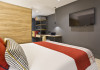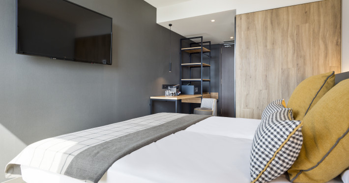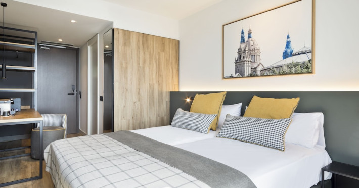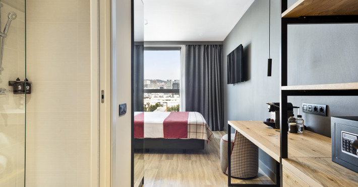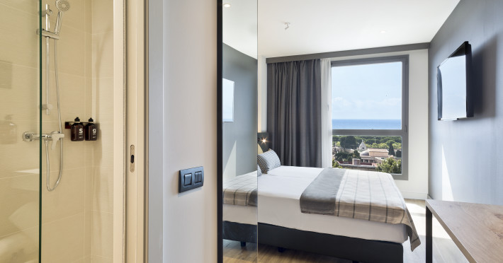 Hotel Acta Voraport *** is centrally located in Barcelona's Poblenou district, a short distance from Bogatell Beach. It offers 313 rooms with complimentary Wi-Fi, a work desk, a laptop-compatible safe, and a bathroom with a shower and hairdryer. Guests can enjoy a seasonal outdoor infinity pool and a rooftop terrace with panoramic views. The hotel features a bar/lounge, a snack bar/deli, and offers a daily buffet breakfast (for a fee). Additional amenities include a 24-hour front desk, concierge services, luggage storage, dry cleaning/laundry services, and an automatic Express Check-In service with lockers. The hotel provides two meeting rooms with space for up to 120 people, conference space, and a catering area. Onsite parking is available, including electric vehicle charging. The Barcelona El Prat Airport (BCN) is 19.7 km away. The Acta Voraport is a hotel.
