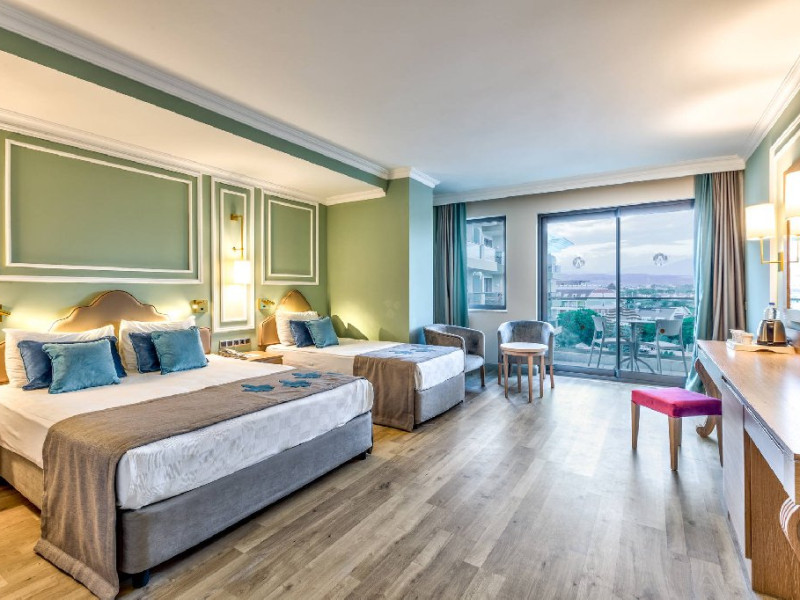Hotel de inalta clasa, perfect pentru familiile cu copii ofera un program animat si variat, situat intr-o locatie convenabila, la doar cativa pasi de o plaja larga cu nisip, ideala pentru relaxare. Aproape de oraselul pitoresc Side, faciliteaza explorarea atractiilor locale. Dintre hotelurile lantului Adalya, acest complex se remarca prin adaptarea sa excelenta la nevoile familiilor, fiind o alegere ideala pentru cei care cauta confort si varietate. ________________________________________ Hotel - Receptie 24h/7, lobby, 5 lifturi - 5 piscine: principala, pentru copii, interioara, mini aquapark cu 2 piscine si 6 tobogane - Sezlonguri si umbrele gratuite la piscina - Atractii pentru copii: piscine, mini aquapark cu tobogane - Restaurante: 5 restaurante, inclusiv restaurantul principal si a la carte (fructe de mare, barbeque, italiana), 6 baruri (inclusiv bar in lobby, pe plaja si la piscina), pattiserie - Alte facilitati: mini biblioteca, butic (contra cost), spalatorie (contra cost), coafor (contra cost), inchirieri auto si biciclete (contra cost), serviciu medical (contra cost) - Wi-Fi gratuit in intregul hotel, inclusiv in camere ________________________________________ Localizare - In regiunea turistica Evrenseki - La cca. 56 km de aeroportul din Antalya - La cca. 7 km de centrul orasului Side restaurante si magazine locale in apropiere - La cca. 13 km de Manavgat - Acces facil cu transportul local ________________________________________ Plaja - La cca. 300 m de hotel - Plaja larga, cu nisip si pietris fin - Sezlonguri, umbrele si prosoape gratuite - Plaja certificata cu Blue Flag ________________________________________ Mese Ultra All Inclusive: - Mic dejun: 07:0010:00 - Mic dejun tarziu: 10:0011:00 - Pranz: 12:3014:30 - Cina: 19:0021:00 - Bufet de noapte: 23:0007:00 - Gustari la barul de la piscina si pe plaja: 12:3016:00 - Prajituri si gustari dulci la pattiserie: 10:0019:00 - Inghetata: 12:3016:00 si 18:0021:00 - Clatite turcesti: 12:3016:00 - Gofre: 12:3016:00 Baruri: - Bauturi locale alcoolice si nealcoolice in barurile desemnate (nu se servesc intre 08:0010:00) - Bar Vitamin pot exista costuri suplimentare Contra cost: - Unele bauturi alcoolice importate, bauturi imbuteliate ________________________________________ Program sportiv si de divertisment Pentru toti: - Jocuri si activitati, gimnastica la piscina, trambuline, spectacole de seara - Tenis de masa, tenis de camp, squash, darts, boccia, volei pe plaja - Aerobic, sala de fitness - SPA: baie turceasca, sauna Contra cost: - Iluminat pentru tenis si squash - Biliard, bowling, jocuri video - Centru SPA: masaje si tratamente cosmetice - Sporturi nautice pe plaja Pentru copii: - Mini club mare (412 ani), mini disco, loc de joaca ________________________________________ Camere Hotelul are 417 camere moderne, situate in patru cladiri cu 5 etaje. - Camere standard (aprox. 29 mp) max. 3 adulti + posibilitate pat suplimentar pentru copil - Camere standard cu pat supraetajat (aprox. 32 mp) max. 3 adulti + 1 copil - Camere de familie (aprox. 57 mp) max. 4 persoane + posibilitate pat suplimentar; cu 2 bai Dotari in toate camerele: - Baie cu cada sau dus, telefon - TV prin satelit - Seif gratuit - Minibar (la sosire: bauturi racoritoare + bere; ulterior: apa si bauturi racoritoare selectate) - Set pentru ceai/cafea - Balcon cu vedere la imprejurimi sau la piscina ________________________________________ Website oficial: www.adalyahotels.com