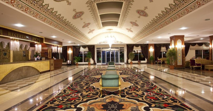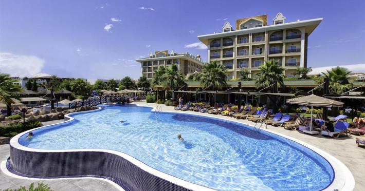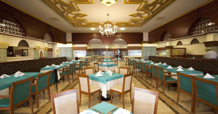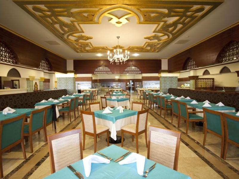 Facilitati hotel: Hotelul ofera oaspetilor sai urmatoarele facilitati: restaurant principal, 3 restaurante a la carte, patiserie, 5 baruri, sala de jocuri (biliard, sah, bowling, jocuri video), 3 piscine exterioare din care una cu 3 tobogane, piscina pentru copii, piscina interioara, centru SPA, baie turceasca, sauna, program de animatie, centru fitness, tenis de masa, darts, voley pe plaja, aerobic, internet wireless in spatiile comune.