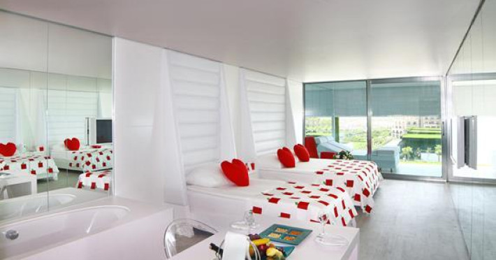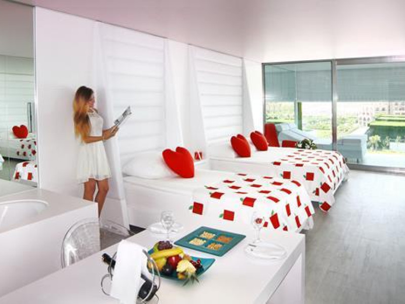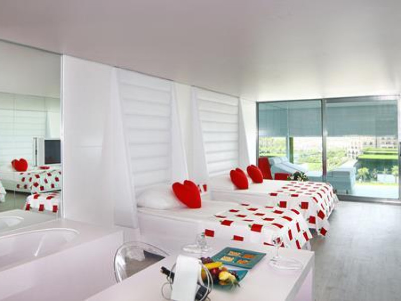 Adamamp;Eve Hotel “special class” category and calls itself as “without star” with designing awards. Our understanding of service and holiday are also different just like our another features: Holiday at Adam amp; Eve is “designing high level creative vacation” which working for the highest satisfaction of our guests. “The mosts” of Adam amp; Eve are another reason for seeing there: The worlds largest lounge is waiting for you with a space of 10.000 m²,an extraordinary width and height. You are sipping your drink at the bar that called Atrium within a flood of entertainment and light; here you are at the world’s longest bar with a length of 96 meters. If you wish you will stay in “design” room, it also has a width far beyond world standards. Our “design” rooms equally with a personal spa feature are exactly 64 m² wide. And whenever you want to cool yourself, here’s the longest swimming pool of the world that is large enough to include to Olympic pools is in front of you with all its resplendency. Atrium is an outstanding place with a ceiling high as 22 meters,a length of 175 meters and decorated with 4.980.000 little mirrors that each is only 5x5 cm. The select restaurants of Asian,Turkish and International ,3 bars,10 shops as well as Atrium–the longest bar of the world are all in Apple Garden.In the night,a very luxury and fabulous party location is waiting for you with light shows and with accompany of famous DJ’s. ------------------------- ROOMS; Total 476 rooms amp; 68 Villas 57 Design Room 16 Design Suite 10 Design Room Direct Sea Viewnbsp; 2nbsp;nbsp; King Suitenbsp; 6nbsp;nbsp; Design Room (Handicap)nbsp; 30 Adam Villa 215 Honeymooner Design Roomnbsp; 34 Eve Villanbsp; 85 Ladies Design Roomnbsp; 4 Presidential (Party)Villanbsp; 85 Romantic Couples Design Room ROOMS EQUIPMENT: two-person steam bath, mini-bar, 106-cm plasma TV, Barrisol ceiling, bathrobes (on request-free of charge), kettle ( tea and coffee) , central air condition (depending on weather conditions at certain times), the Jacuzzi (with disabilities in our rooms not available), designer desk, LED lighting, direct radio telephone, slippers, electric 220V, maxi bar (extra), electronic safe box, satellite TV, balcony therapy bed, wireless internet, lighted makeup mirror. All rooms cleaned daily, room towels changed every day and every two days bed sheets changed.. All rooms are non-smoking. Included Services; Food amp; Beverages; Open buffet; Breakfast, Late Breakfast, Lunch and Dinner. Night Buffet. Diet Buffet. Snack Restaurant is open certain hours during the day. Local and some imported alcoholic and non-alcoholic beverages. Patisserie is open certain hours during the day. Open ice cream service at lunch and dinner. Regular Snack Bistro amp; Corners Ice cream, Turkish traditional Gözleme, Pizza, Doner Kebab, Baked Potatoes, Waffle, and Sandwiches (serves certain hours during the day). ROOM; Electronic safe box. Daily housekeeping services. Daily towel change. Bed sheets are changed every 2 days. (Villa every day). Wi-Fi. Bathrobe (on request). Mini Bar (Soft drinks and beer). Slippers. Kettle ( teaamp;coffee). SPORT AND ACTIVITIES; Tennis Courts day use, Tennis equipments (Rockets and balls), ? Table Tennis, Beach Volleyball, Fitness center, Sauna, Steam Bath, Turkish Bath, Jacuzzi, Dart, Aerobics, Aqua park, Water Gym, Pilates, Yoga, Squash (Rackets and balls). ENTERTAINMENT; Daily animation activities, Adam amp; Eve special surprise party concepts, Live Music (Several days in the week), Lab Disco. OTHERS; Deck chairs and Sun umbrellas, Beach towels, Sun terrace at the beach, In the Lobby, general area and in the rooms normal speed WiFi connection. Extra Services; Food amp; Beverages; Maxi Bar in the room, All import champagne, Room Service, All import and local bottle wines, Luxury import drinks (12 years+ whisky, cognac, bourbon VSOP/XO etc,), Special produce local and import wine, A La Carte Restaurants. SPORTS AND ACTIVITIES; Tennis courts with floodlighting (with reservation), Tennis Lessons, ? All Water Sports, Billiards, Bowling. OTHER SERVICES AND ACTIVITIES; Hairdresser, Shopping Area (Boutique, Gift Shop, Silver Shop, Mini Market, Jewellery, Leather shop and Bag shop), Massage amp; Peeling, Beauty centre and treatment units, Dry Cleaning and Laundry, Car rental service, Photo service, Game Room, Phone, Fax, Internet Café, Flower and Special Birthday Cake Order Service, Cabanas on the pier and near the Relax Pool, Pillow menu, Lounges in the Disco Club, Lounges in the Show Centre, Doctoramp;Nurse (on sertain hours) (In emergency cases 24 hours available). FOOD INFORMATION 07:00 – 10:00 Breakfast 10:00 – 11:00 Late Breakfastnbsp; 13:00 – 14:30 Lunch 19:00 – 21:30 Dinnernbsp; 23:30 – 03:00 Night Snacknbsp; 03:00 – 07:00 Early breakfastnbsp; 16:00 – 19:00 Patisserienbsp; For more details click here