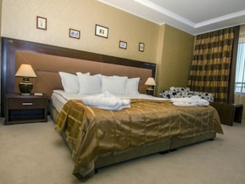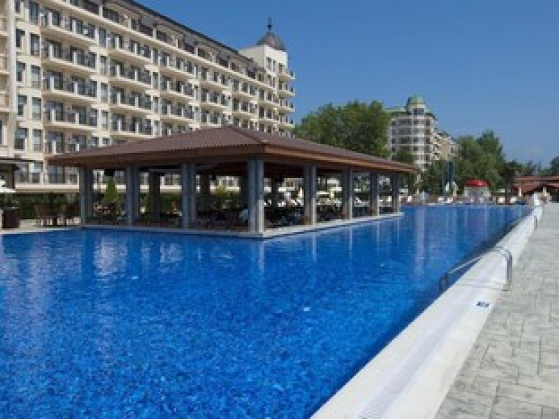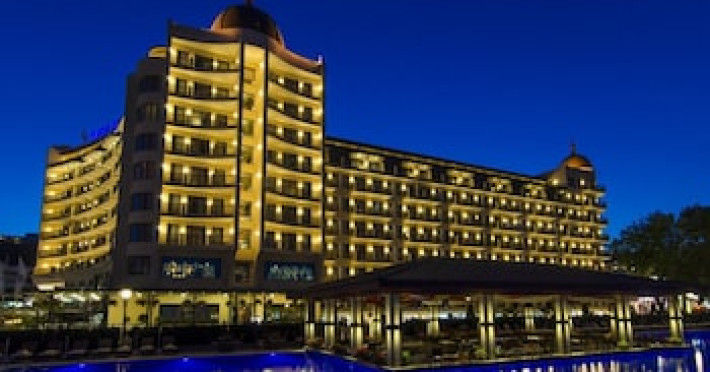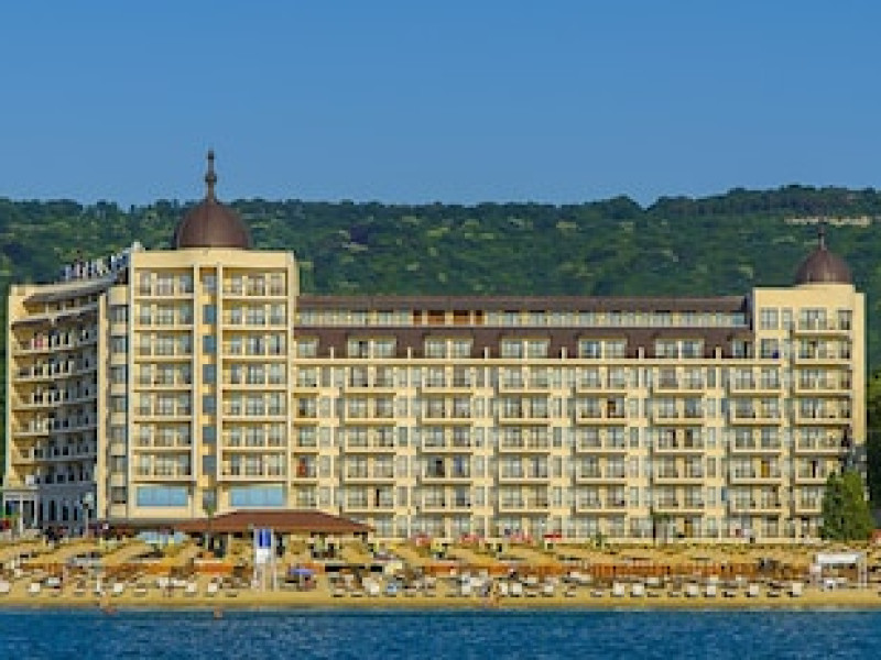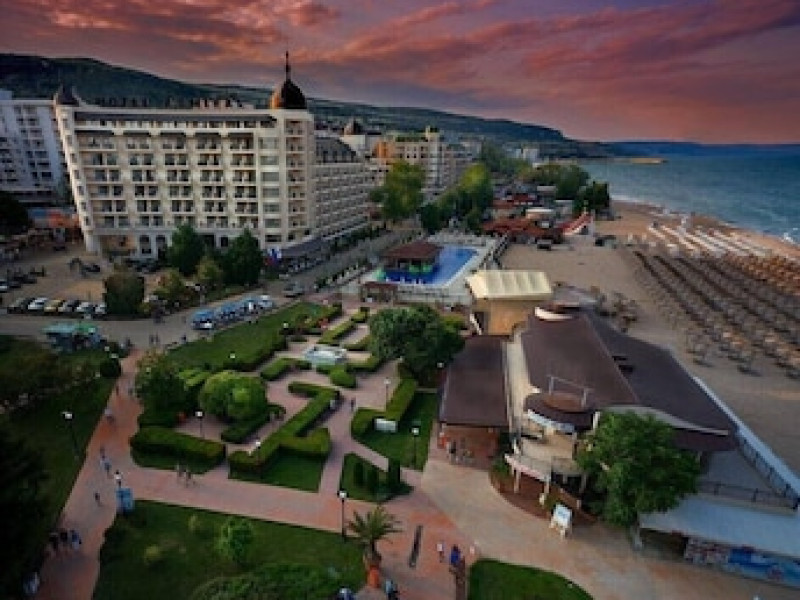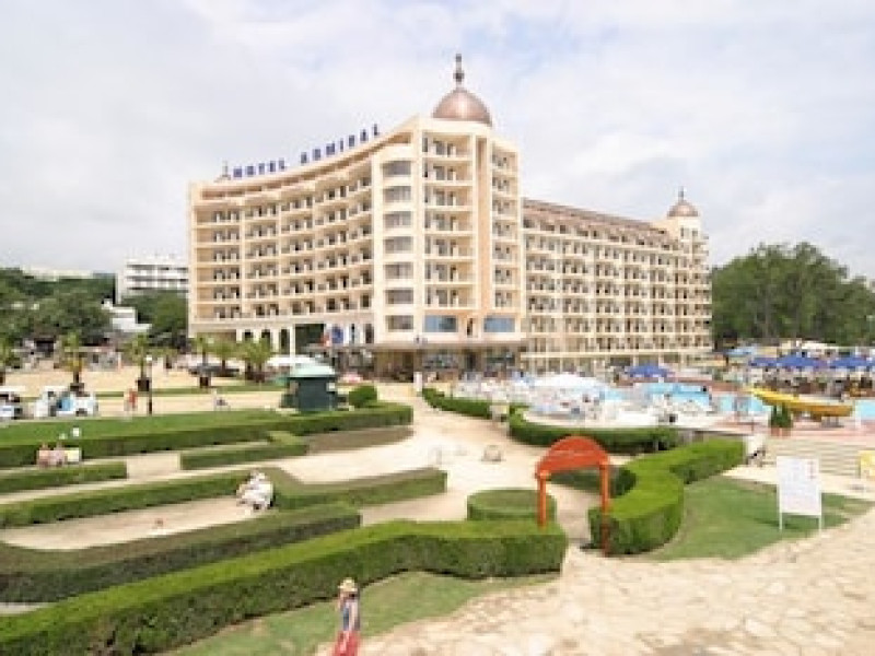 This 301-room hotel on the Black Sea coast is conveniently located in Golden Sands, Bulgaria, close to Varna city center. Public transportation is easily accessible, with bus and railway stations within walking distance. Guests can choose from 284 double rooms, apartments, suites, and superior rooms. All accommodations feature air conditioning, private balconies, cable TV, carpeted floors, and en suite bathrooms. Extra beds are available upon request. Please note, pets are not permitted. The hotel offers several restaurants and cafes and is wheelchair accessible. For business travelers, there's a well-equipped conference center, meeting rooms, and a business center, as well as a banquet hall for events. Guests can enjoy both an indoor heated pool and an outdoor pool, with a dedicated children's area. Hotel Admiral provides secure parking for an additional fee of BGN 25 per day. Advance reservations for parking are not available. The new 'All-inclusive Light' option offers buffet breakfast, lunch, and dinner with unlimited soft drinks, mineral water, juices, draft Bulgarian beer, and draft Bulgarian wines during meals at the Admiral restaurant. Hot drinks such as coffee, tea, and herbal infusions are also included. Meals are served buffet-style or as set menus depending on hotel occupancy. Vegetarian and children's options are available for lunch and dinner, along with ice cream. The package also includes two beach or pool loungers and one umbrella per double room, and access to the gym.