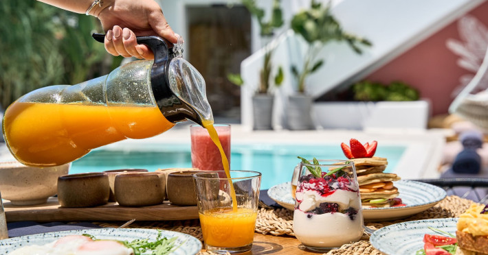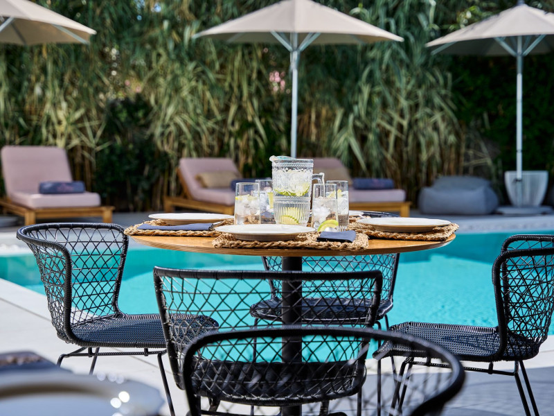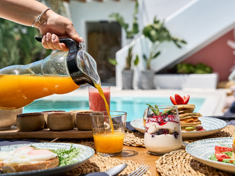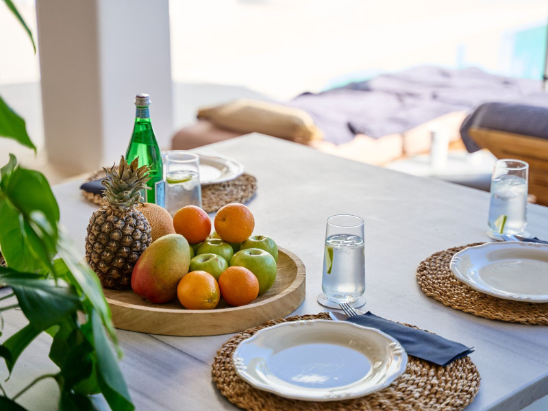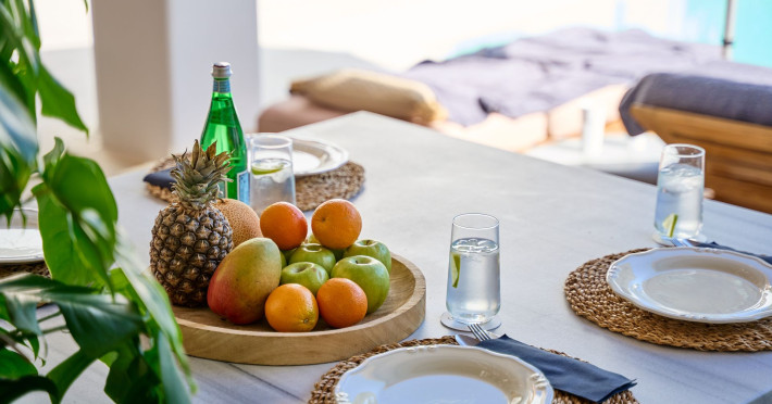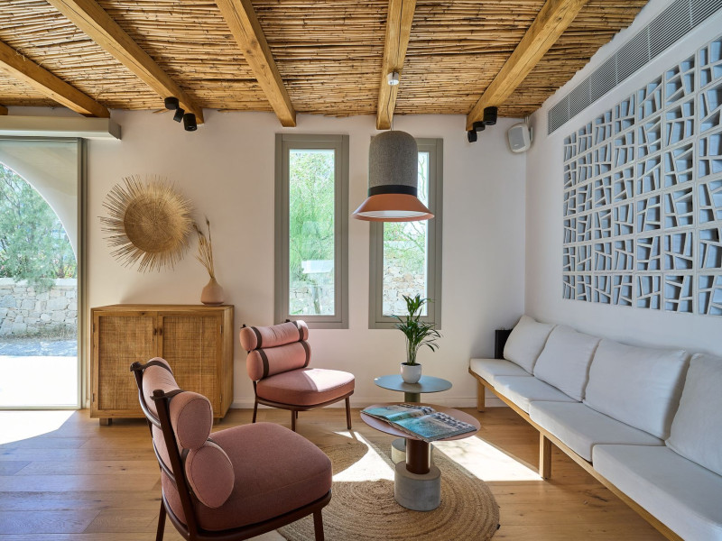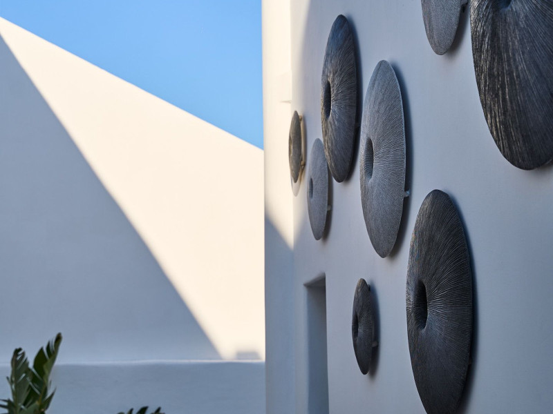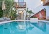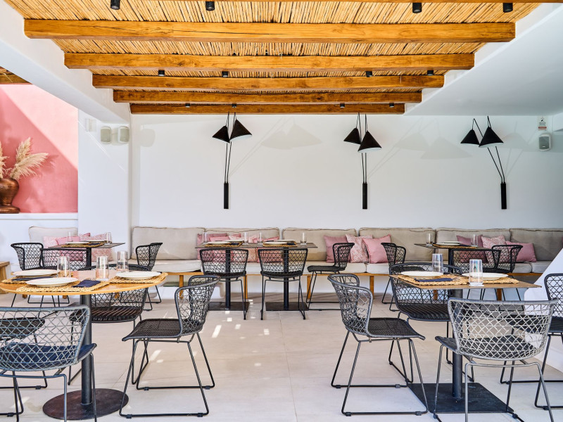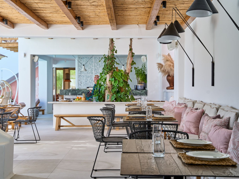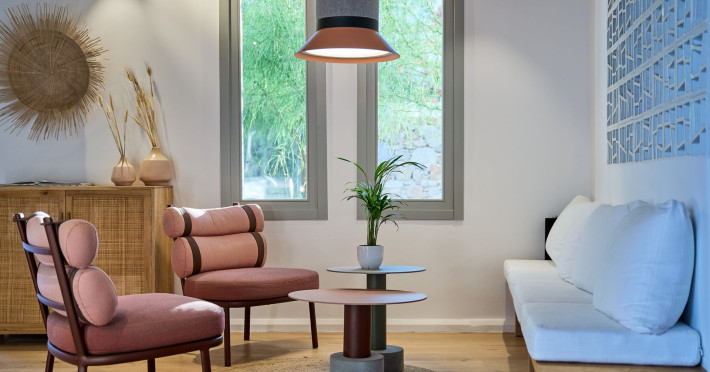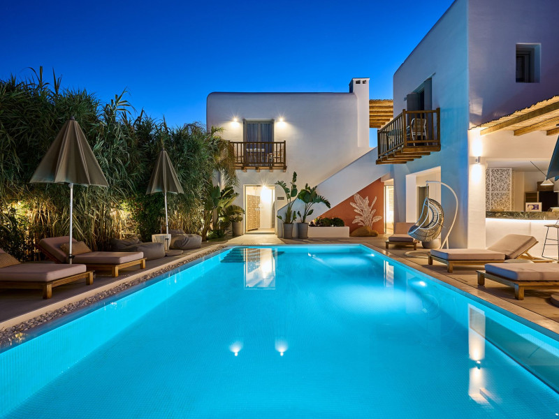 Bohemian chic style met the authentic Mykonian architecture on the famous beach of Ornos, Mykonos, to create a brand-new beachfront Cycladic complex literally located a few steps away from the sea. Adorno Suites is the fresh deluxe accommodation in the area, introducing to its guests 20 meticulously designed rooms, suites and maisonettes, some of which coming with a private pool.Overlooking the Aegean, the property pays respect to the typical architecture of the Cyclades, blending whitewashed walls, elegant wooden pergolas and pastel-colored shutters. In the interiors, classic island style gets infused with contemporary minimalism, while all-white spaces make an excellent backdrop for some ultra chic bohemian decor elements, such as retro lightning, woven rugs and wooden details.Adorno Suites is celebrated for its key sea-front location, its boho-inspired flair and its laid-back summer atmosphere. A few minutes from the vivid Chora of Mykonos, it is the ideal boutique accommodation to enjoy swimming in the beach or private pool, explore the beauties of the island and experience an unforgettable stay that is about ease, relaxation and discreet luxury.