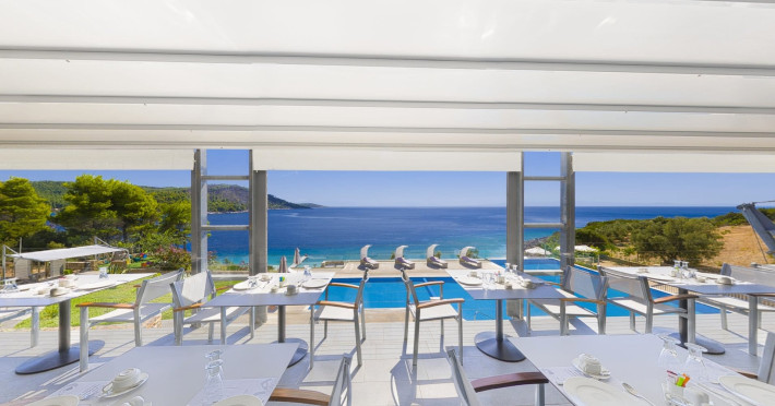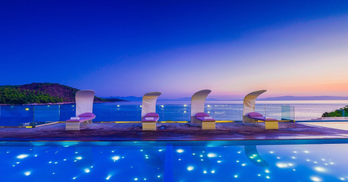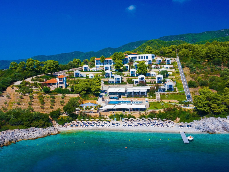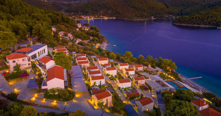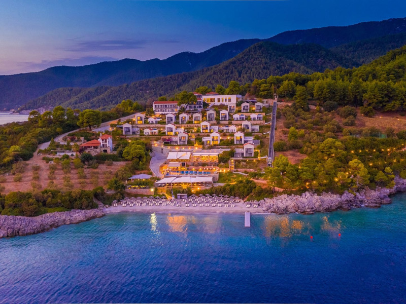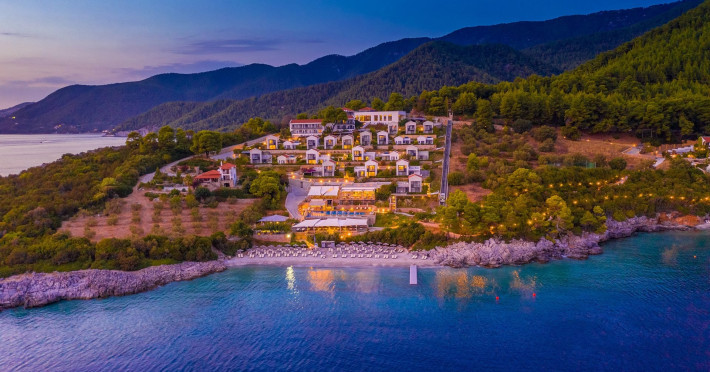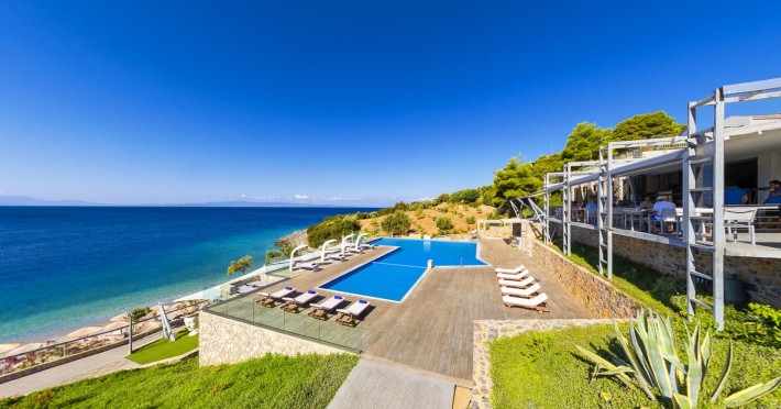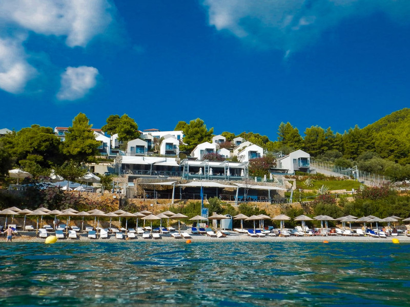 The Adrina Resort & Spa in Skopelos was created with the ambition to become a unique reference point on both local and global level. It is a luxurious hotel complex, expertly designed to attract discerning guests seeking beauty in simplicity so as to offer them a unique experience.The hotel is built on a green slope that leads to the –literally- private beach of Adrina. It is located on the south side of the island, between the ports of Glossa and Skopelos -at a distance of about 13kms from each- and within walking distance from the village of Panormos and the great beaches of Panormos, Milia and Kastani.The accommodation consists of 6 double rooms, 10 triple rooms and 22 villas -all designed to welcome you hospitably.Luxurious Accommodation, relaxation, Rest And tranquility , are what this hotel stands for.