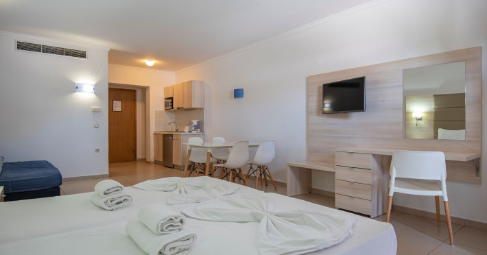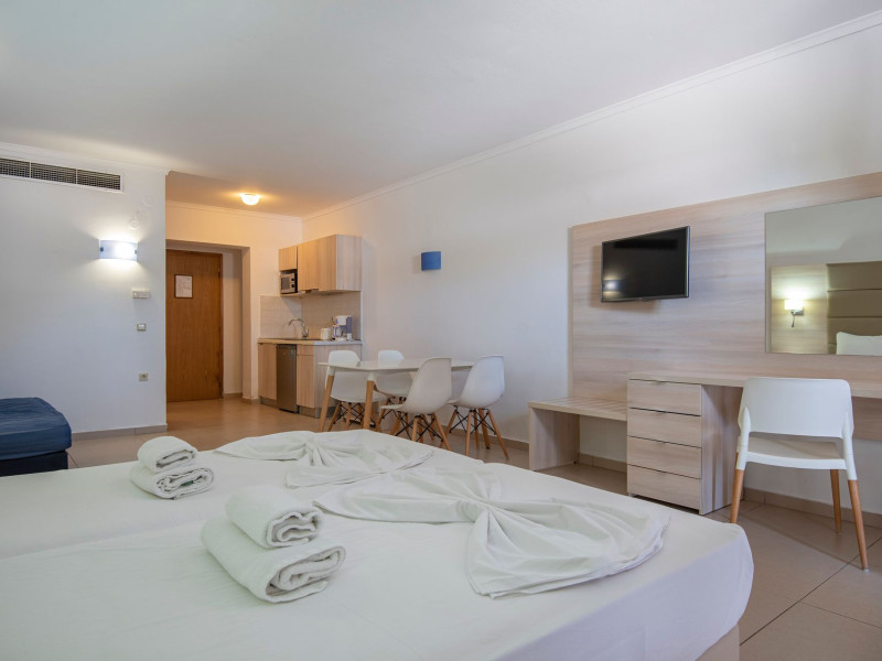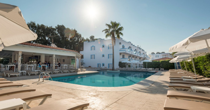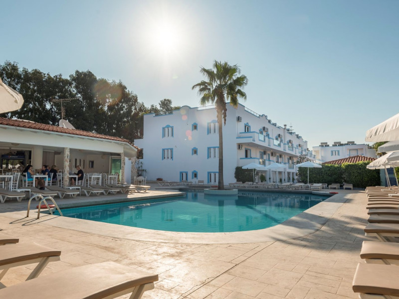 The Aegean Blu hotel maintains a lot of its Dodecanese traditional charm along with golden sandy beaches, a perfect choice whether you are looking for relaxing holidays or for the Greek island essence.Due to its concept, the hotel offers many organized patios with umbrellas & sunbeds by the swimming pool and other facilities.From the Aegean Blu hotel you can easily visit the cosmopolitan Kos Town, as well as the Old Town of Kos with the famous Hippocrates tree, and the Castle of the Knights.In Kos town you will find many coffee - bars, restaurants, traditional shops, and plenty of choices for nightlife.Aegean Blu features a swimming pool with snack bar restaurant where you can enjoy throughout the day delicious snacks, fresh juices, and iced Cocktails.Located on a convenient spot, The Aegean Blu hotel combines the traditionality of a Greek island along with a perfect beach getaway. The hotel is in walking distance from Kos Town, the Church of Christ, and Kos Museum.Kos Town has everything you may need for casual and relaxed holidays, from mini markets and shops to cafe- bars, taverns and restaurants. The Hotel is situated near to the most important monuments. Asklepion of Kos is 4.9 km away and the Ancient Agora is at 3.3 km. A picture-perfect town on the east coast of Kos, Aegean Blue Hotel promises stylish beach days and a range of nighttime activities.