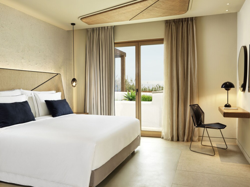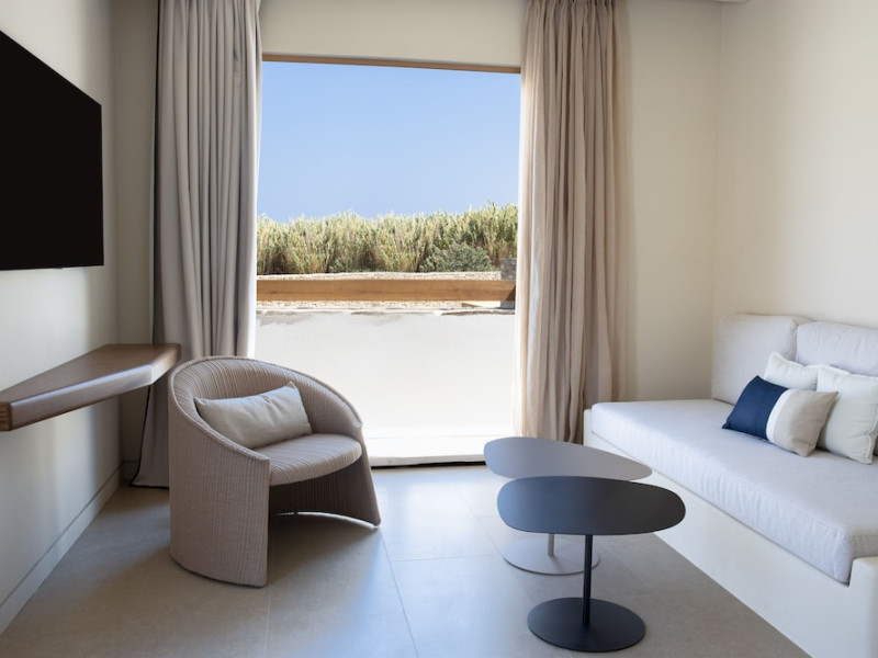 Property Location Located in Mykonos, Aegon Mykonos, Autograph Collection is by the ocean, a 1-minute drive from Kalo Livadi Beach and 7 minutes from Ftelia Beach. This 5-star hotel is 6 mi (9.7 km) from Mykonos Old Port and 6.2 mi (10 km) from Venetian Kastro (Fortress).Attractions Distances are displayed to the nearest 0.1 mile and kilometer. Kalo Livadi Beach - 0.1 km / 0.1 mi Monastery of Panagia Tourliani - 2 km / 1.3 mi Kalafatis Beach - 2.2 km / 1.4 mi Monastery of Paleokastro - 3.2 km / 2 mi Elia Beach - 4.3 km / 2.7 mi Ftelia Archeological Site - 4.6 km / 2.9 mi Ftelia Beach - 4.9 km / 3.1 mi Lia Beach - 5.2 km / 3.3 mi Agrari Beach - 6.8 km / 4.2 mi Super Paradise Beach - 8 km / 4.9 mi Matoyianni Street - 9.5 km / 5.9 mi Mykonos Old Port - 9.7 km / 6 mi Mykonos Town Hall - 9.8 km / 6.1 mi Mykonos Museum of Folklore - 9.8 km / 6.1 mi Fabrica Square - 9.8 km / 6.1 mi The nearest airports are: Mykonos (JMK-Mykonos Island National) - 8.3 km / 5.1 mi Naxos (JNX-Naxos Island National) - 58.3 km / 36.2 mi Ermoupolis (JSY-Syros Island National) - 50.7 km / 31.5 mi The preferred airport for Aegon Mykonos, Autograph Collection is Mykonos (JMK-Mykonos Island National). Amenities Don't miss out on recreational opportunities including an outdoor pool and a 24-hour fitness center. This hotel also features complimentary wireless Internet access, concierge services, and gift shops/newsstands.Business Amenities Featured amenities include a 24-hour business center, express check-in, and express check-out. Planning an event in Mykonos? This hotel has 32 square feet (3 square meters) of space consisting of conference space and a meeting room. A roundtrip airport shuttle is complimentary (available 24 hours).Rooms Make yourself at home in one of the 76 guestrooms featuring MP3 docking stations and minibars (stocked with some free items). Your Tempur-Pedic bed comes with down comforters and premium bedding. Rooms have private balconies or patios. 42-inch flat-screen televisions with cable programming provide entertainment, while complimentary wireless Internet access keeps you connected. Private bathrooms with showers feature rainfall showerheads and designer toiletries.Dining Grab a bite at Aiolea Gastro Restaurant, one of the hotel's 3 restaurants, or stay in and take advantage of the 24-hour room service. Snacks are also available at the 3 coffee shops/cafes. When you are in need of a refreshing drink, visit the beach bar or one of 2 bars/lounges, or 2 poolside bars. A complimentary buffet breakfast is served daily from 7:30 AM to 11:30 AM.