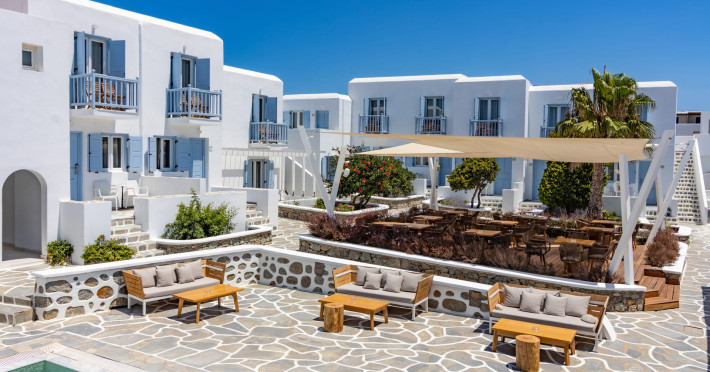 The Aeolos Resort invites you to experience the cosmopolitian lifestyle that personifies Mykonos Island. In our small but luxurious environment, let us overwhelm you with a level of service and hospitiality seldom found in an intimate boutique hotel.Located a mere 800m from Mykonos City Center, the staff at Aeolos Hotel consistently strives to deliver high value for money spent. Through friendly service, attention to detail, elegant accommodations and an abundance of amentities, the Aeolos Hotel satisfies on every level.Whether you choose to sip refreshing cocktails at the poolside, enjoy our relaxing jacuzzi, or use the free wi-fi internet access, Aeolos Hotel offers every possible service to ensure your romantic escapade or family getaway is a truly rejuvenating experience.Our spacious and airy rooms are furnished with modern decor and comfortable touches, balconies overlook the lovely gardens and the relaxing pool and the beds are designed to offer nights of restful sleep. Rooms feature satellite TV, music, telephone, air conditioning, refrigerator, hair dryer and safety deposit boxes.Come for a stay at Aeolos Hotel and you will be a guest for life. Join the chorus of guests who have found that a stay at our hotel redefines a visit to Mykonos.T.B.R.N : 11441012Α0126800