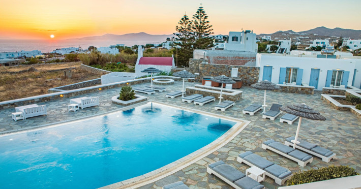 The Aeolos Resort invites you to experience the cosmopolitian lifestyle that personifies Mykonos Island. In our small but luxurious environment, let us overwhelm you with a level of service and hospitiality seldom found in an intimate boutique hotel.