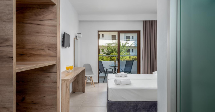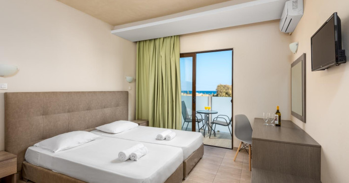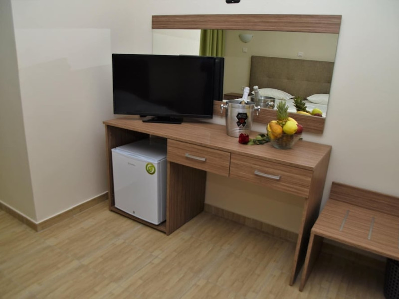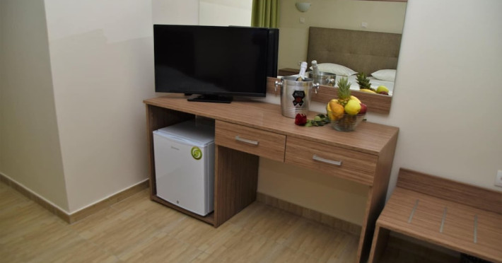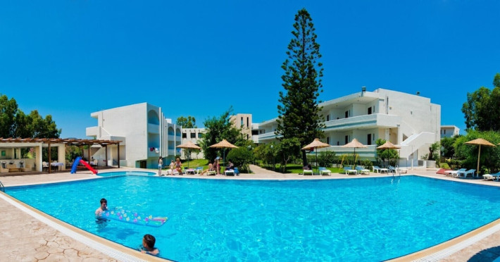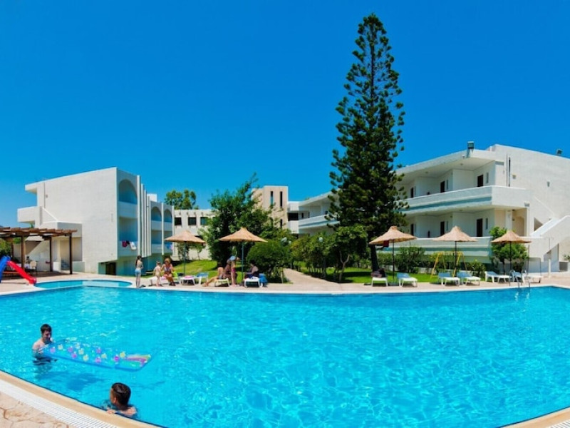 Located near Afandou Beach in Rhodes, Afandou Blu offers all-inclusive accommodation with a seasonal outdoor swimming pool, a garden, a shared lounge, and a terrace. The hotel features air-conditioned rooms with free WiFi, a balcony, a flat-screen TV, and a private bathroom with a bathtub and complimentary toiletries. Guests can enjoy buffet and continental breakfast options, as well as Greek and Mediterranean cuisine at the on-site restaurant. There is also a bar and a poolside bar. Recreational activities include table tennis, snooker, and darts. A children's playground is also available. The hotel offers complimentary wireless internet access, concierge services, luggage storage, a library, and free self-parking. An airport shuttle service is available for a surcharge. The hotel is approximately 24 km from Rhodes International Airport. The Afandou Blu is a hotel.