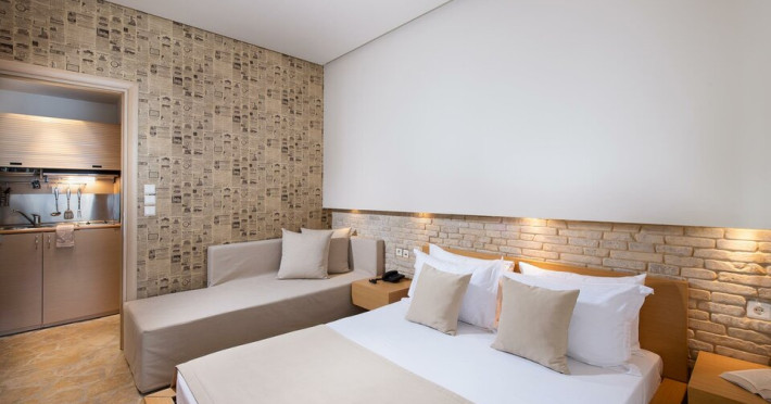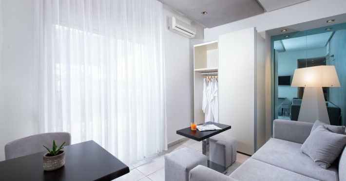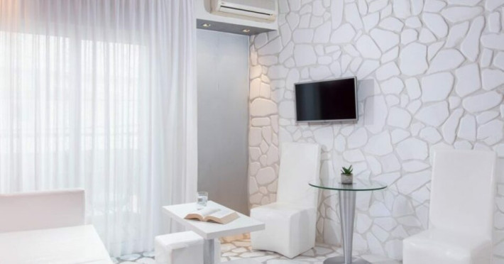 Afrodite Suites is located in the heart of Potos village on Thassos, just steps from one of the islandâs most famous beaches. Modern suites with fresh, earthy décor and vibrant touches offer a relaxing stay filled with lasting memories.The 10 suites are designed with the modern traveler in mind, offering comfort and style for a truly relaxing stay. Guests can unwind at the bar with light snacks and signature cocktails, enjoy a rich breakfast served each morning in their suite, and rely on attentive staff ready to meet every need. Thassos, the island of the Sirens, offers you as many options as there are colours in the blues of its sea and sky, the greens of its trees and the golden hues of its sandy beaches. Closest airport is at Kavala, 76km, while the one in Thessaloniki is 4 hours drive away.