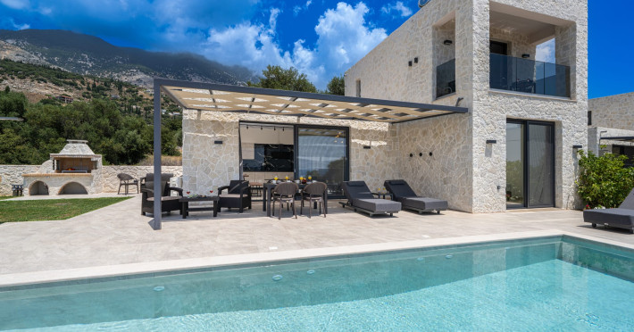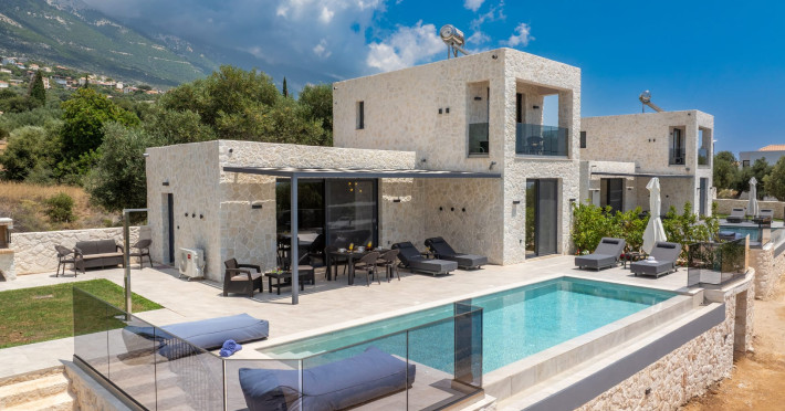 Tucked away in the peaceful village of Mousata, on the southern coast of Kefalonia, Aggelatos Stone Villas is a newly built (2025) complex of three luxurious stone villas, exclusively managed by Ionian Reserve. Ideally located just a short drive from some of the island’s most famous beaches—Lourdas Beach, Trapezaki Beach, and Agios Thomas Beach—this boutique villa complex offers an exceptional holiday experience that combines elegance, privacy, and authentic island charm.