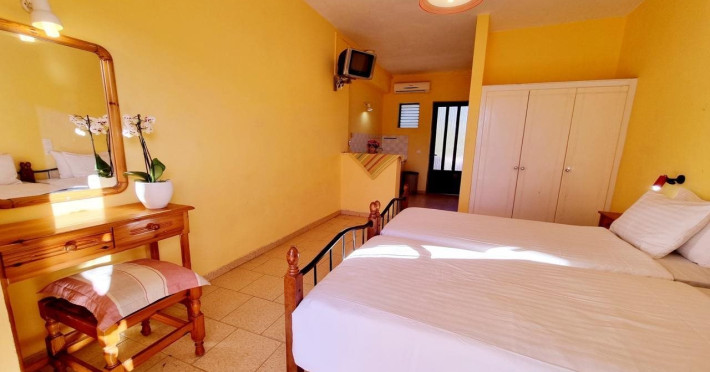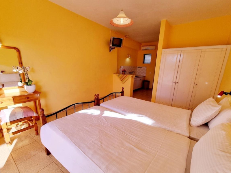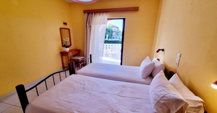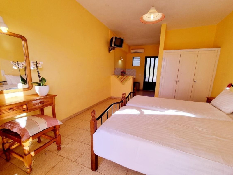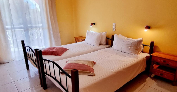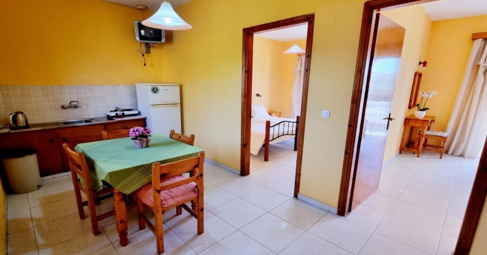This small and casual apartment complex features one and two bedroom apartments equipped with a self-catering kitchenette corner, a dining area and a furnished balcony or terrace. All accommodation units provide as standard the following: individual air-conditioning/heating (extra charge), Wi-Fi (free), safety deposit box (extra charge), TV, kitchenette (mini fridge, 2 hot plates, electric kettle, basic kitchenware), dining table & chairs, shower/WC, balcony/terrace, maid service (2 times per week), towel change (1 time per week) and linen change (1 time per week)Please note that the operation of certain services & facilities is subject to COVID-19 protocols & weather conditions.Address: Laganas; Zakynthos, 29092 Greece.