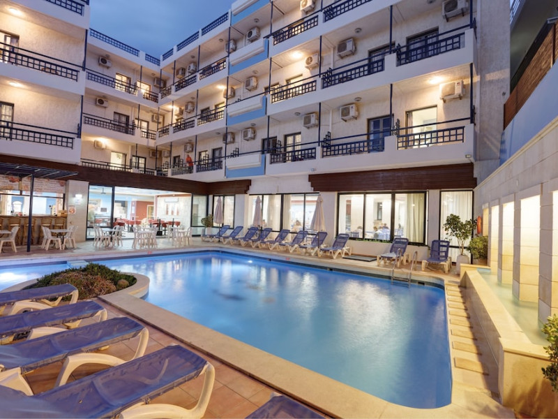 Set just a short walk from the beach in Hersonissos, Crete, this hotel is the ideal holiday destination. Families can enjoy a visit to the small local aquarium and Lychnostatis Open Air Museum, and golfers will appreciate proximity to the golf course at only a 15-minute drive away. Alternatively, guests may wish to take an excursion to one of many picturesque villages or visit some of the astounding archaeological sites nearby. Guest rooms are simply furnished with private en suite bathroom and balcony, and the buffet-style hotel restaurant is a convenient place to take any meal of the day, especially for those who wish to spend their holiday lounging on the beach or by the sparkling outdoor pool. The hotel also offers 24-hour reception with multilingual staff, and billiards, table tennis and free Wi-Fi access. The perfect place to enjoy a holiday of sea and sun in Crete. Set just a short walk from the beach in Hersonissos, Crete, this hotel is the ideal holiday destination. Families can enjoy a visit to the small local aquarium and Lychnostatis Open Air Museum, and golfers will appreciate proximity to the golf course at only a 15-minute drive away. Alternatively, guests may wish to take an excursion to one of many picturesque villages or visit some of the astounding archaeological sites nearby. Guest rooms are simply furnished with private en suite bathroom and balcony, and the buffet-style hotel restaurant is a convenient place to take any meal of the day, especially for those who wish to spend their holiday lounging on the beach or by the sparkling outdoor pool. The hotel also offers 24-hour reception with multilingual staff, and billiards, table tennis and free Wi-Fi access. The perfect place to enjoy a holiday of sea and sun in Crete. Check In: 15:00:00