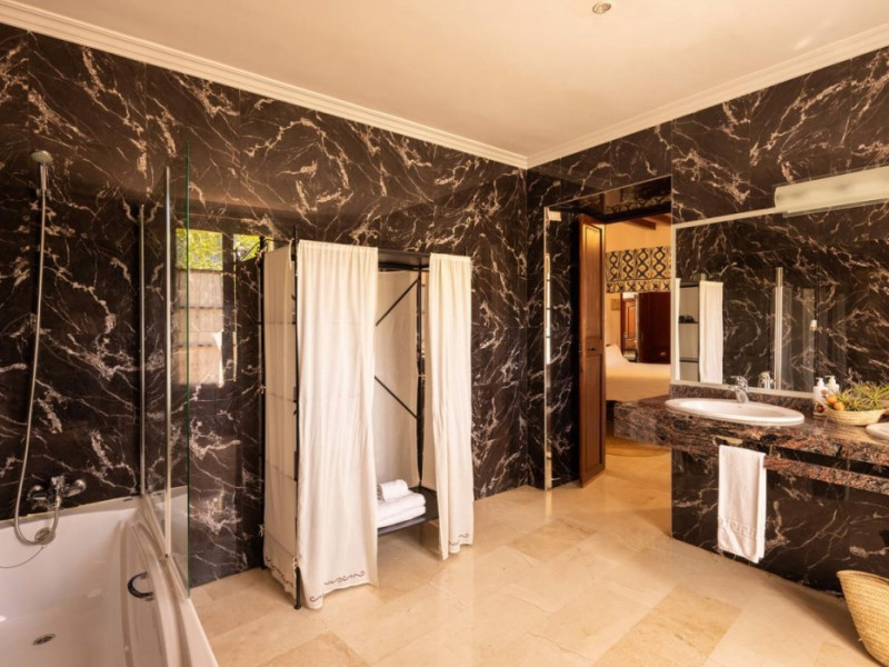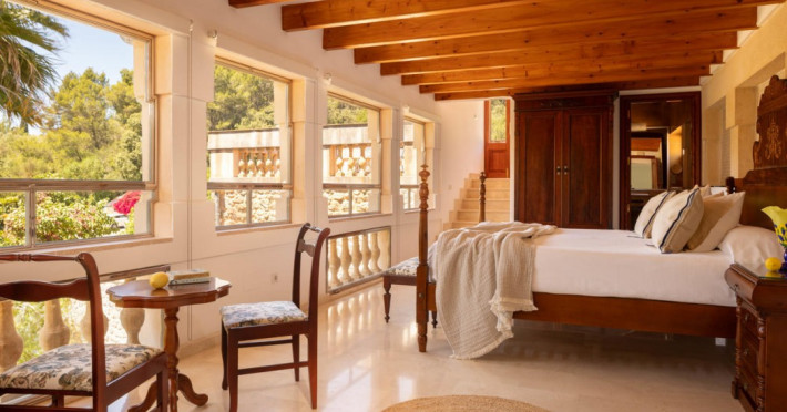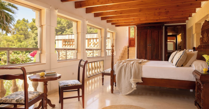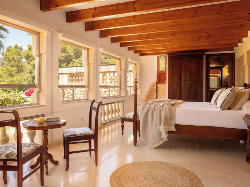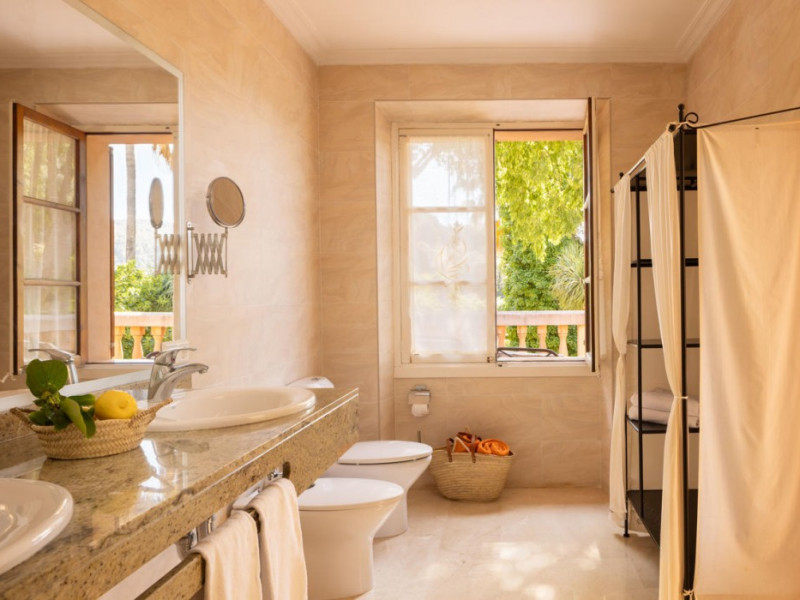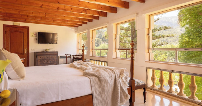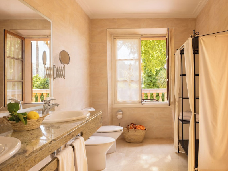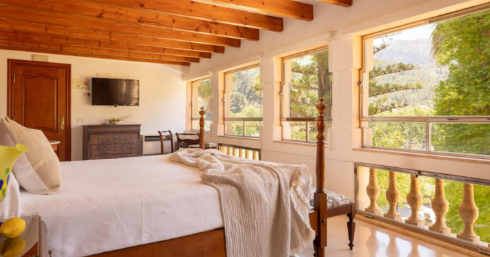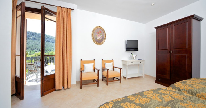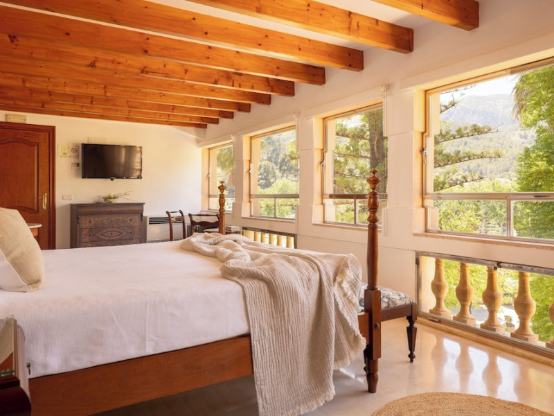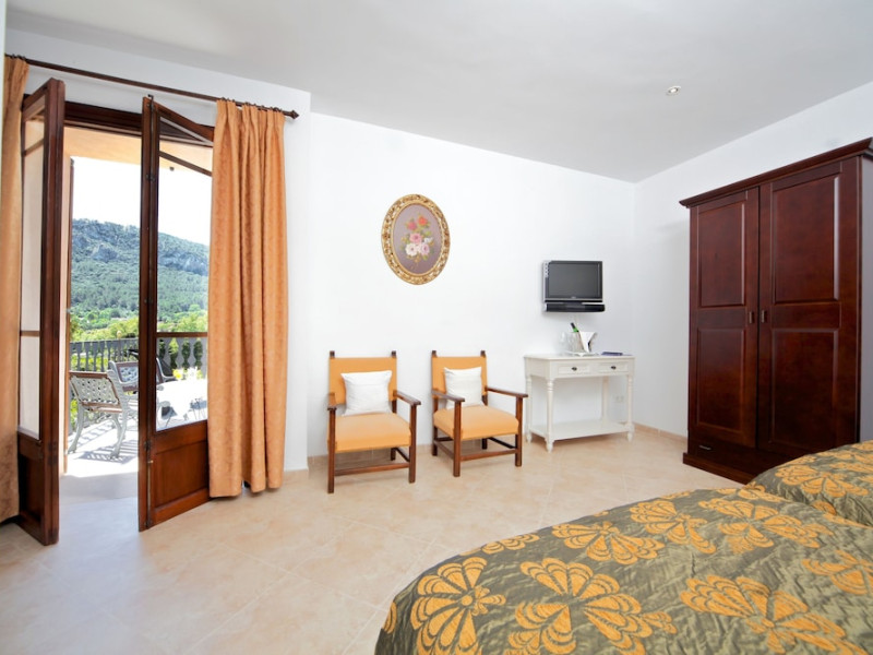 Located in the Serra de Tramuntana mountains in Esporles, a 10-minute drive from Palma de Mallorca, Agroturismo Son Galcerán is a renovated 18th-century Majorcan country house. It offers 12 air-conditioned rooms, each with a private balcony or patio, satellite TV, complimentary wireless internet access, a minibar, and a private bathroom with a bathtub or shower, complimentary toiletries, and a bidet. Guests can enjoy an outdoor swimming pool, gardens, and bicycle rentals. The property features a bar/lounge, poolside bar, concierge services, luggage storage, dry cleaning/laundry services, and free self-parking. Breakfast is available daily. Son Sant Joan Airport is approximately 24 km away. The Agroturismo Son Galceran - Adults Only is a hotel.