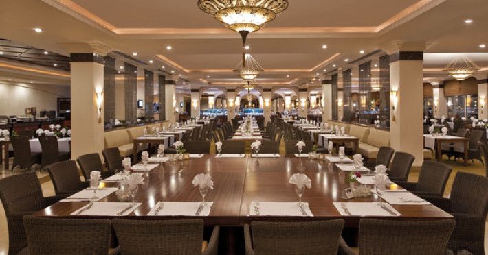 Restaurant principal, meniu dietetic, meniu vegetarian, 4 restaurante A la Carte, 2 piscine exterioare si o piscina interioara, 3 tobogane, centru SPA, baie turceasca, sauna, baie cu aburi, jacuzzi, aerobic, volei pe plaja, baschet, mini fotbal, tenis de masa, darts, bocce, sporturi nautice fara motor, windsurfing, cursuri de tenis, sporturi nautice cu motor, cursuri diving. Plaja proprie cu nisip/pietris. Pentru copii: piscina( cu mini tobogane), loc de joaca, mini club, junior club.