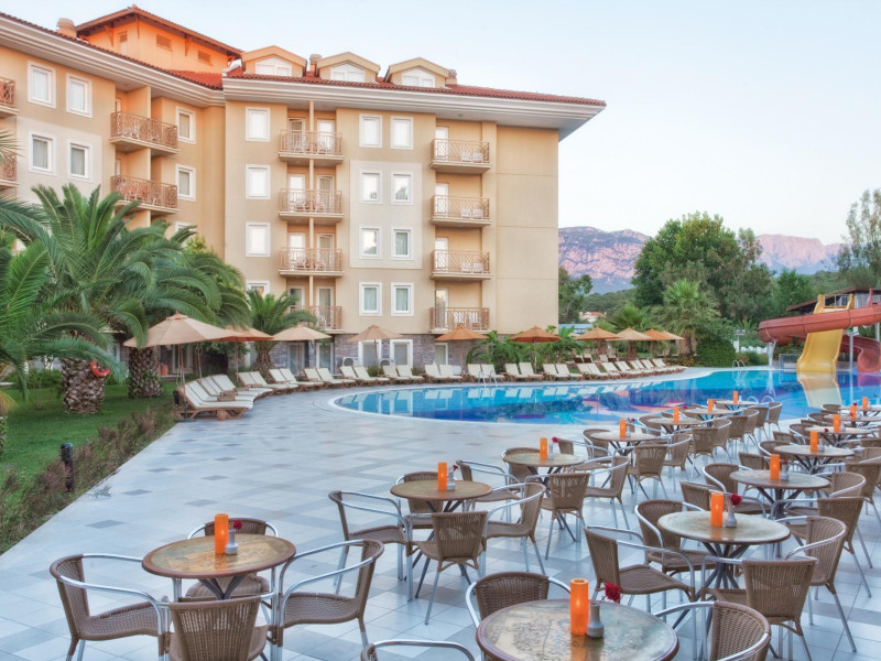 Located just a short walk from the beach, this hotel is near the seaside resort of Kemer. It offers an outdoor pool, Turkish bath and a sauna. Offering comfortable accommodation for the entire family, Akka Claros Hotel features water slides and animation for children and a spa centre for grown-ups. You can start the day with a swim in Akka Claros large outdoor pool. After sunbathing on 1 of the loungers surrounding the pool, you can pick your children up at the mini-club and play a round of table tennis. There is also an amphitheatre. The restaurant of Akka Claros Hotel serves hearty meals throughout the day. The main restaurant serves local and international dishes on the terrace. You can also treat yourself with drinks from the bar. Each room is equipped with air conditioning, TV and a minibar. If you wish, you can relax on the balcony of your comfortably furnished guest room.