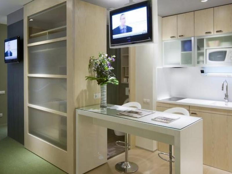 28 apartments are located on 7 storeys and can be reached by lift. The friendly staff at the reception desk are happy to answer any questions. Amenities include a baggage storage service and a safe. Wireless internet access allows guests to stay connected while on holiday. The tour desk offers assistance with booking excursions. The apartment hotel has a range of facilities for guests with disabilities. The hotel has wheelchair-accessible facilities. Additional facilities include a TV room. Guests arriving by car can park their vehicles in the garage or in the car park (for a fee). Further services and facilities include a car hire service, medical assistance, a transfer service, room service, an alarm call service, a laundry service and a coin-operated laundry. A fax machine is available for guests business needs.