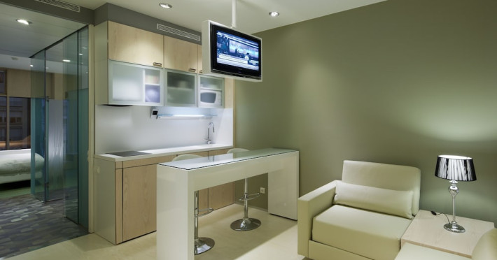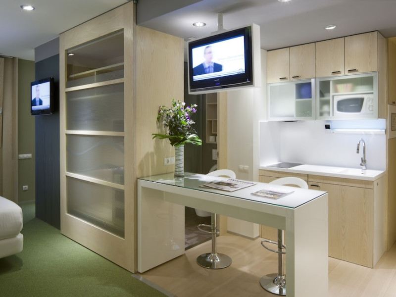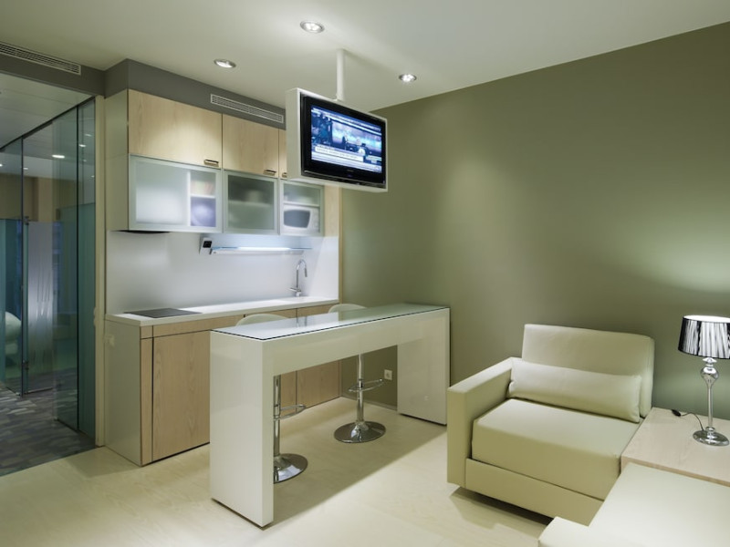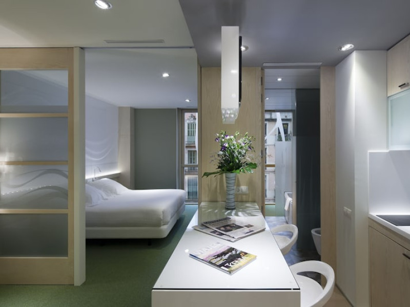 Located in the heart of Barcelona, near the University of Barcelona and a 10-minute walk from Plaza Catalunya Square, this apartment hotel offers air-conditioned apartments with complimentary Wi-Fi and kitchenettes featuring a refrigerator and stovetop. Each apartment has a sleek, minimalist design with light-colored decor, a flat-screen TV with satellite programming, a desk, and a safe. The bathrooms include a bath or shower, towels, and amenities. The Universitat Metro Station is 300 meters away, and the airport bus stop is a 5-minute walk. The hotel features a 24-hour front desk, luggage storage, dry cleaning/laundry services, a terrace, and a seasonal outdoor pool. Continental breakfast is available daily for a fee. On-site parking is available. The Ako Suite Hotel is a hotel. Located in Barcelona area.