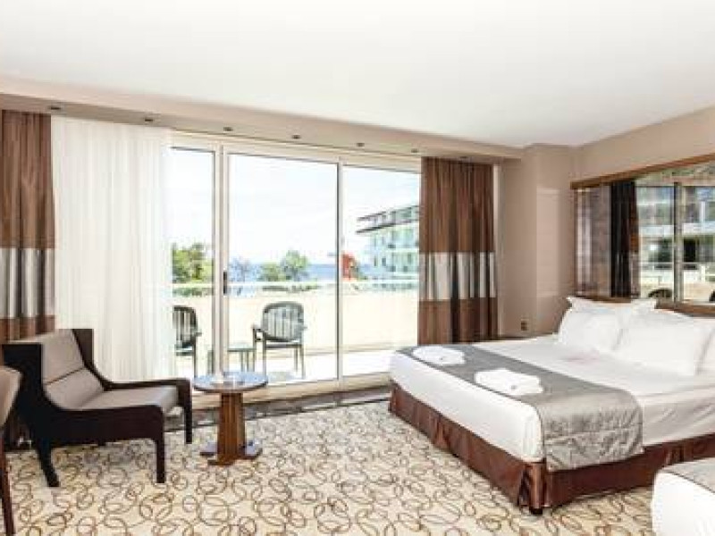 Camerele sunt dotate cu: balcon cu vedere spre mare sau spre Muntii Taurus, TV satelit, aer conditionat.