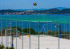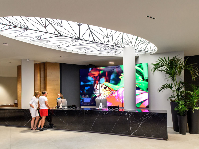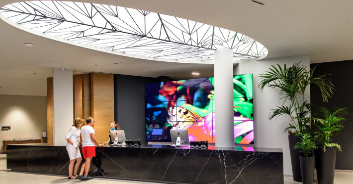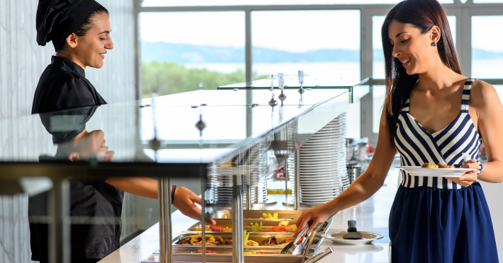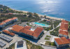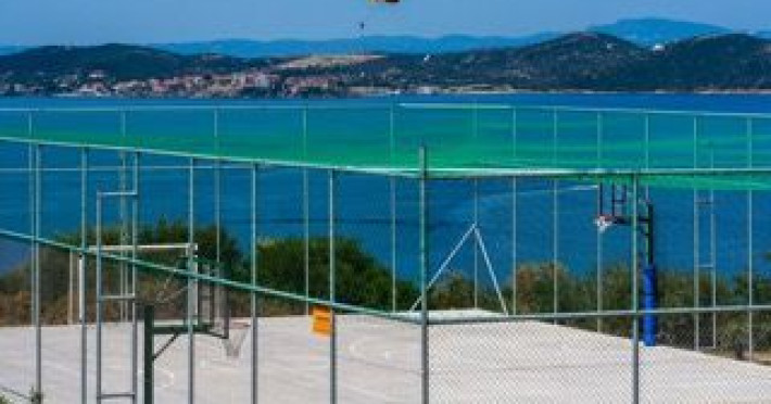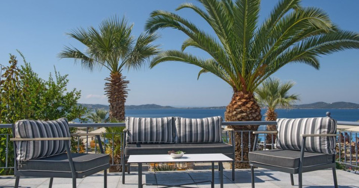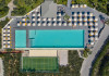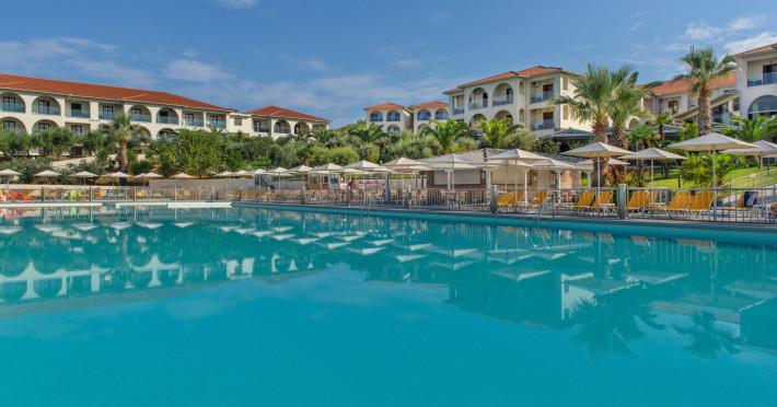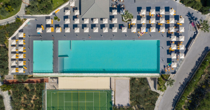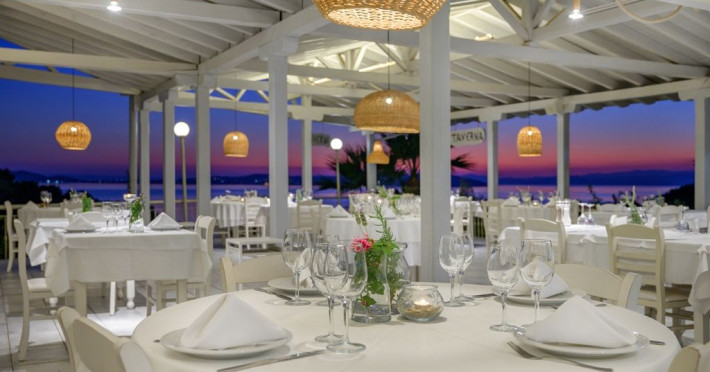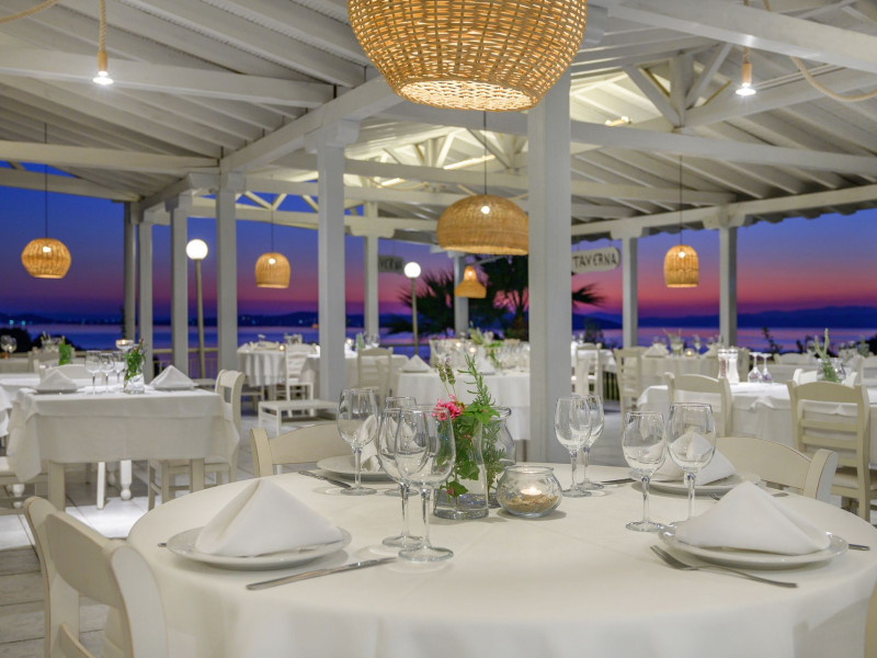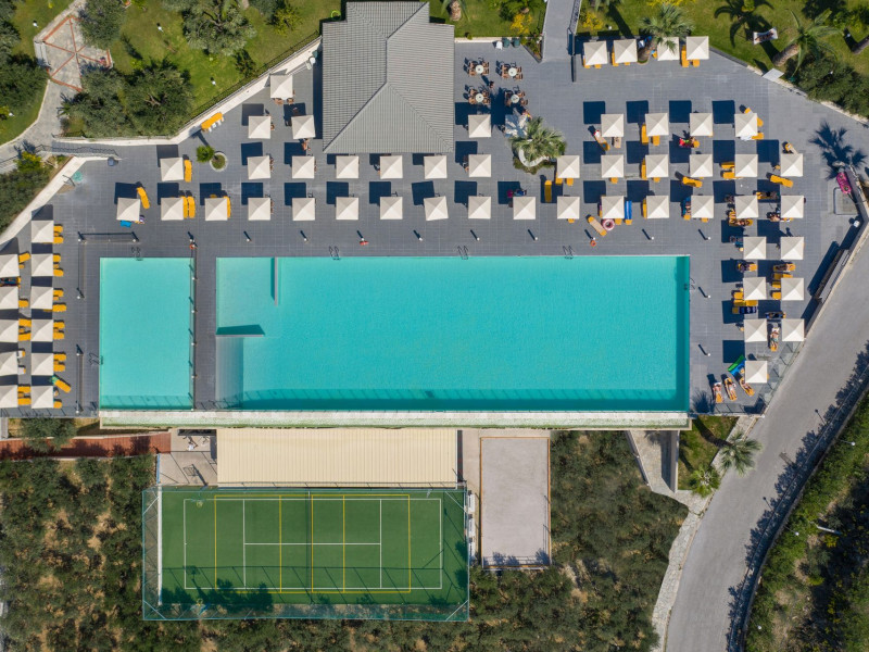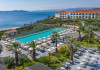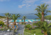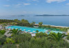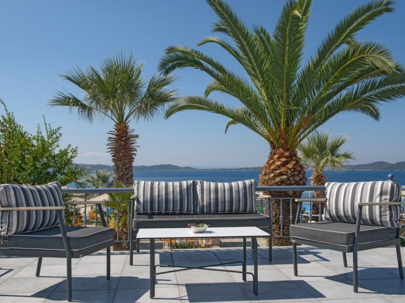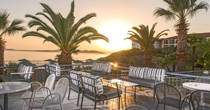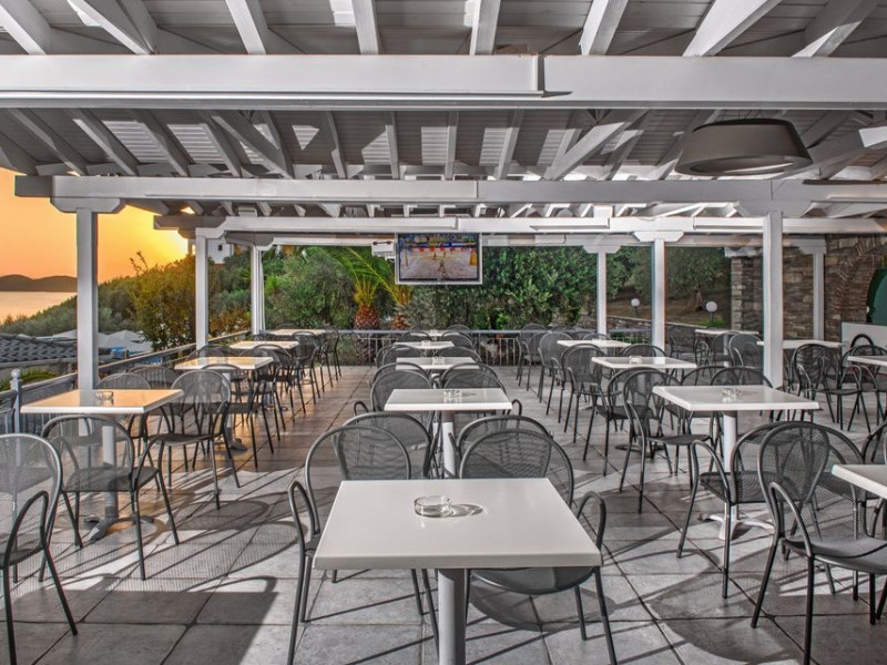 Akrathos Beach Hotel Welcome to your summer dream⦠Located on the green hills of the Athos Peninsula, 2 km. away from Ouranoupolis village and 115 km. away from the airport of Thessaloniki âMacedoniaâ, Akrathos Beach 4 Star Hotel offers contemporary and stylish accommodation to the guests. All of our 266 rooms and suites are tastefully designed in modern and minimalist style. Spacious and comfortable, all rooms are equipped with independent air-conditioning / heating control, Double or Twin beds, safety deposit boxes, flat screen satellite TV, hairdryers, mini fridges at rooms, furnished balconies and tea/ coffee facilities.