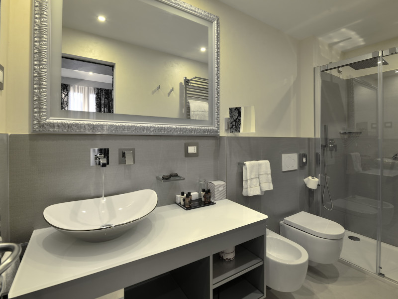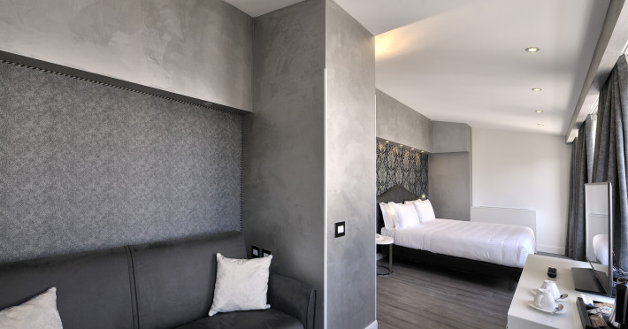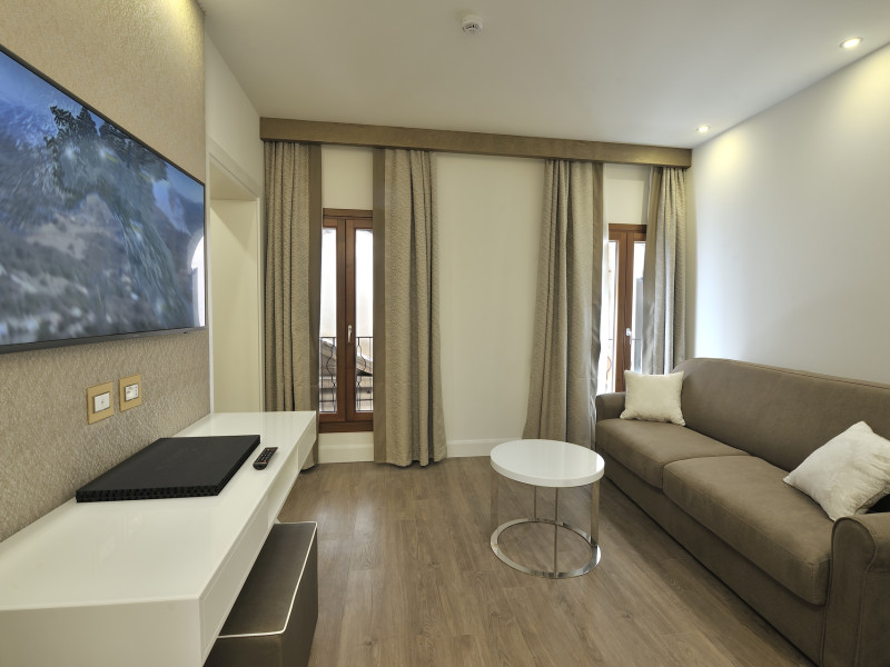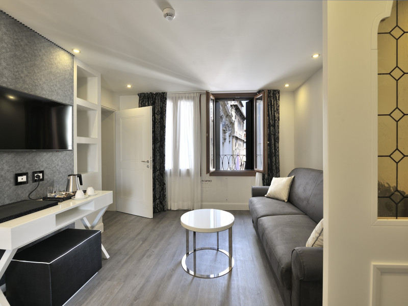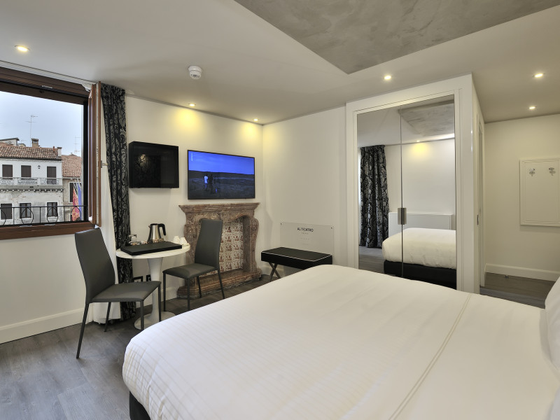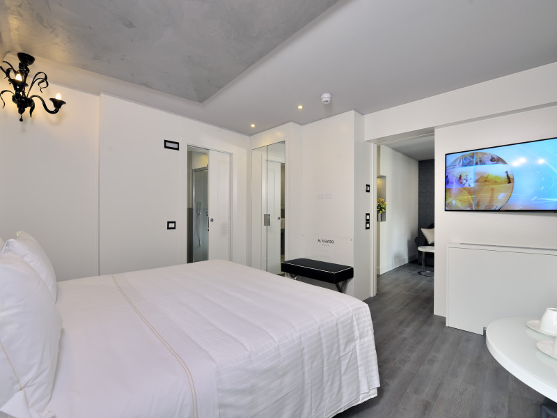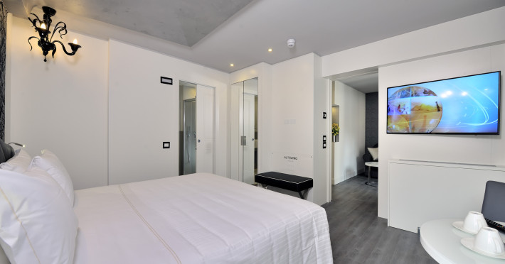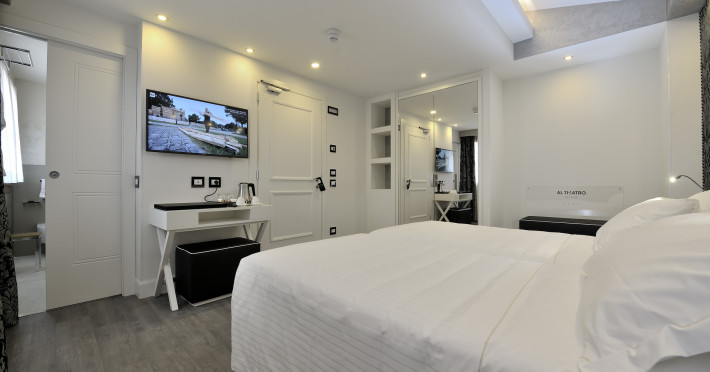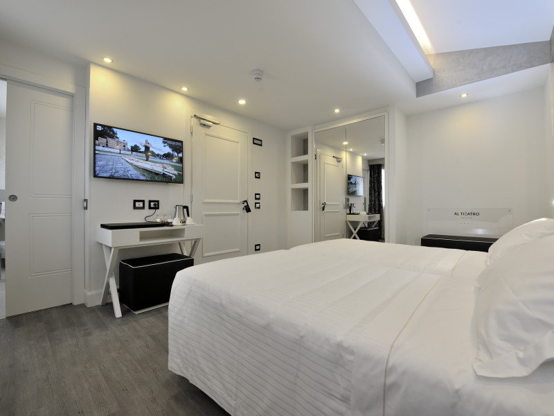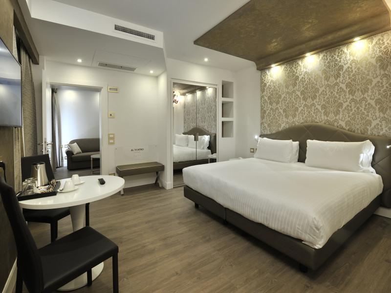 The 4 star hotel Al Theatro Palace is located approximately 1 km from a beach. The city centre is only around 200 m away. Nearby there is a theatre and a cinema which offer entertainment in high season. The hotel is equipped with a 24h reception (cheThe 4 star hotel Al Theatro Palace is located approximately 1 km from a beach. The city centre is only around 200 m away. Nearby there is a theatre and a cinema which offer entertainment in high season. The hotel is equipped with a 24h reception (check-in is possible around the clock), Wi-Fi, a lift, a first aid kit as well as a TV lounge with satellite TV. Furthermore, you can relax outdoors on the terrace. For very young guests, cots can be provided (for a fee). Kids chairs are available. You can store your luggage in the hotels storage room. For your comfort there is a concierge service. Guests at the accommodation can get a wake-up call from the hotel personnel. The energy supply is 220 Volts. In your hotel, a lot of focus is placed on sustainability. This includes among others the provision of soap and shampoo dispensers. American Express and Visa are accepted as means of payment. Due to its barrier-free facilities , such as a hotel door that can be opened manually and barrier-free entrances, the hotel is also suitable for wheelchair users. Catering As catering services the hotel offers breakfast only. Breakfast is offered from the buffet. Your physical well-being is catered for by a buffet restaurant. Distances Airport: approximately at 10 km Taxi rank: approximately at 70 m Port: approximately at 2 km Train station: approximately at 1,5 km Pharmacy: approximately at 50 m Hospital: approximately at 800 m Golf course: approximately at 2 km Nearest bank: approximately at 500 m Tourist information: approximately at 200 m Additional information 2 rooms have disabled access. This hotel is gay-friendly. The hotel staff speak English, German, French, Italian and Spanish.