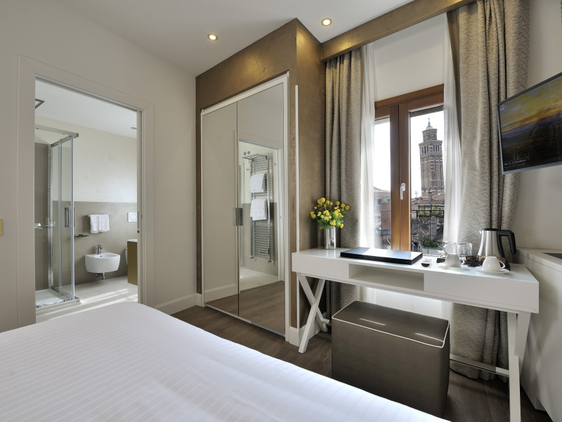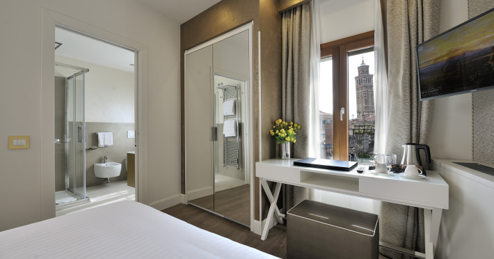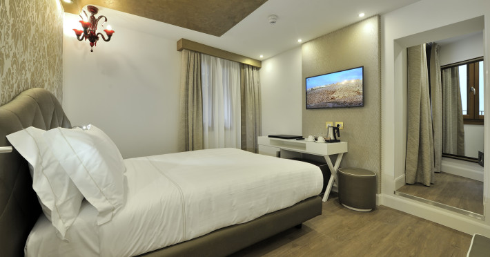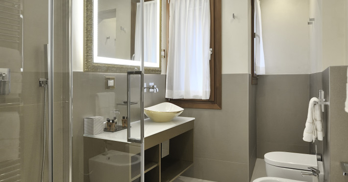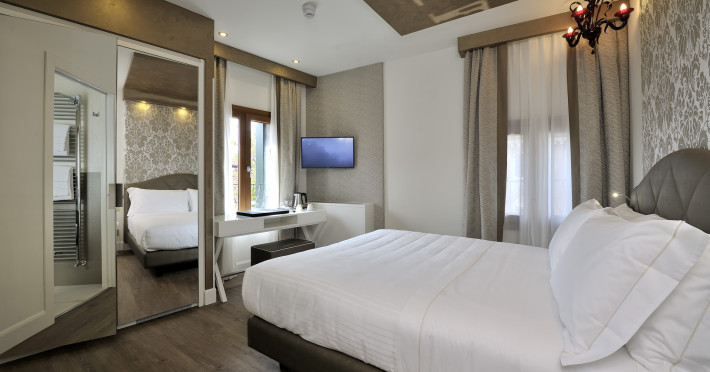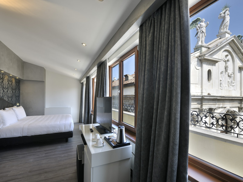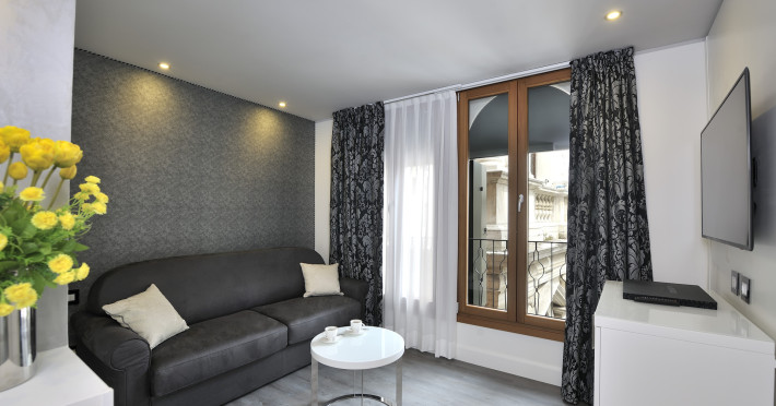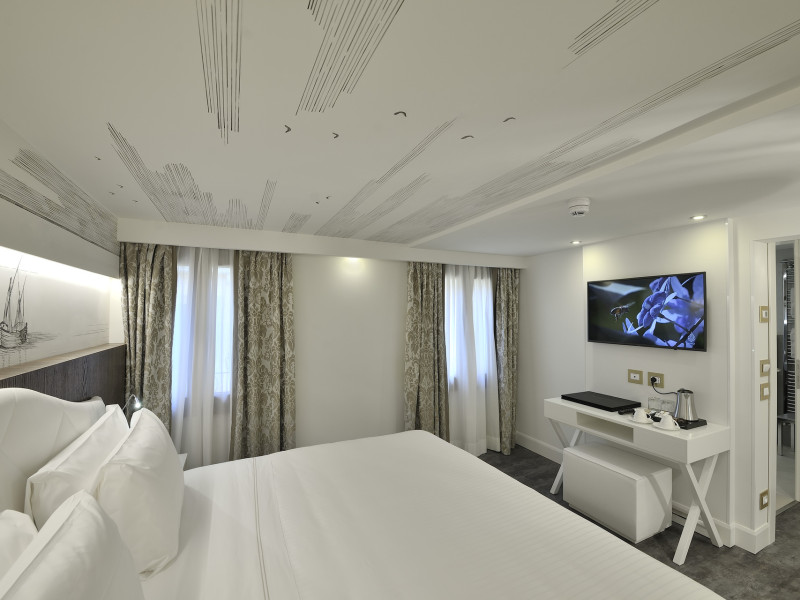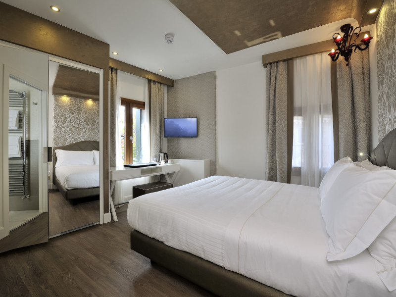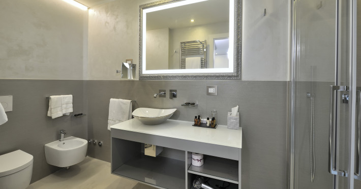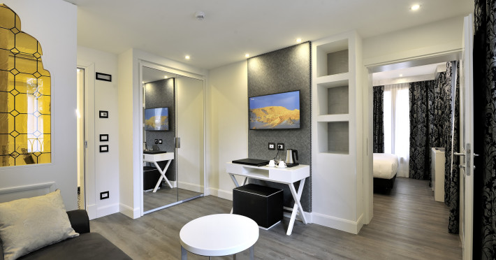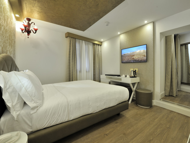 The 4 star hotel Al Theatro Palace is located approximately 1 km from a beach. The city centre is only around 200 m away. Nearby there is a theatre and a cinema which offer entertainment in high season. The hotel is equipped with a 24h reception (cheThe 4 star hotel Al Theatro Palace is located approximately 1 km from a beach. The city centre is only around 200 m away. Nearby there is a theatre and a cinema which offer entertainment in high season. The hotel is equipped with a 24h reception (check-in is possible around the clock), Wi-Fi, a lift, a first aid kit as well as a TV lounge with satellite TV. Furthermore, you can relax outdoors on the terrace. For very young guests, cots can be provided (for a fee). Kids chairs are available. You can store your luggage in the hotels storage room. For your comfort there is a concierge service. Guests at the accommodation can get a wake-up call from the hotel personnel. The energy supply is 220 Volts. In your hotel, a lot of focus is placed on sustainability. This includes among others the provision of soap and shampoo dispensers. American Express and Visa are accepted as means of payment. Due to its barrier-free facilities , such as a hotel door that can be opened manually and barrier-free entrances, the hotel is also suitable for wheelchair users. Catering As catering services the hotel offers breakfast only. Breakfast is offered from the buffet. Your physical well-being is catered for by a buffet restaurant. Distances Airport: approximately at 10 km Taxi rank: approximately at 70 m Port: approximately at 2 km Train station: approximately at 1,5 km Pharmacy: approximately at 50 m Hospital: approximately at 800 m Golf course: approximately at 2 km Nearest bank: approximately at 500 m Tourist information: approximately at 200 m Additional information 2 rooms have disabled access. This hotel is gay-friendly. The hotel staff speak English, German, French, Italian and Spanish.