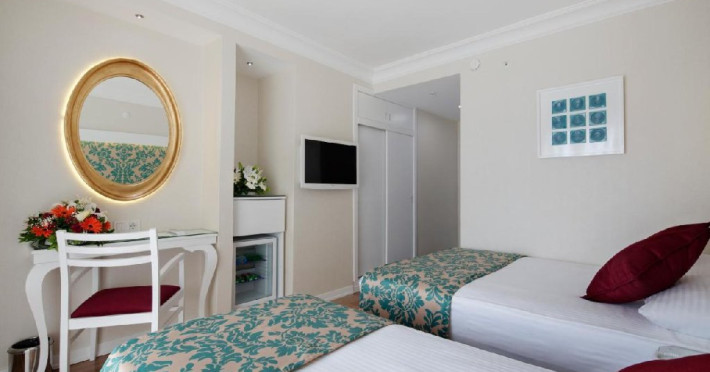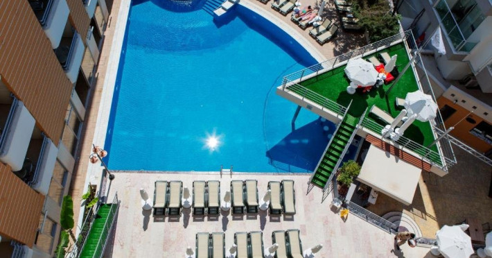 Localizare: Alaiye Kleopatra Hotel Apart este situat la 100 m de frumoasa plaja Kleopatra si la numai 300 m de centrul orasului Alanya. Facilitati hotel: Room Service, Restaurant, Acces pentru persoane cu handicap, Bar / Salon, Aer conditionat, Mini Bar, Televiziune prin cablu / satelit, uscator de par, Televizor, Camere de hotel accesibile in scaun cu rotile, Prosoape, Scaune inalte, Bar la piscina. Camera / fitness, Piscina, Masaj / Centru de cosmetica, asistenta medicala disponibila, sauna, plaja privata, activitati acvatice, biliard, darts, teren de joaca, sala de fitness, masaj, baie de aburi, salon de infrumusetare, piscina pentru copii, piscina acoperita , piscina descoperita, Jocuri. Unele facilitati sunt contacost. Facilitati camere: TV prin satelit, linie telefonica directa, frigider, aer conditionat, baie cu dus/cada, , uscator de par , casa de valori (cu plata), balcon Pagina web: www.alaiyekleopatrahotel.com