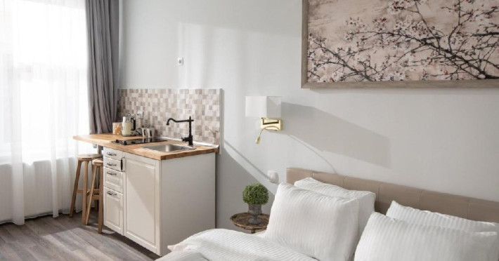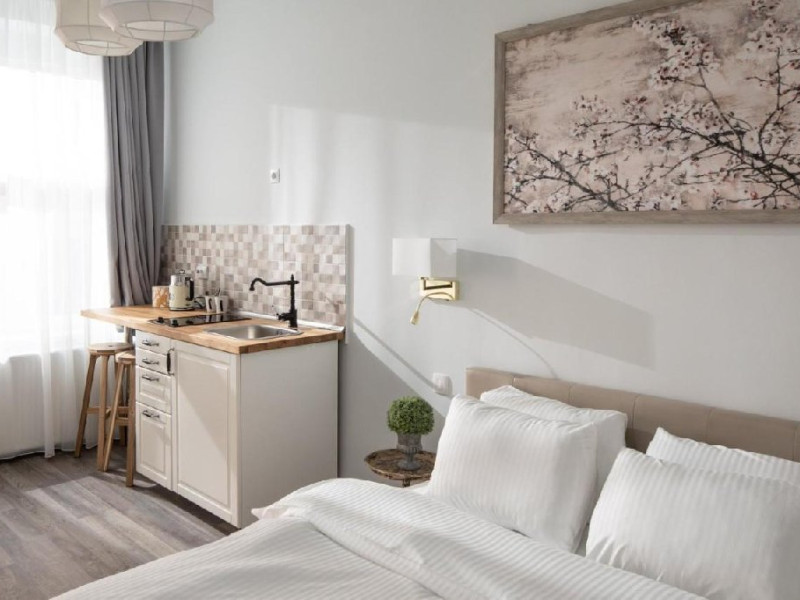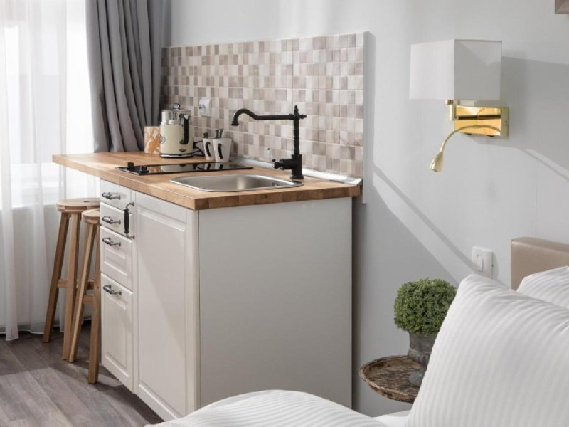 Fiecare unitate include o bucatarie complet utilata, cu masa, un televizor cu ecran plat cu canale prin satelit si o baie proprie cu dus, articole de toaleta gratuite si un uscator de par. Oaspetii au la dispozitie de asemenea un frigider, un minibar si plita, precum si o cafetiera si un ibric electric.
