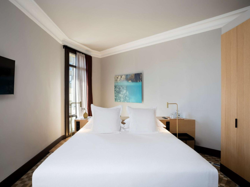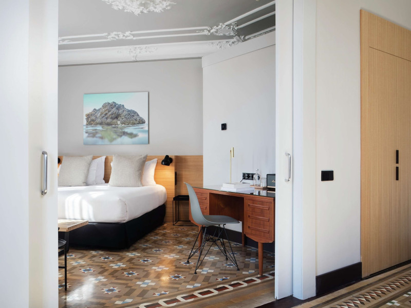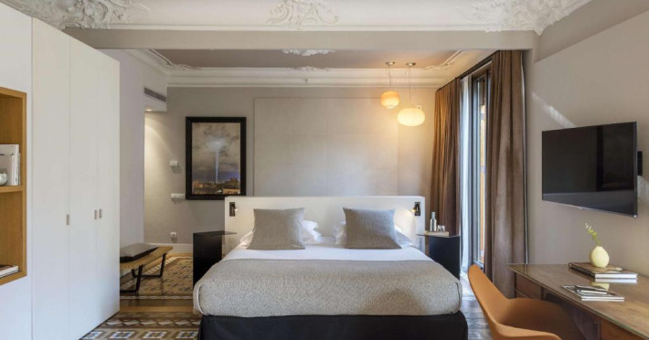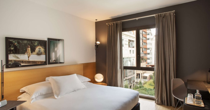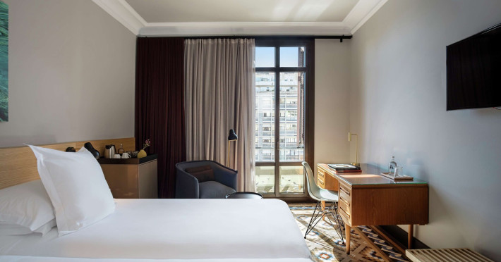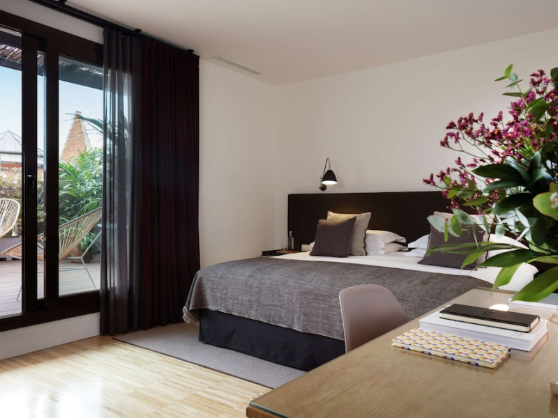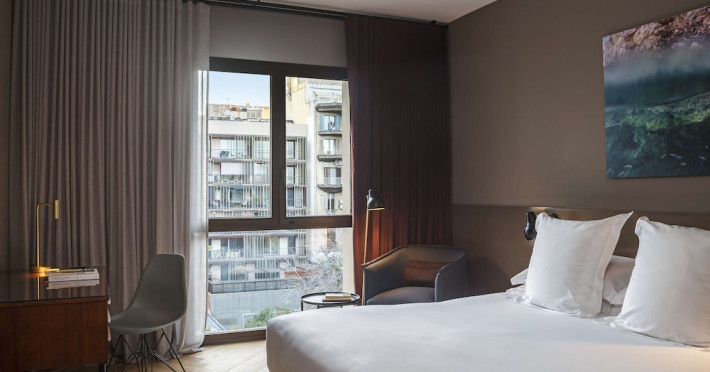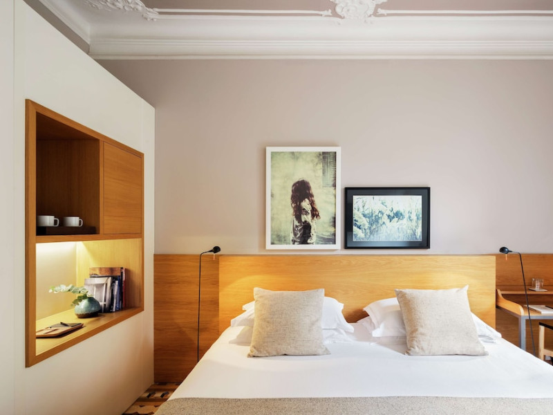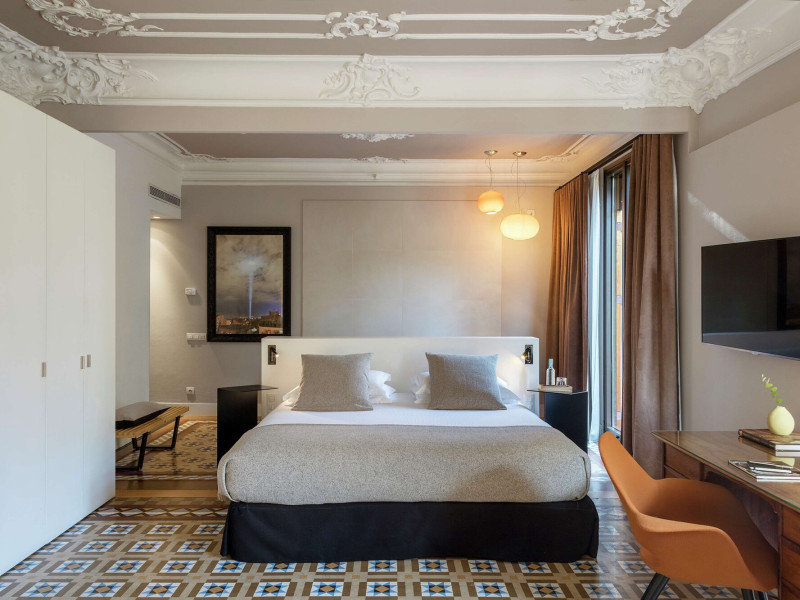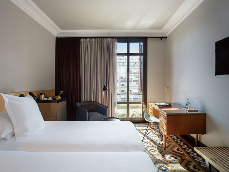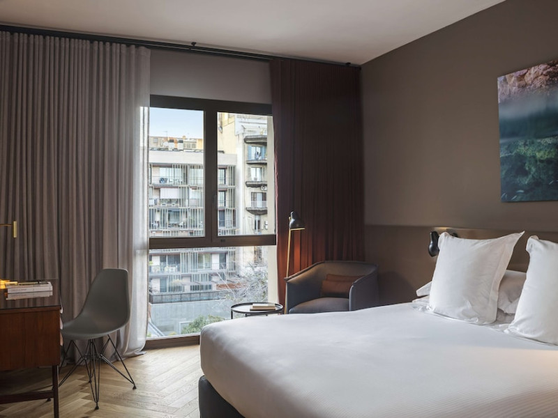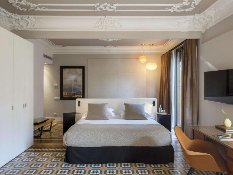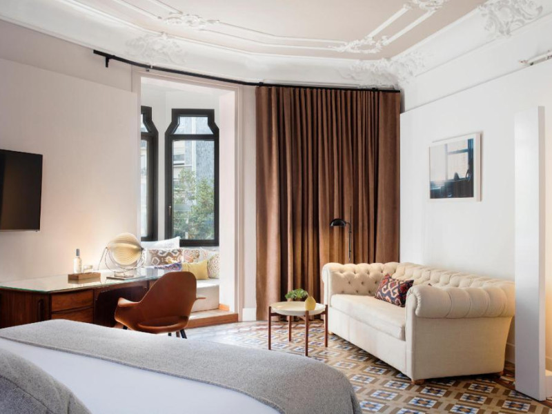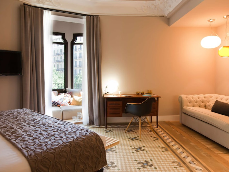 Alexandra Barcelona Hotel, Curio Collection by Hilton, is a designer boutique hotel blending fascinating history, modernist details, and avant-garde design. Located near Passeig de Gràcia and Rambla de Catalunya, it's within walking distance of Casa Batlló and La Pedrera. The renovated 19th-century building features local photography, designer furniture, mosaic flooring, and natural oak. The hotel offers air-conditioned rooms with parquet flooring or modernist tiles, plush bedding, complimentary WiFi, LCD TVs with satellite programming, MP3 docking stations, refrigerators, laptop-compatible safes, and private bathrooms with complimentary toiletries. Suites offer king-size beds and HDTVs, with some including a living room, indoor/outdoor bathtub, and terrace. Guests can enjoy an outdoor pool, sauna, and fitness center, as well as spa services including massages. Dining options include a restaurant, coffee shop/cafe, poolside bar, and two bars/lounges. The hotel provides 24-hour room service, a 24-hour business center, complimentary newspapers, concierge services, and wedding services. Meeting rooms are available. The Alexandra Barcelona Hotel Curio Collection By Hilton is a Boutique, Business, City hotel, Honeymoon, Modern hotel. The nightlife/restaurants are located in the hotel.