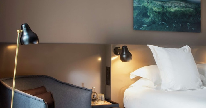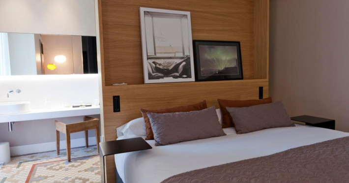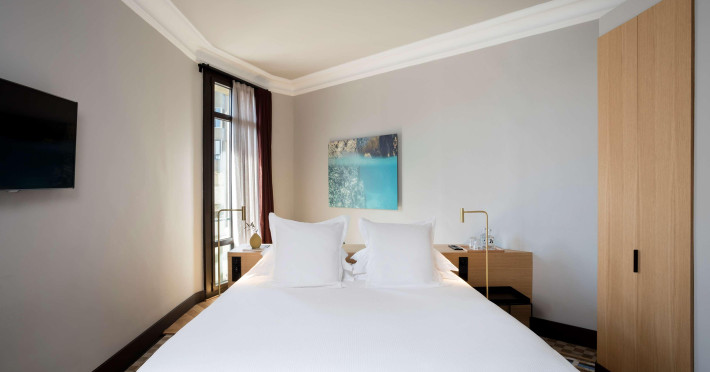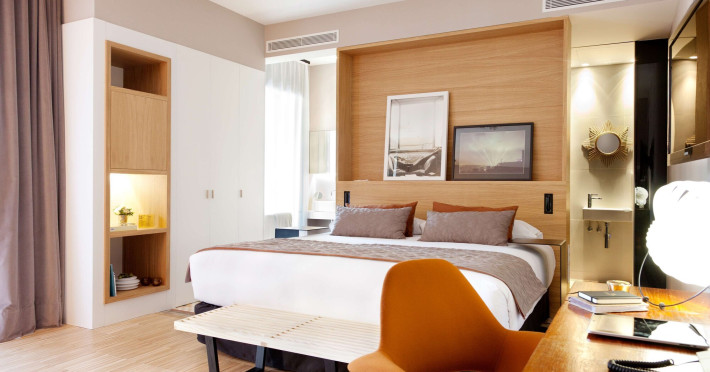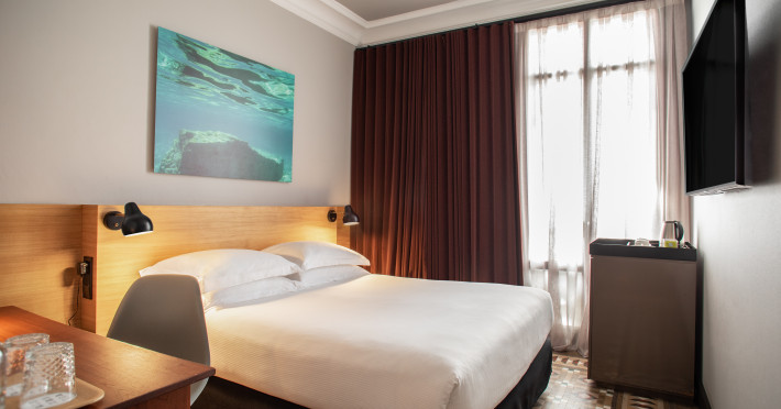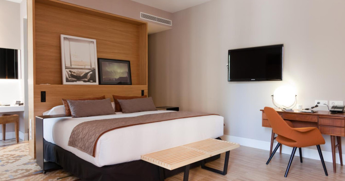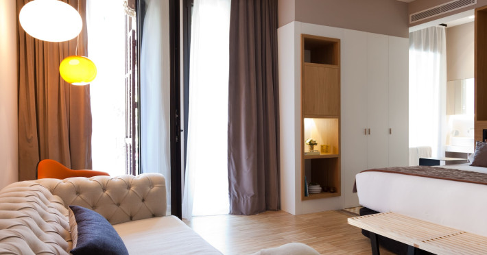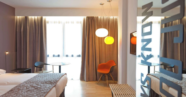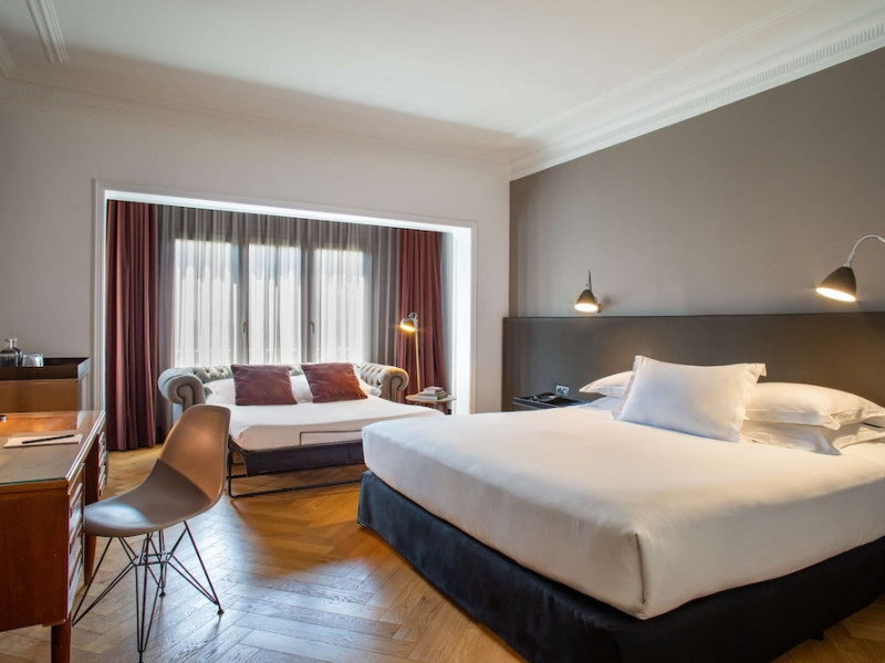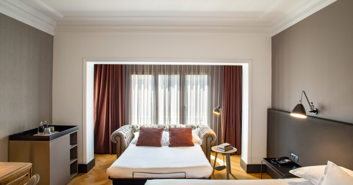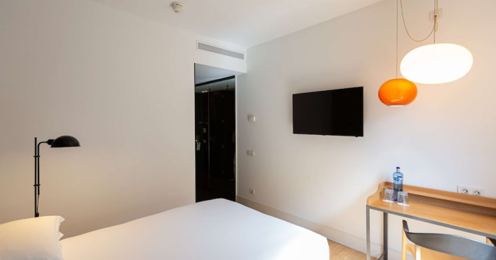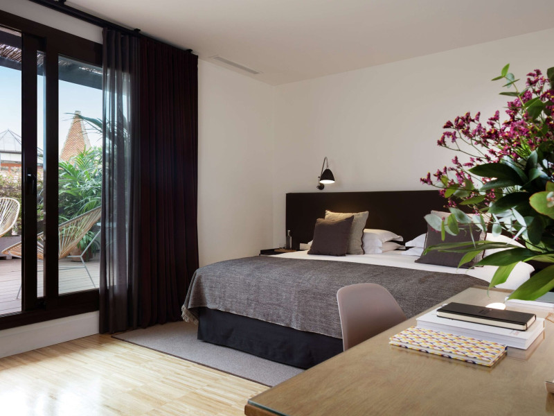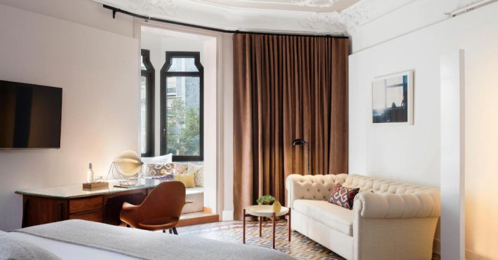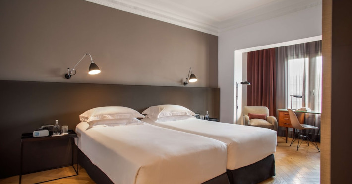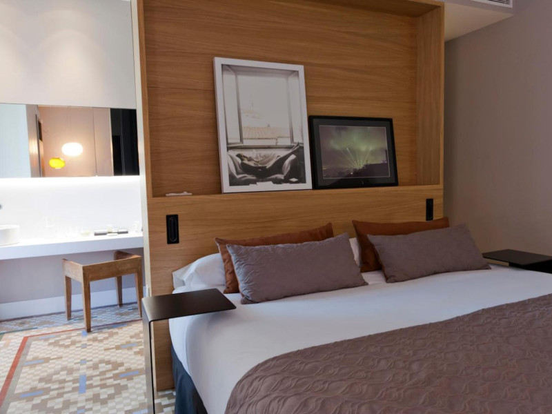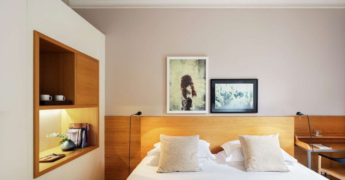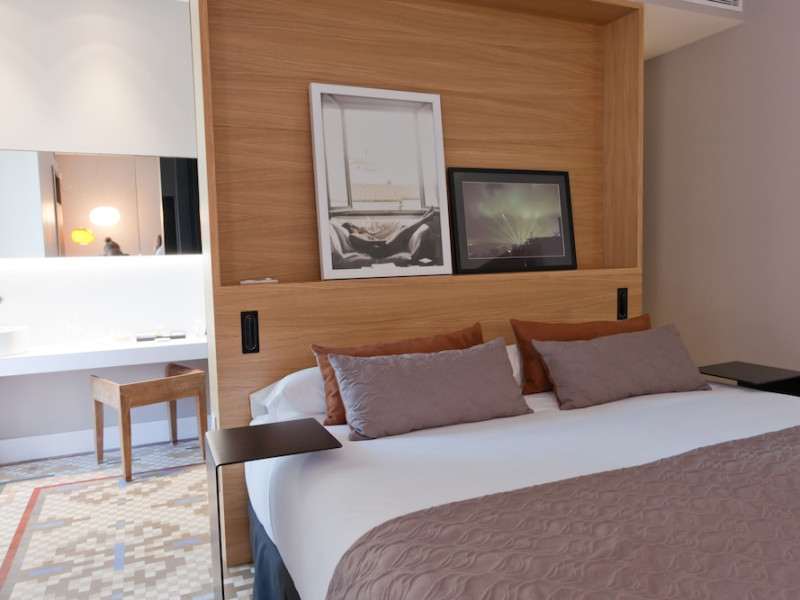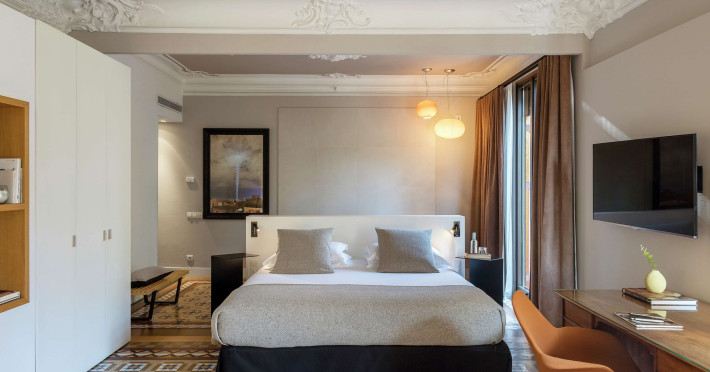 Alexandra Barcelona Hotel, Curio Collection by Hilton, is a designer boutique hotel blending fascinating history, modernist details, and avant-garde design. Located near Passeig de Gràcia and Rambla de Catalunya, it's within walking distance of Casa Batlló and La Pedrera. The renovated 19th-century building features local photography, designer furniture, mosaic flooring, and natural oak. The hotel offers air-conditioned rooms with parquet flooring or modernist tiles, plush bedding, complimentary WiFi, LCD TVs with satellite programming, MP3 docking stations, refrigerators, laptop-compatible safes, and private bathrooms with complimentary toiletries. Suites offer king-size beds and HDTVs, with some including a living room, indoor/outdoor bathtub, and terrace. Guests can enjoy an outdoor pool, sauna, and fitness center, as well as spa services including massages. Dining options include a restaurant, coffee shop/cafe, poolside bar, and two bars/lounges. The hotel provides 24-hour room service, a 24-hour business center, complimentary newspapers, concierge services, and wedding services. Meeting rooms are available. The Alexandra Barcelona Hotel Curio Collection By Hilton is a Boutique, Business, City hotel, Honeymoon, Modern hotel. The nightlife/restaurants are located in the hotel.