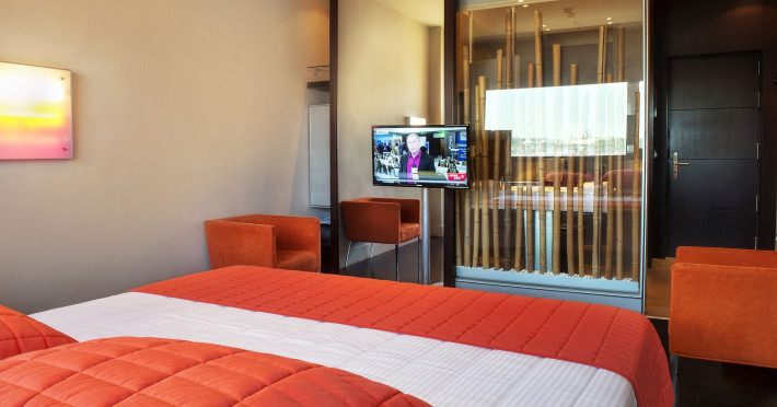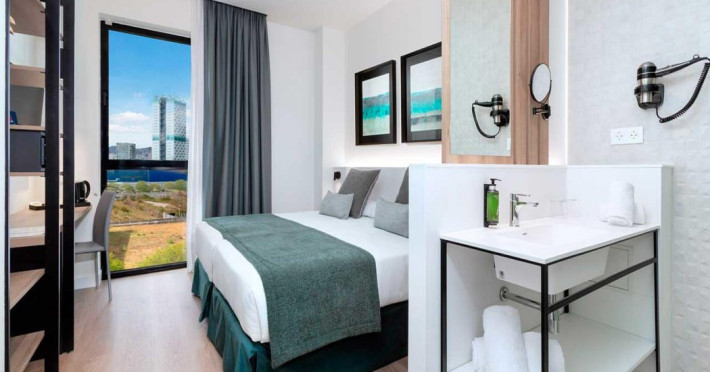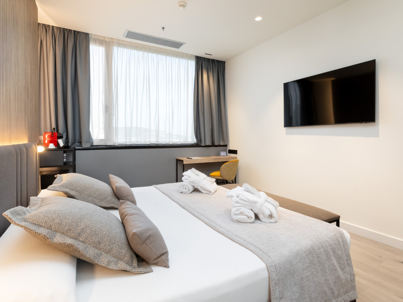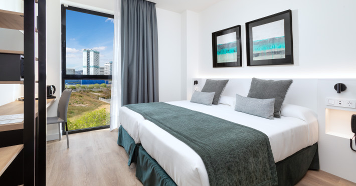 Located in Barcelona's Hospitalet business district, the Hotel Fira Congress offers 160 air-conditioned, non-smoking rooms with city views, complimentary Wi-Fi, minibars, safes, and private bathrooms with rainfall showerheads and hair dryers. The hotel provides convenient access to the Fira Gran Via convention center and is a short walk from the L9 metro line, offering direct access to the airport terminals and Camp Nou Stadium. Guests can enjoy a fitness center, a seasonal outdoor pool (open from June 15th to September 15th), the Narandam Restaurant and Bar, a café, and room service during limited hours. Additional amenities include a business center, concierge services, dry cleaning/laundry services, a 24-hour front desk, meeting rooms, and on-site parking (charges apply). Breakfast is available for a fee. Designated smoking areas are available. The Alexandre Fira Congress is a Tourist hotel. The nightlife/restaurants are right next to the hotel.
