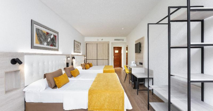 The hotel was modernised in 2023. Guests have a choice of 308 non-smoking rooms, including 271 double rooms, located in two 3-storey buildings with lifts. The multilingual staff at the reception desk in the lobby are ready to assist you with check-in and check-out. Services such as a baggage storage service, safe, currency exchange service, cash machine and drinks machine ensure a comfortable stay. Wireless internet access (no extra charge) allows guests to stay connected while on holiday. The tour desk offers assistance with booking excursions. The hotel offers various facilities for guests with disabilities. Wheelchair-accessible facilities are available. A number of shops, including a souvenir shop, are great for shopping or just browsing. The grounds of the hotel feature a playground and a lovely garden. Additional amenities include a TV room and a playroom. Guests arriving by car can park their vehicles in the car park for a fee (subject to availability). Other services include a car hire service, medical assistance, a laundry service and a hairdresser. The business centre is on hand for guests business requirements and provides a fax machine.