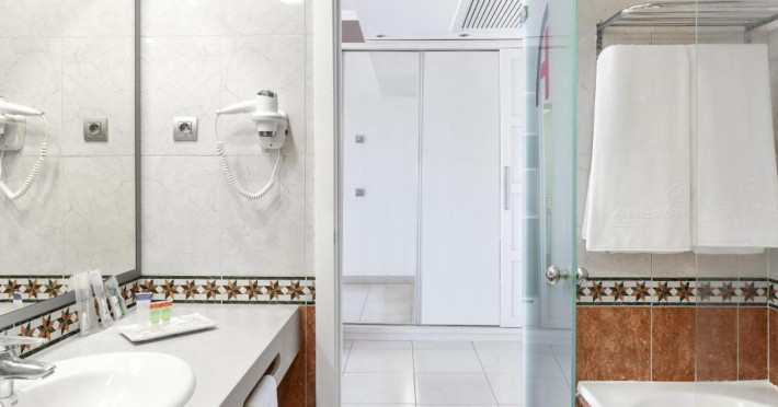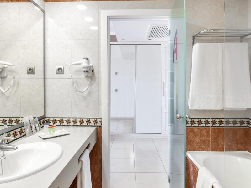 Alexandre Hotel La Siesta is a 4-star hotel situated in the tourist centre of Playa de las Américas, 300 metres from the beach. It offers air-conditioned rooms with a furnished balcony or terrace, satellite TV, and a lounge area. Guests can enjoy access to complimentary wireless internet. The hotel features separate adult and children’s pools surrounded by tropical gardens, a health club, and a spa offering massages, body treatments, and facials. Dining options include a buffet restaurant serving breakfast, lunch, and dinner, a coffee shop/cafe, a poolside bar, and a bar/lounge. Room service is also available. Additional amenities include a 24-hour front desk, concierge services, dry cleaning/laundry services, a business center, and an arcade/game room. Airport transportation and car hire services are available for a surcharge. Self-parking is available onsite for a surcharge. The hotel is located approximately 15 km from Tenerife South Airport. The Alexandre La Siesta is a Tourist hotel. The nightlife/restaurants are located in the hotel.